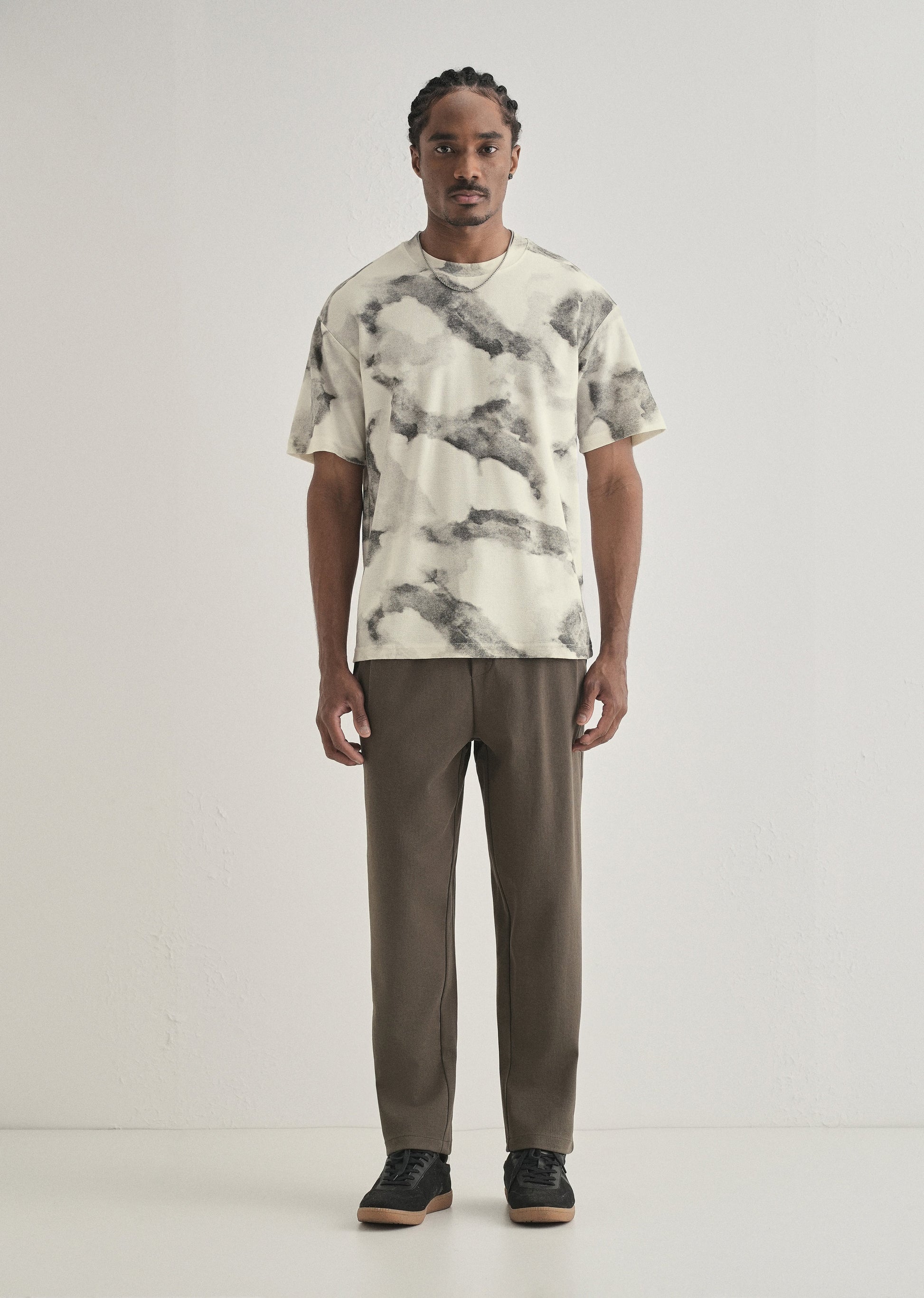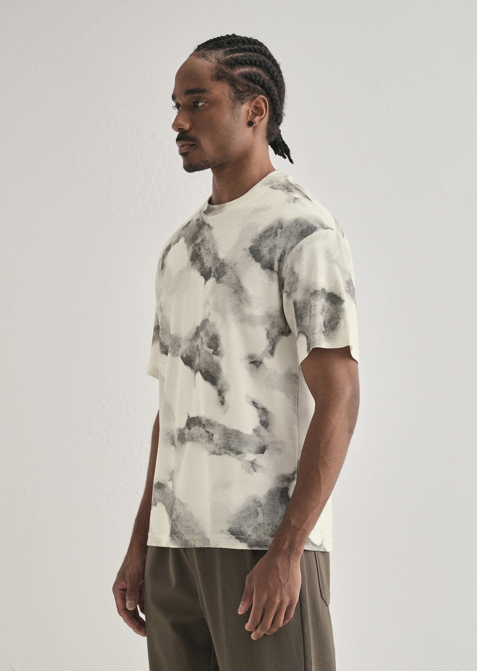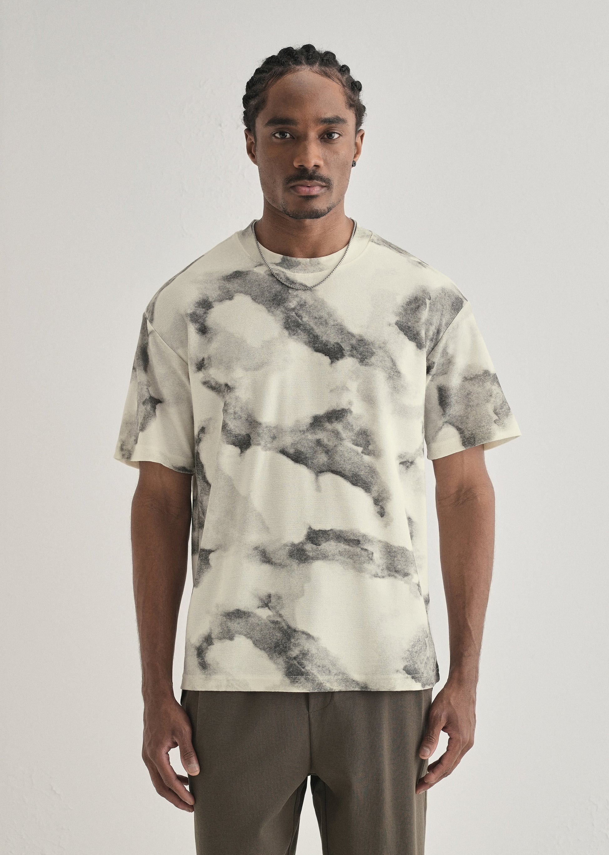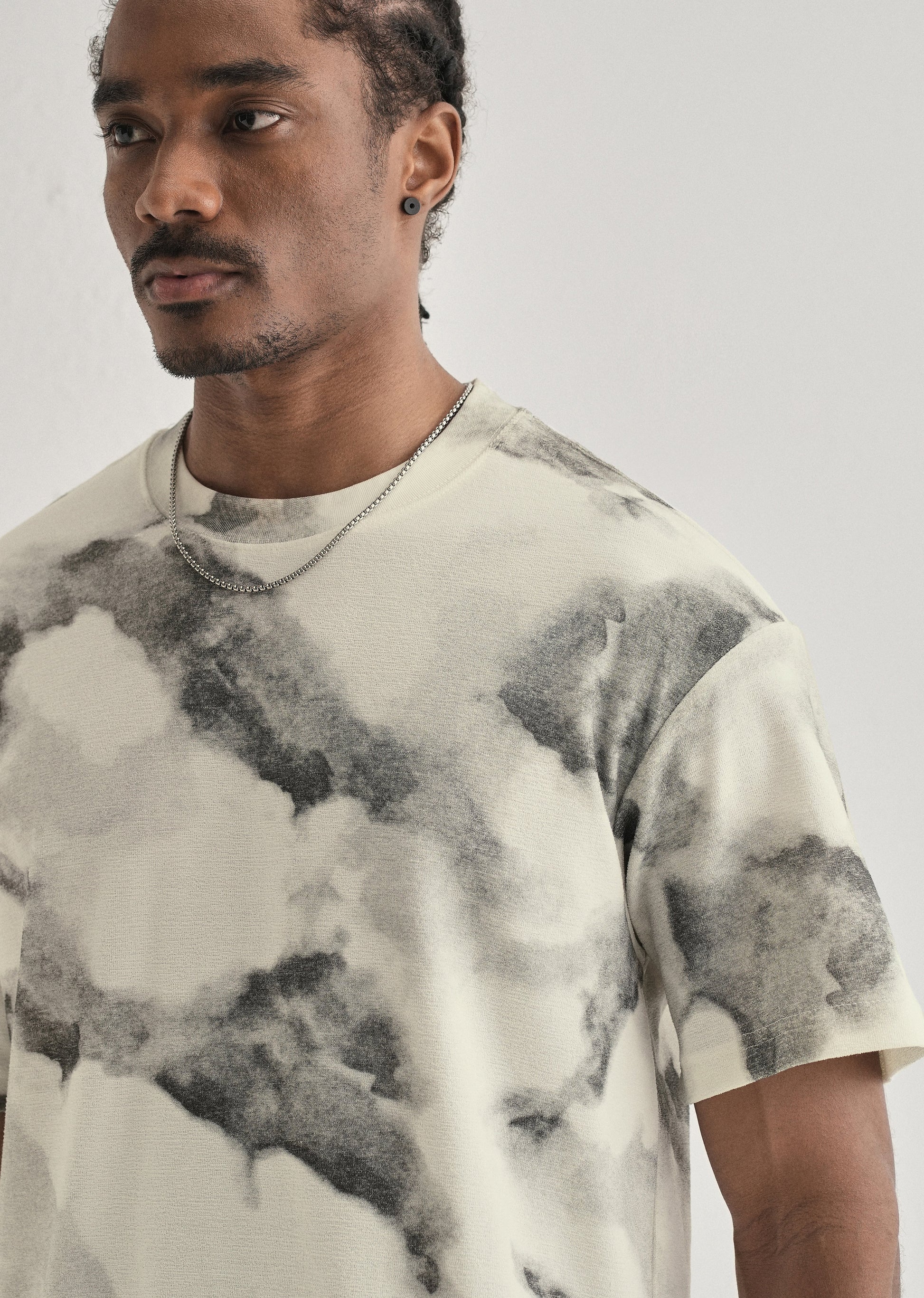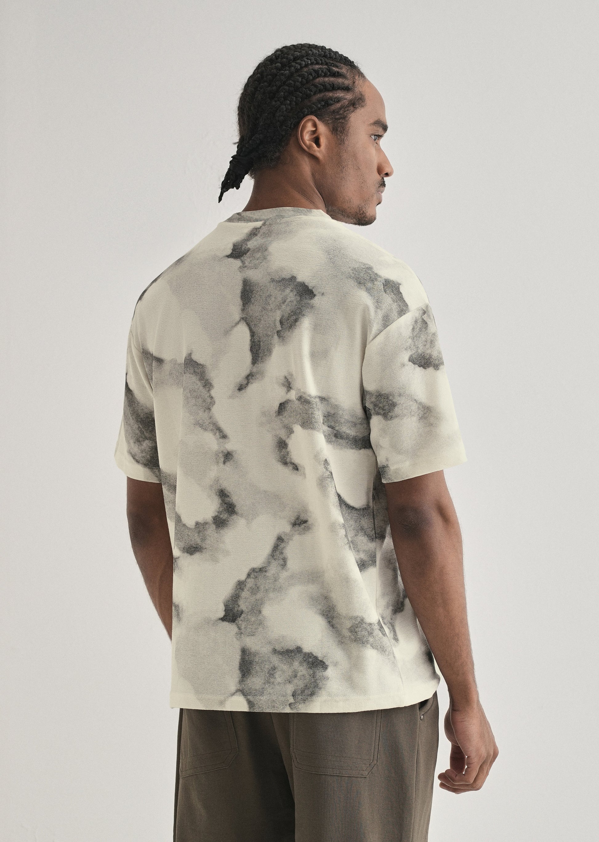 Discover the ultimate in casual comfort with our cloud wash textured oversized T-shirt. Crafted from cotton & polyester fabric, this half-sleeve tee features a slip-on closure and a classic crew neck design. The print & brushstroke design adds a trendy touch, making it a standout piece in any wardrobe, this T-shirt combines style and comfort effortlessly.