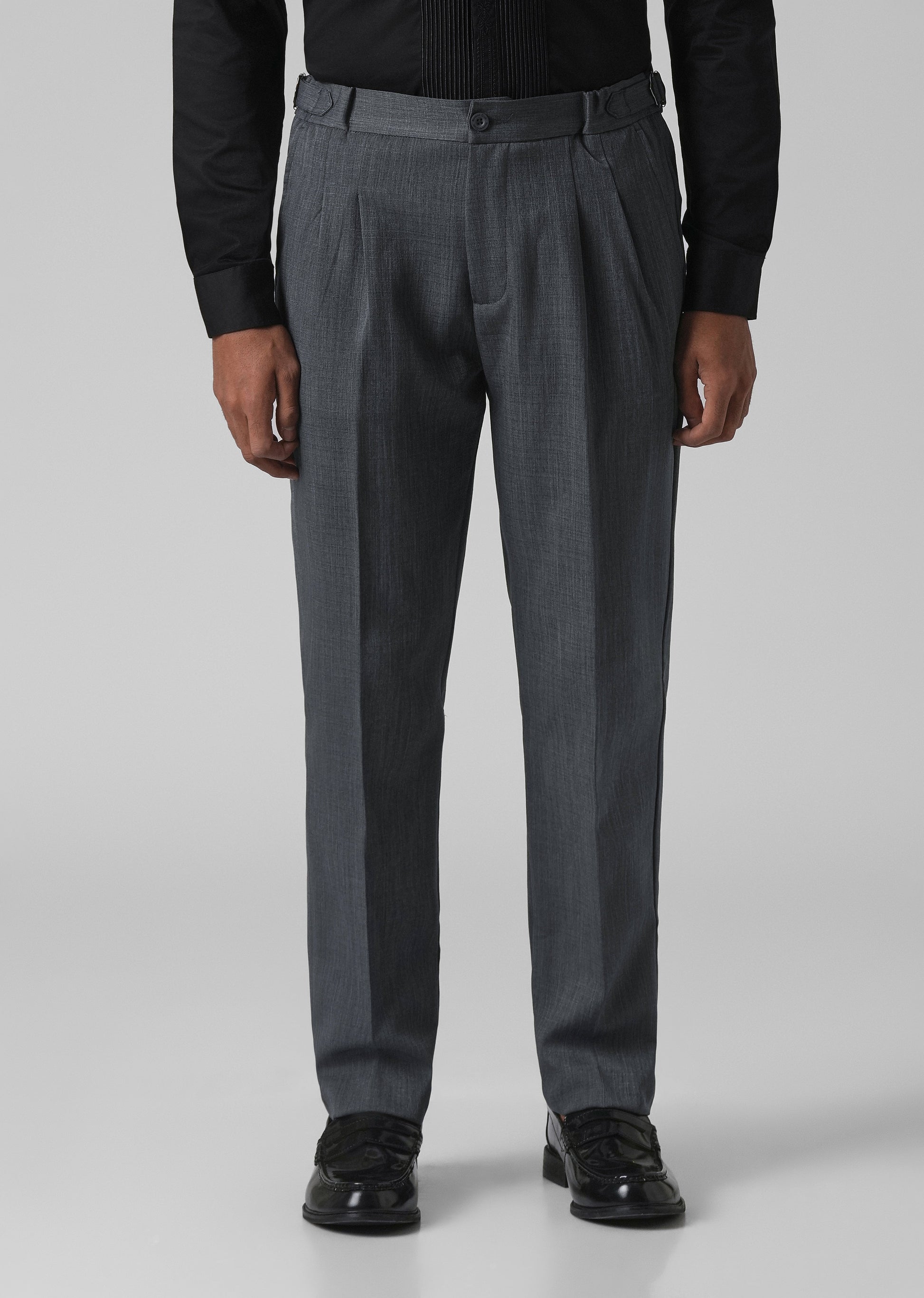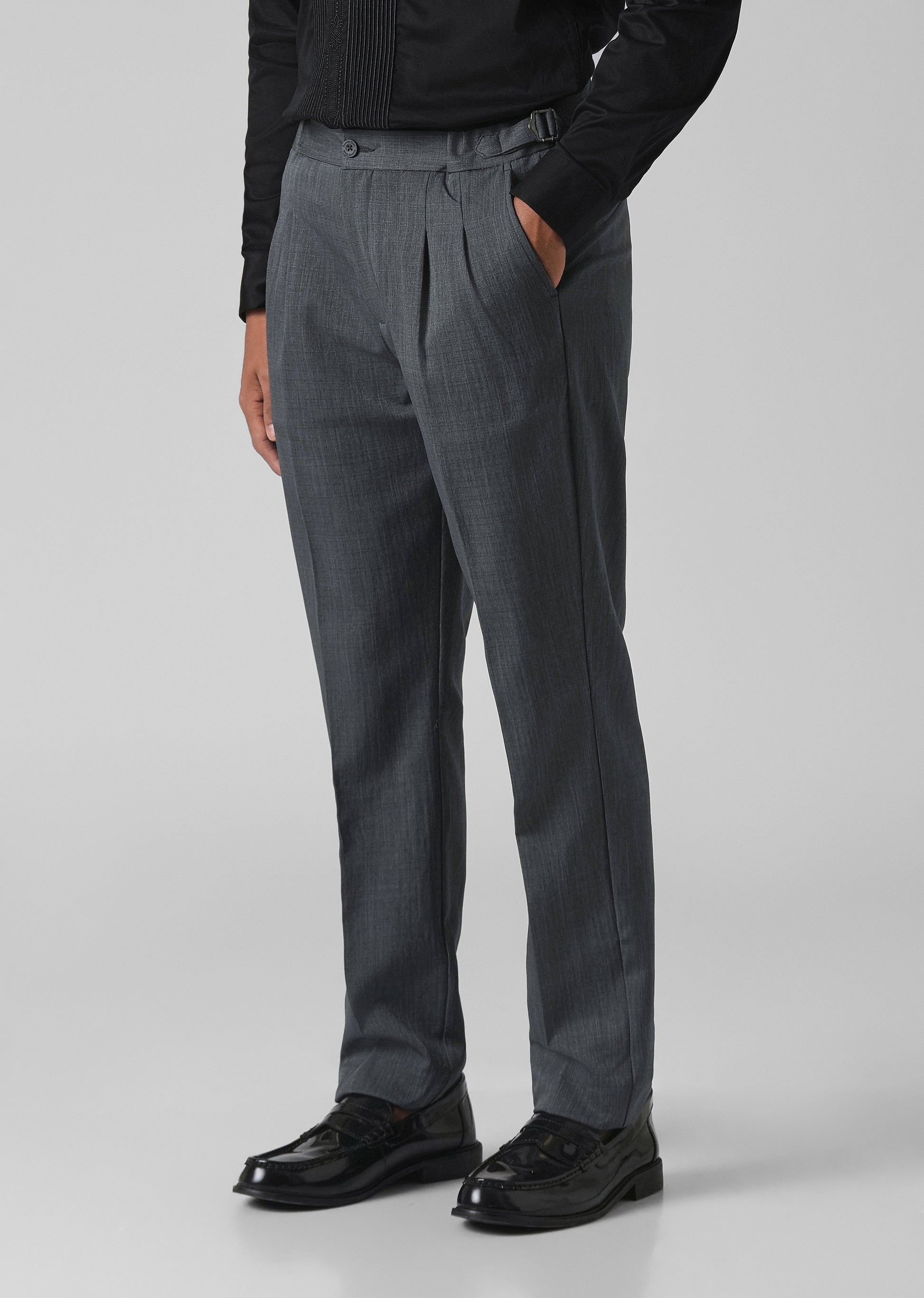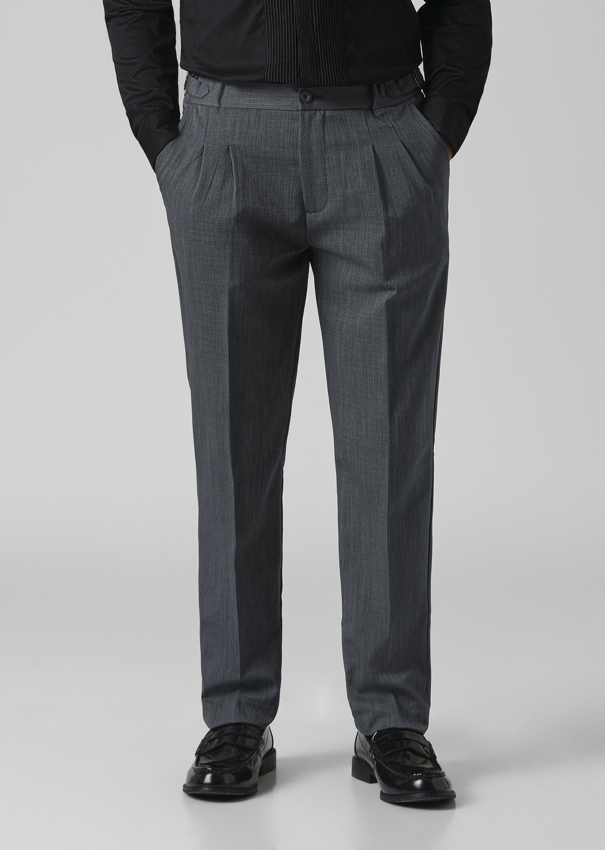 Upgrade your style with this gurkha trouser. Designed with a mid-rise waist and side buckle adjustable, it offers a perfect fit and a sharp look. The double pleats in the front give it a tailored, elegant touch, while the narrow legs keep the silhouette modern and clean. Made from lightweight fabric, it’s comfortable for all-day wear whether you’re heading to work, an event, or a weekend outing.