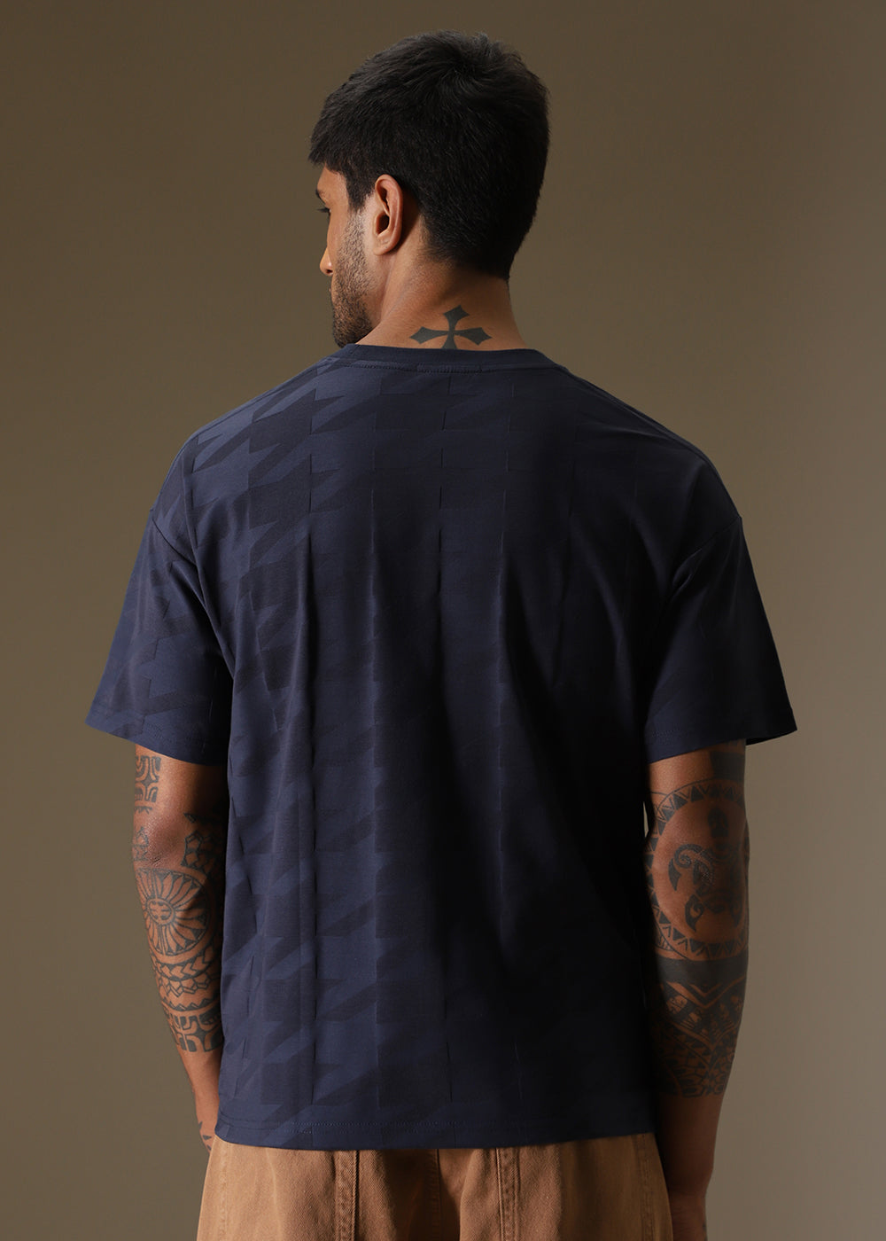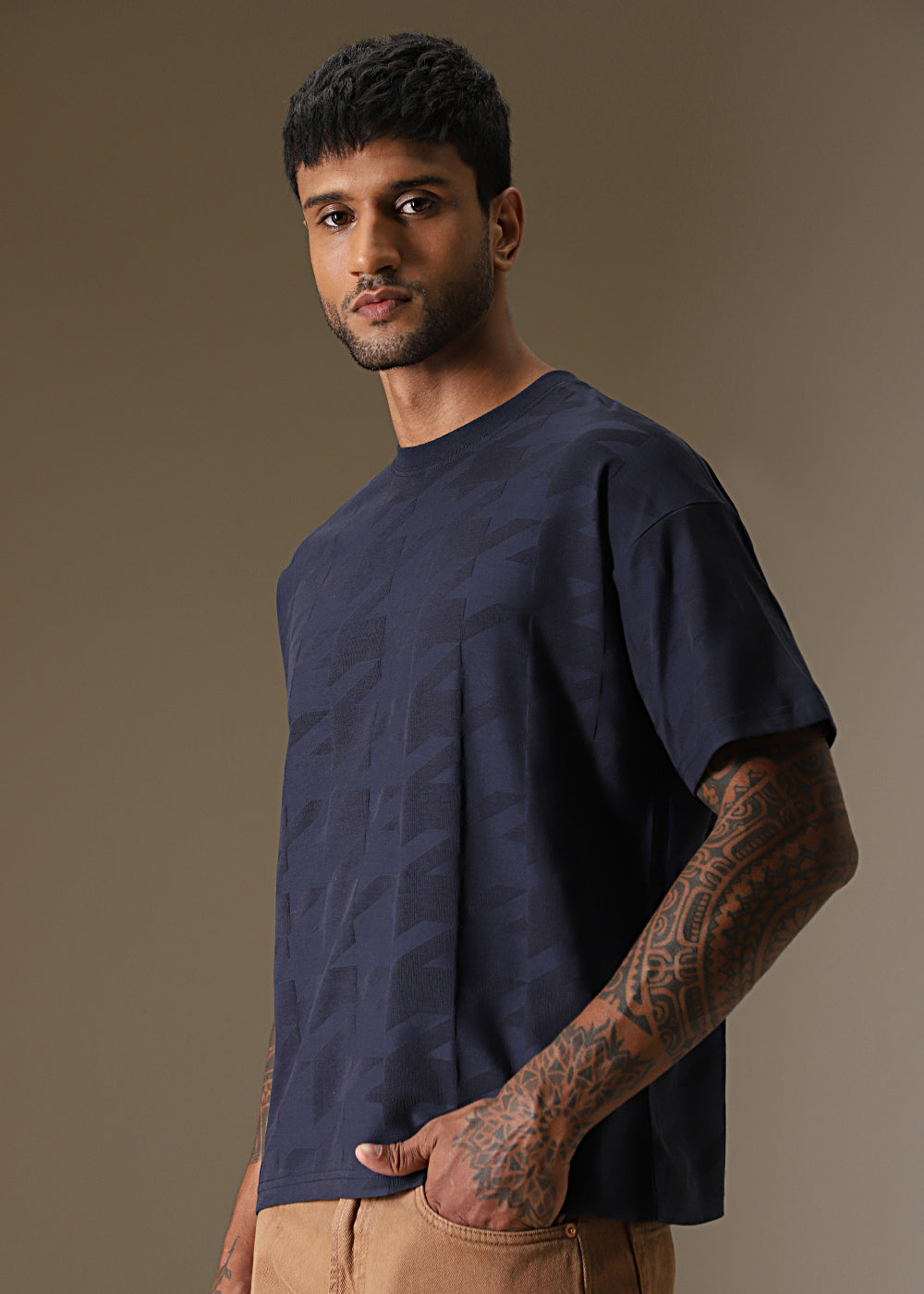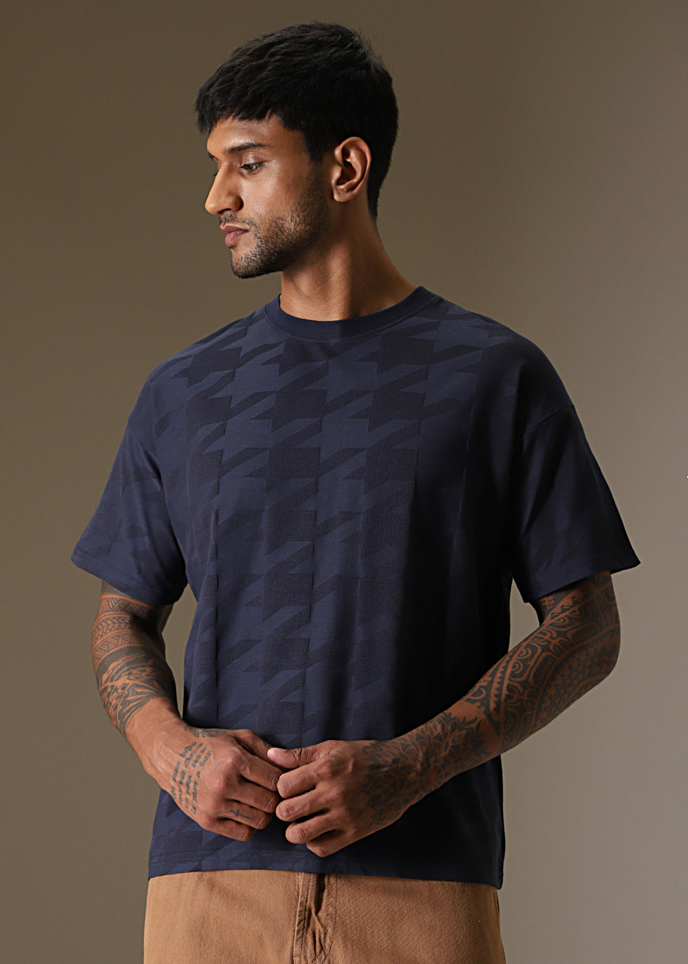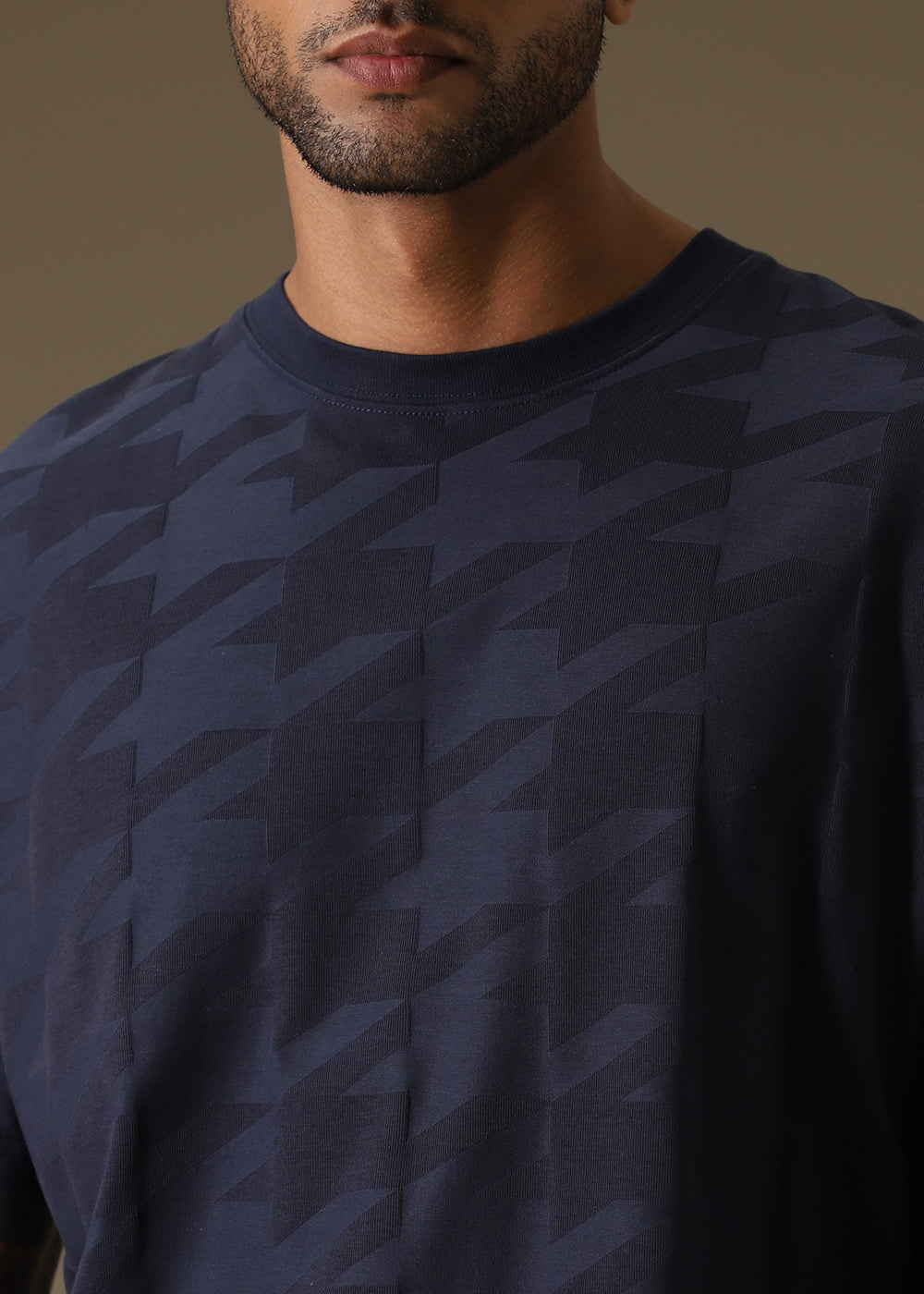 Herringbone Pattern Blue Oversized T-Shirt