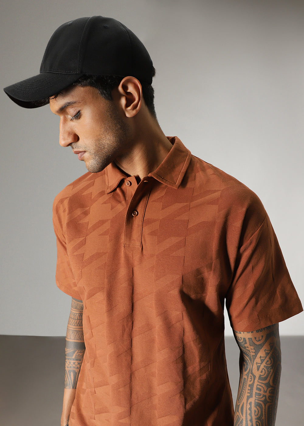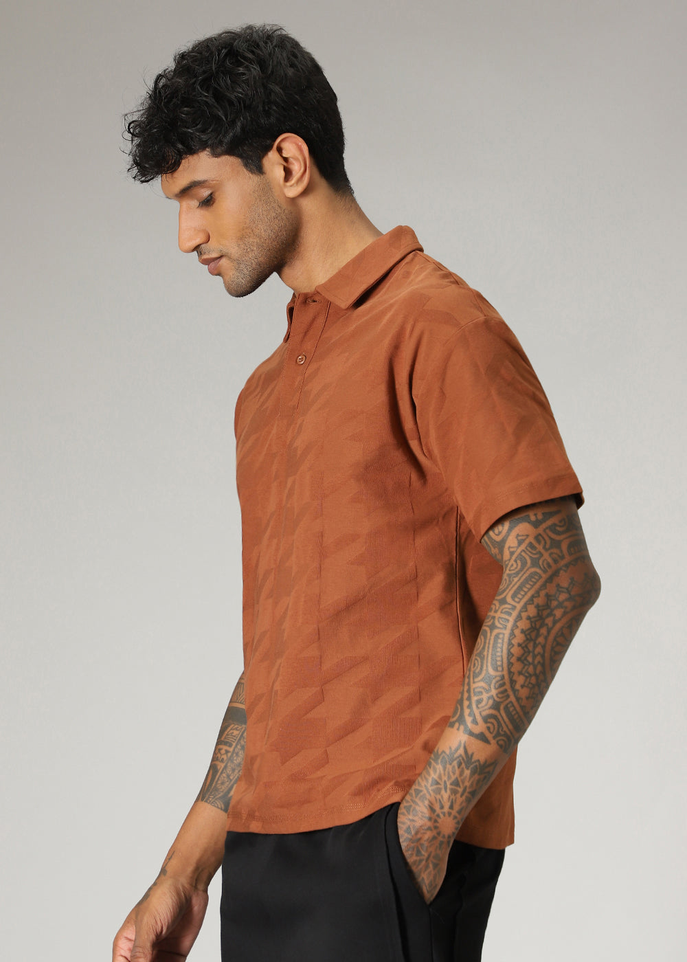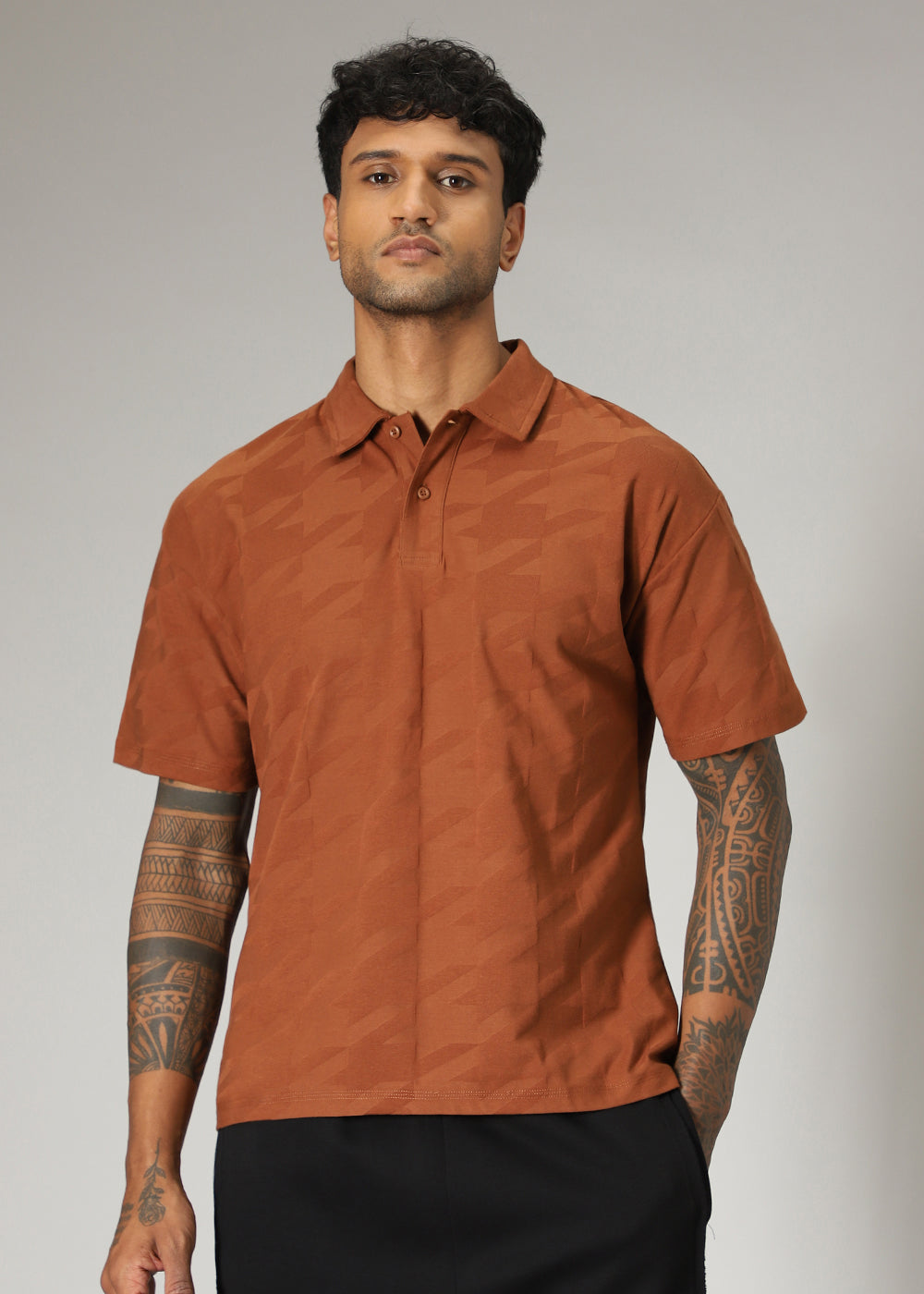 Herringbone Pattern Brown Polo T-shirt
