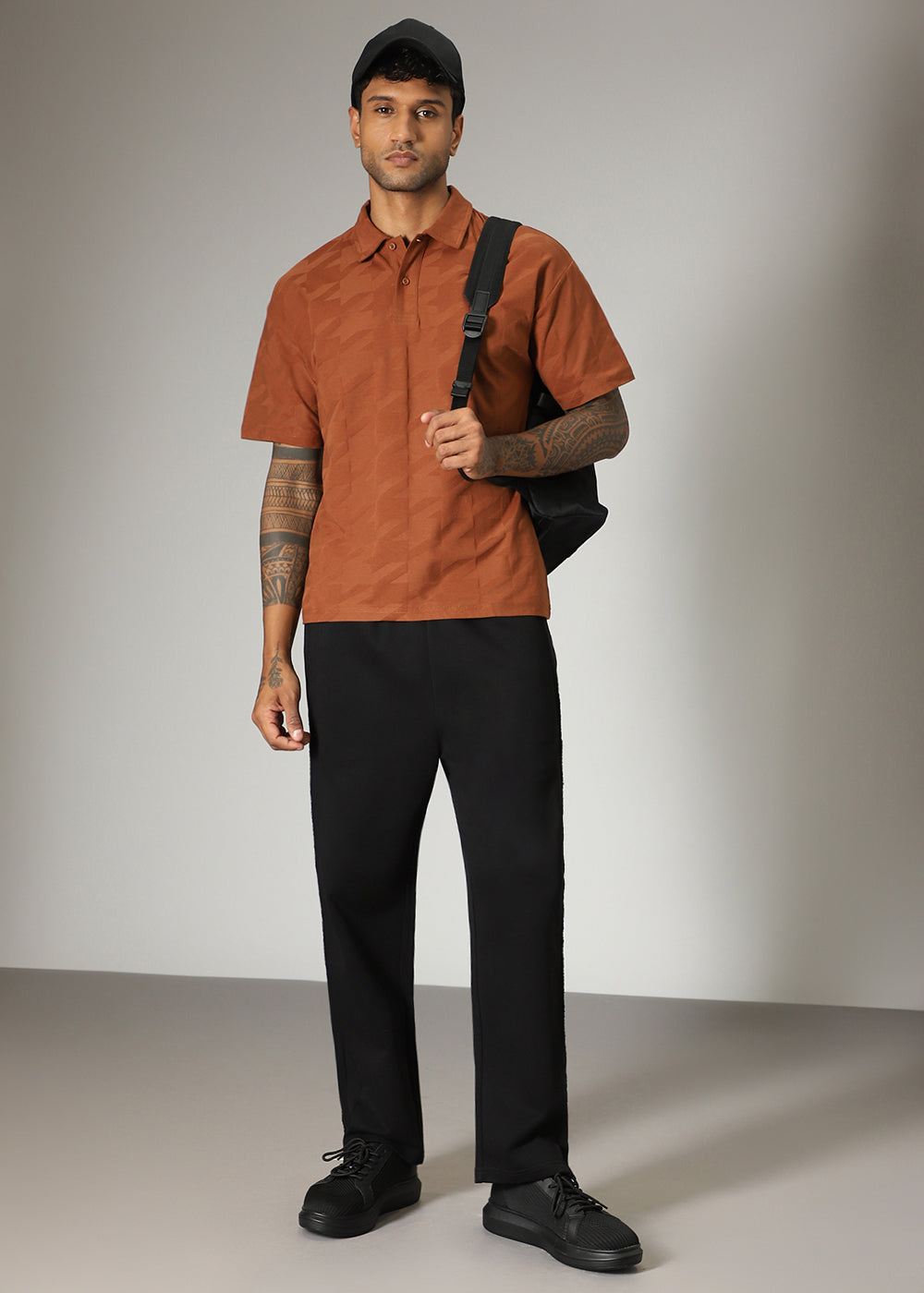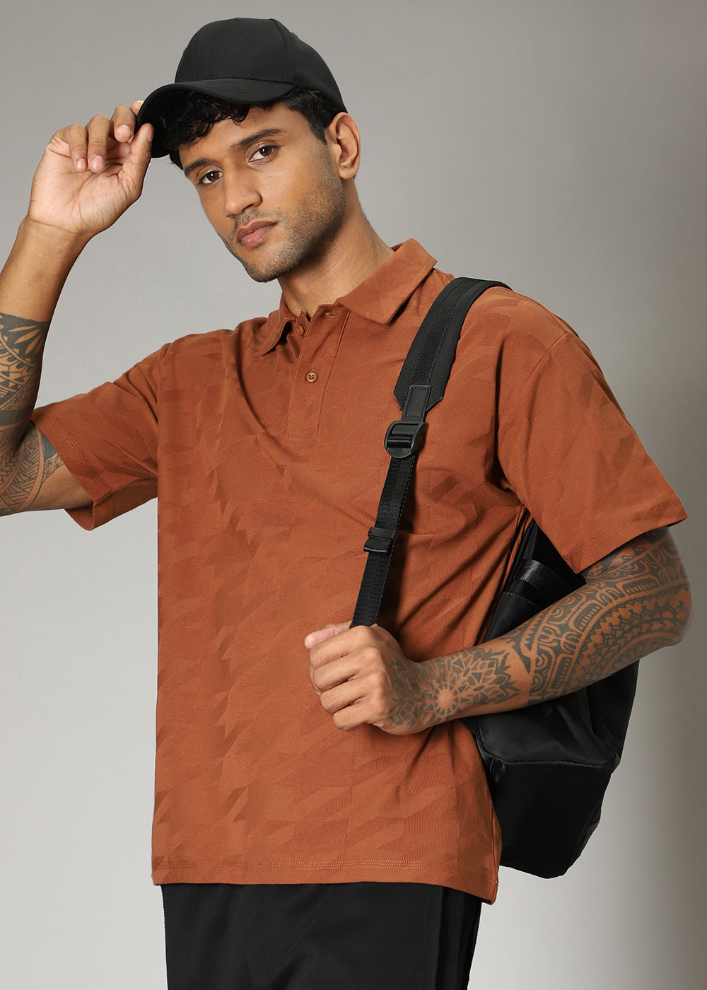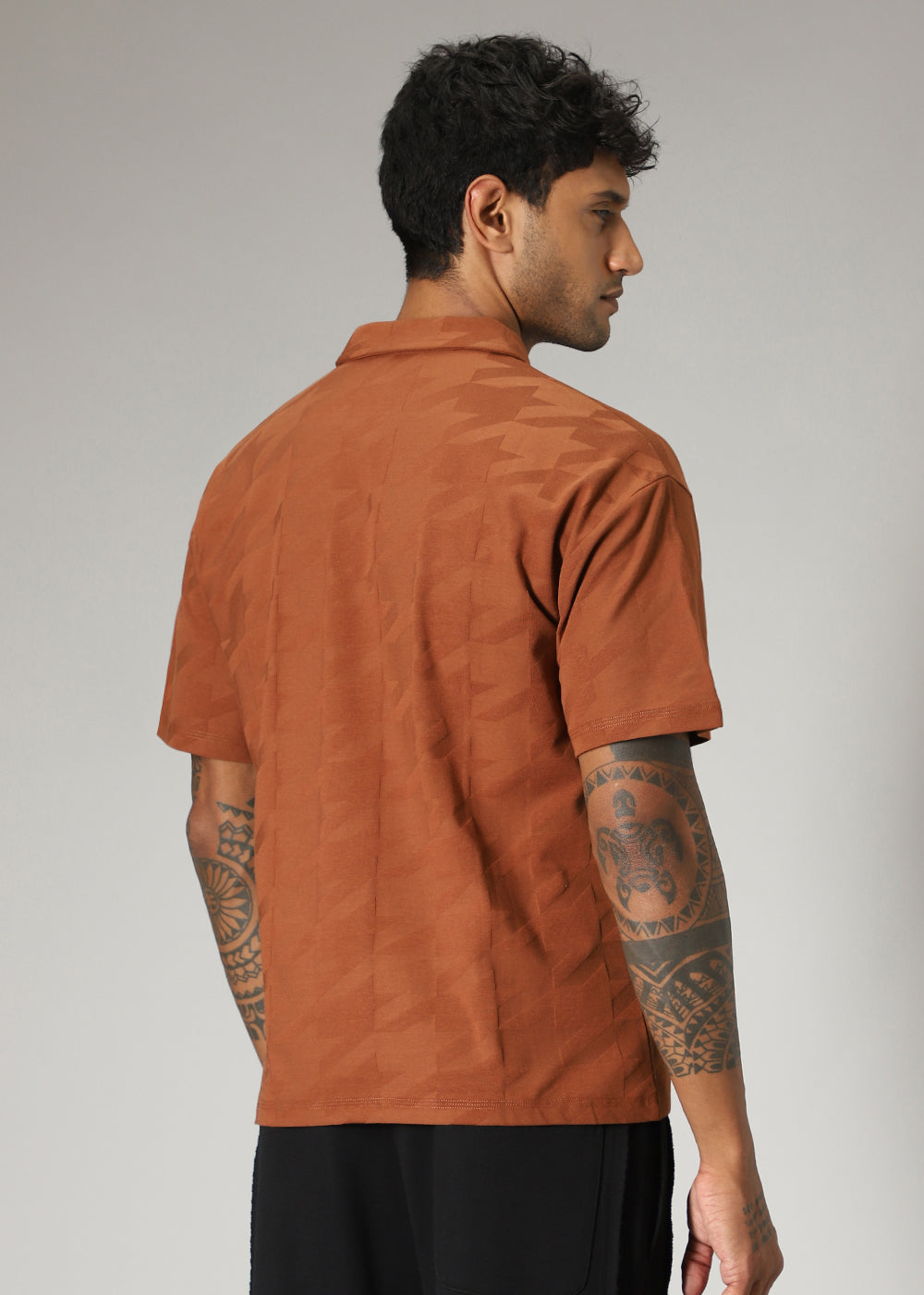 Herringbone Pattern Brown Polo T-shirt