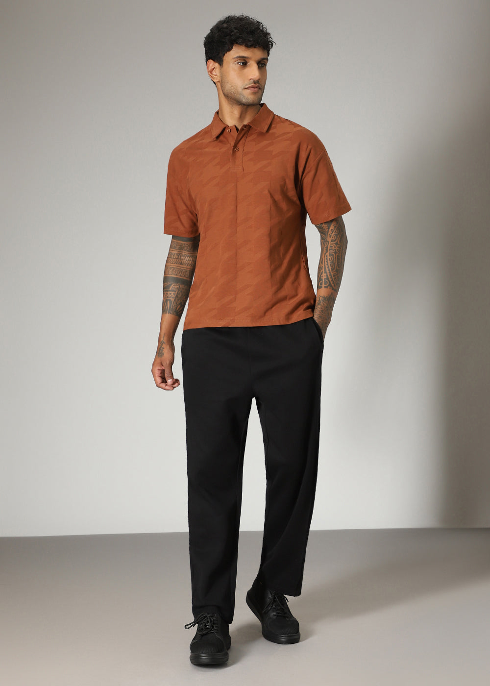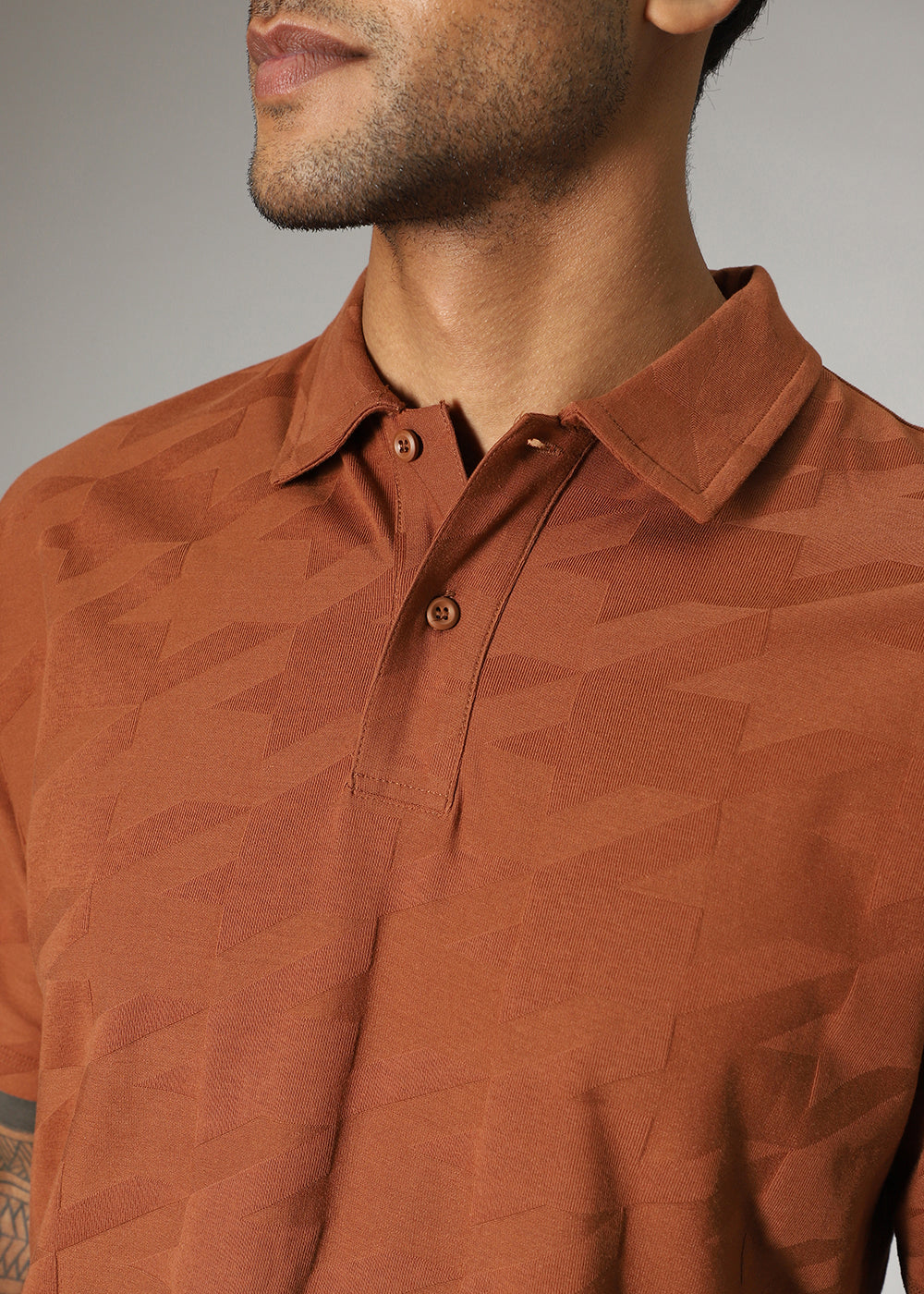 - A solid textured polo in regular collar and short sleeve