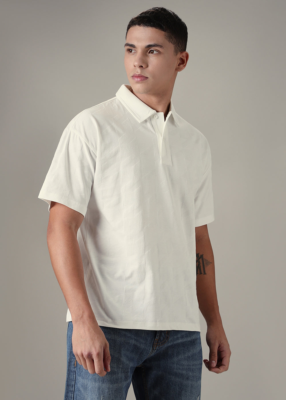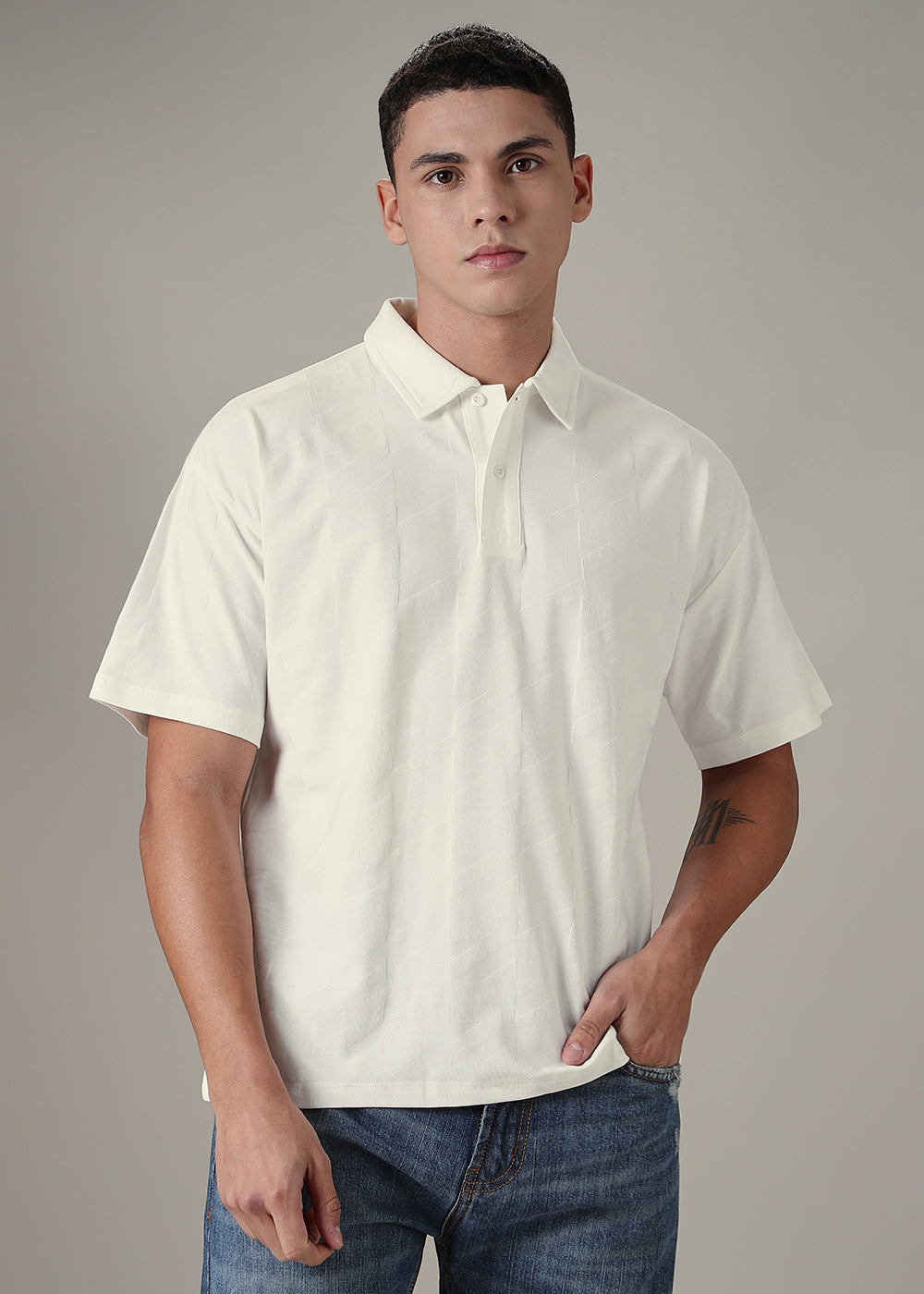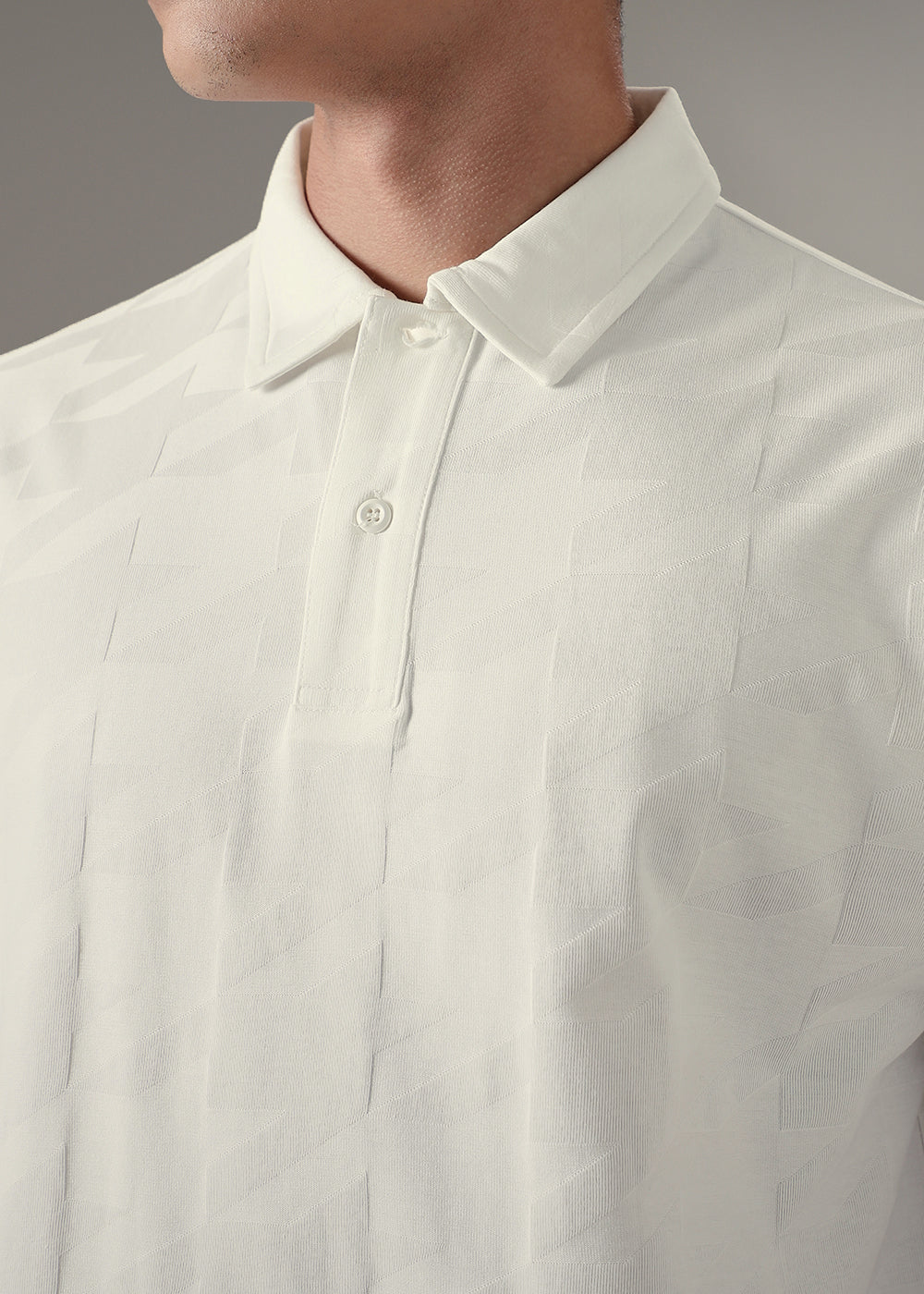 Herringbone Pattern White Polo T-shirt