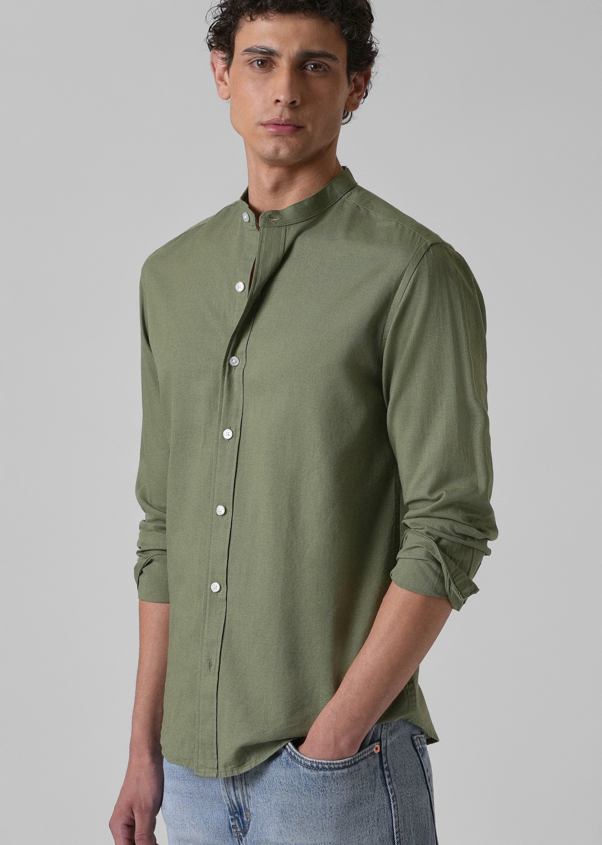 Kelly Green Cotton Linen Shirt