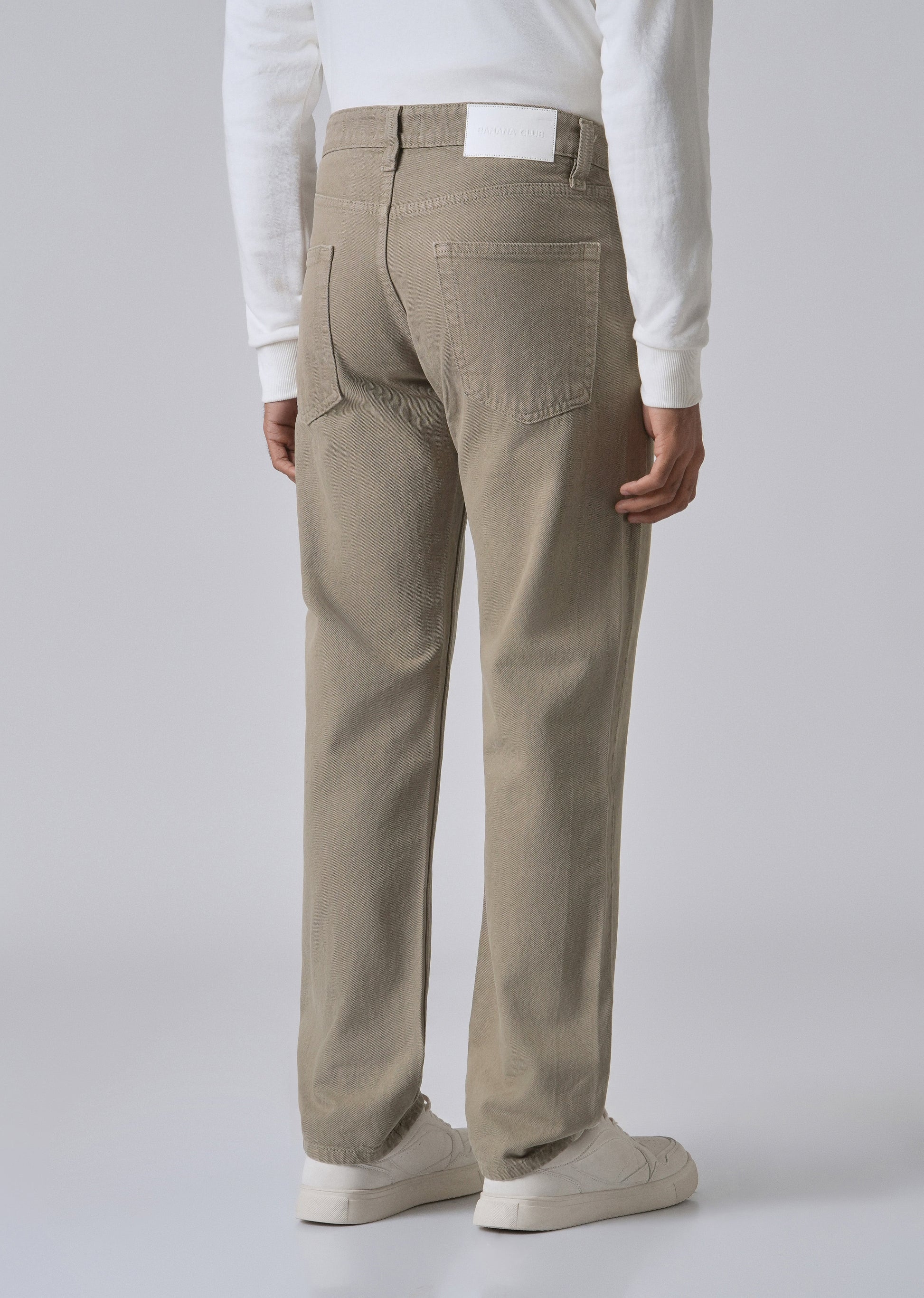 - Regular fit from the waist to the hem.