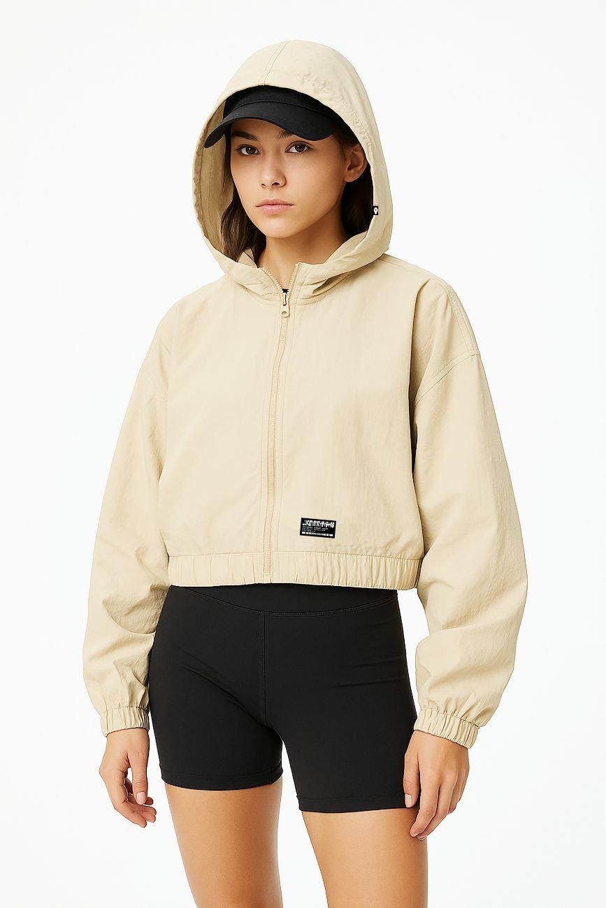 This packable cropped pullover is cut from ultra-light 100% nylon — a breathable, featherweight feel shell that packs performance without the bulk. It’s your anywhere, everywhere essential. A relaxed regular fit and raglan sleeves mean zero restriction when you’re on the go. Throw it on post-workout, zip it up for a coffee run, or layer it over a tank when the weather flips. Elasticated cuffs and hem keep the shape sharp while the front zip lets you style it your way. Wherever you're headed, this layer’s coming with.