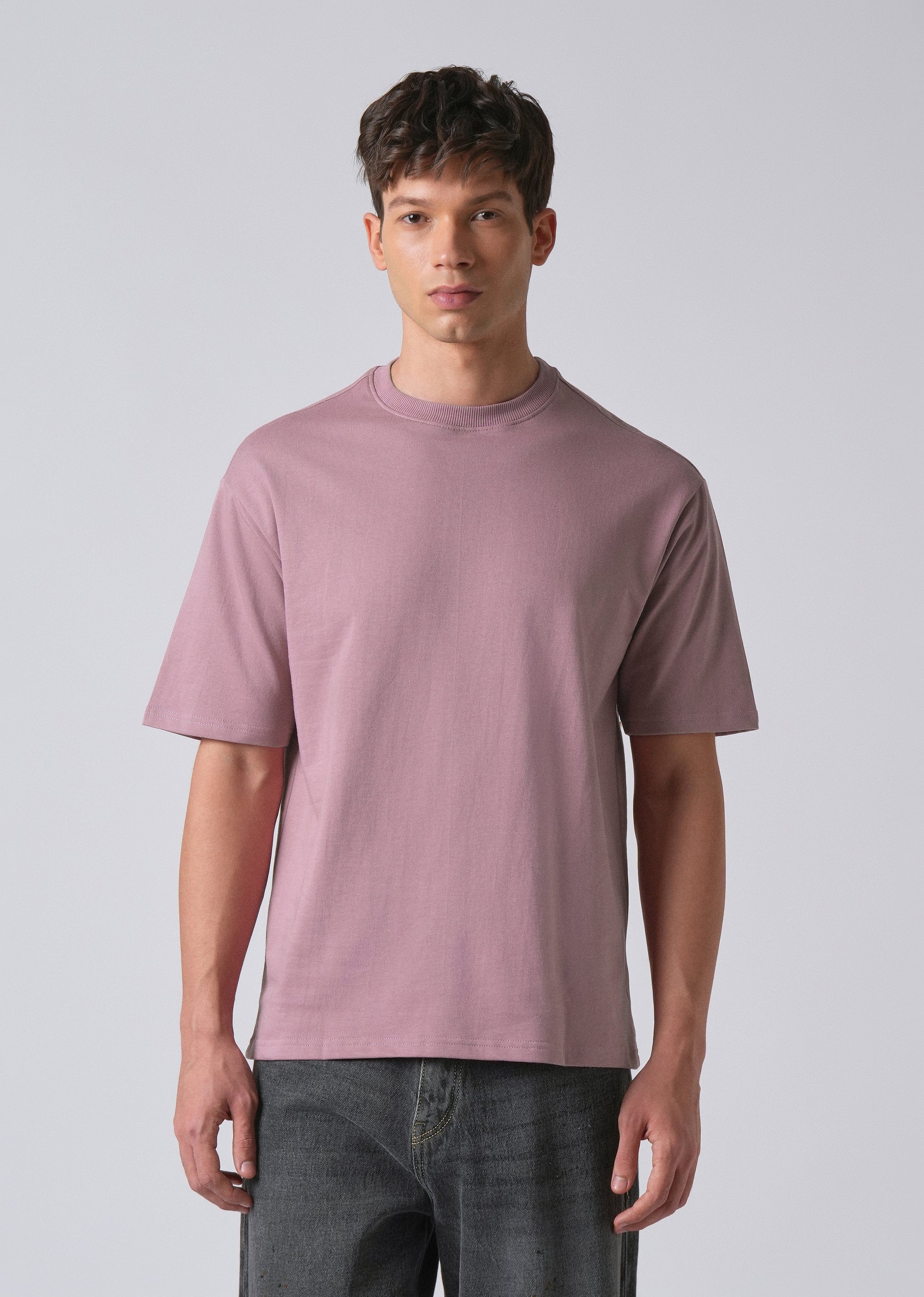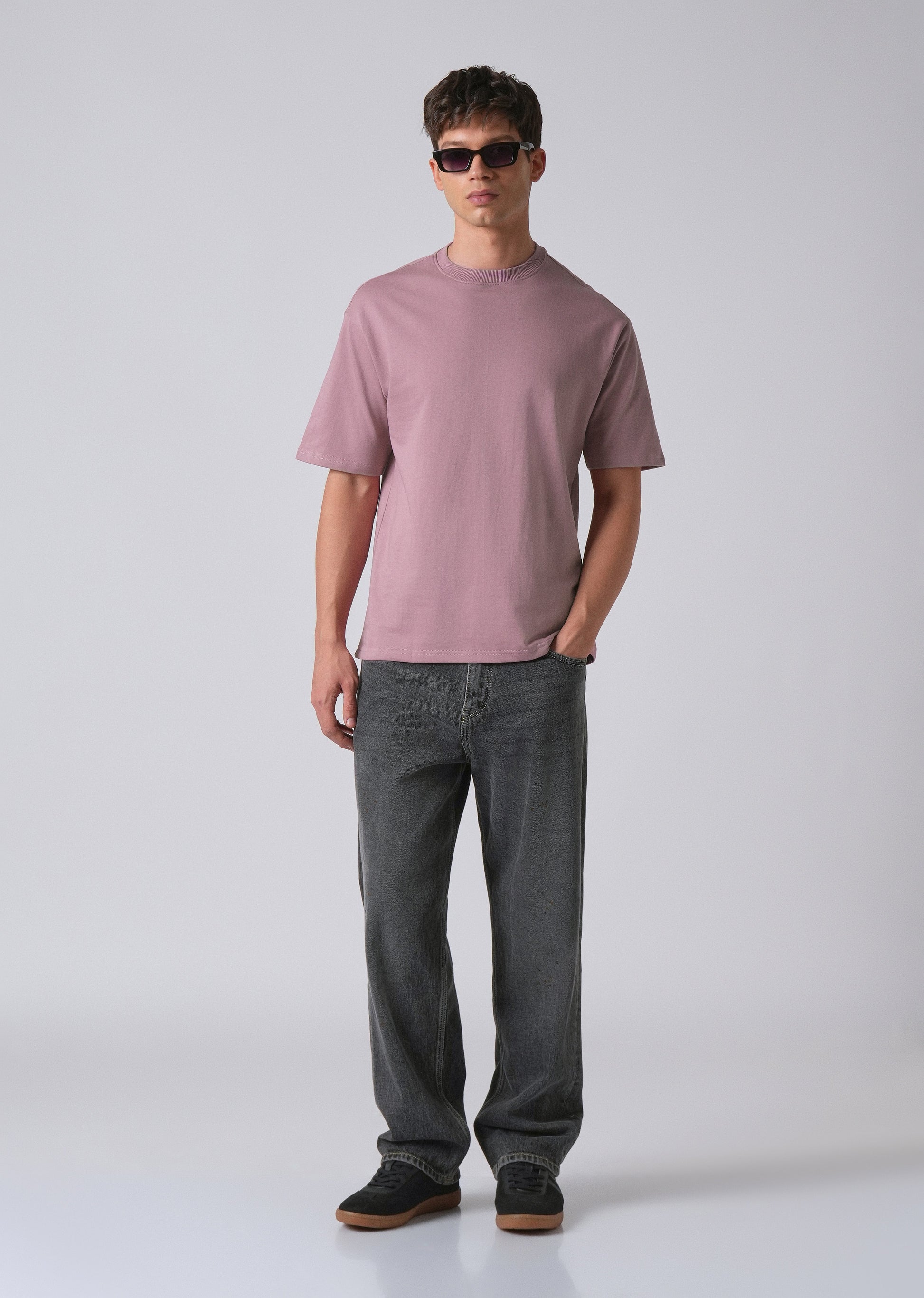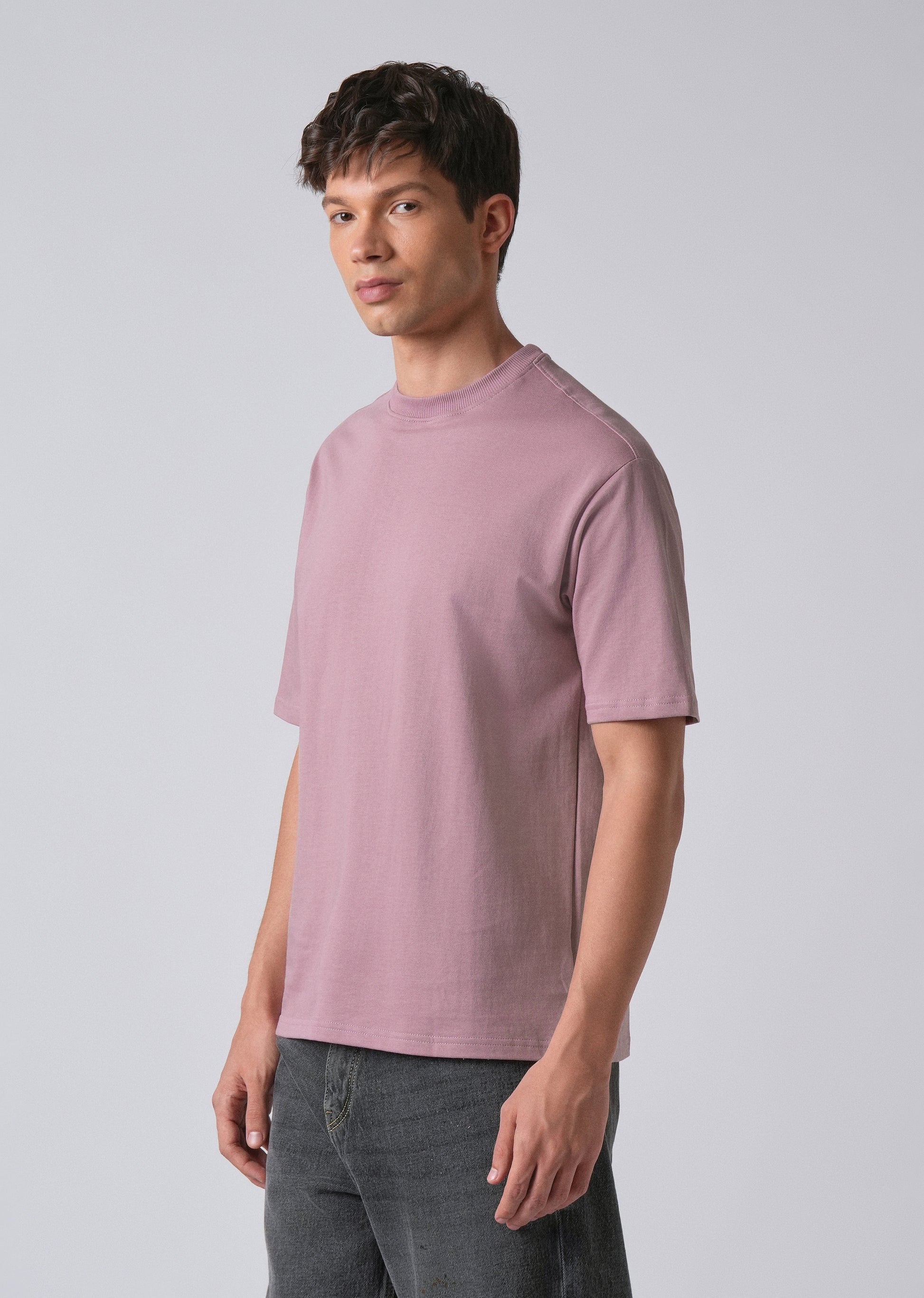 This basic t-shirt features a round crew neckline, drop shoulder sleeves, and a straight hemline, creating a clean and relaxed look. The relaxed fit offers everyday comfort, while the cotton fabric with light stretch ensures breathability and easy movement—making it a versatile piece for casual wear.