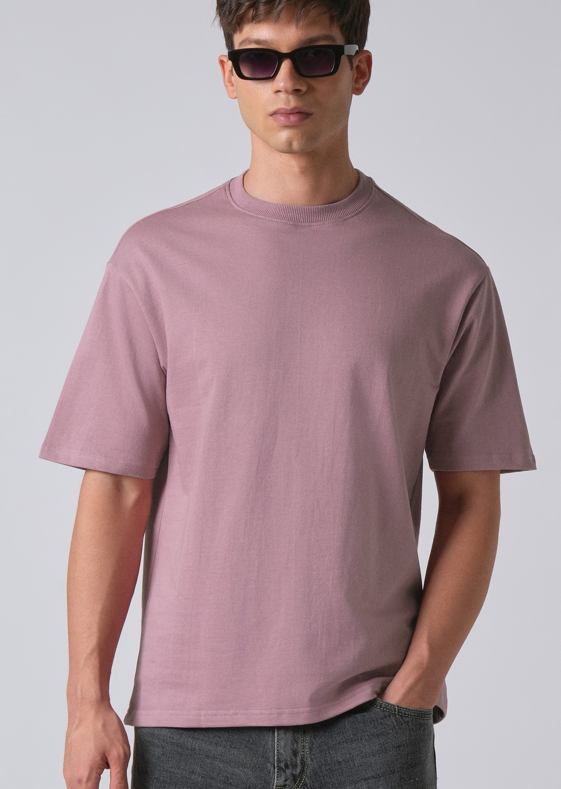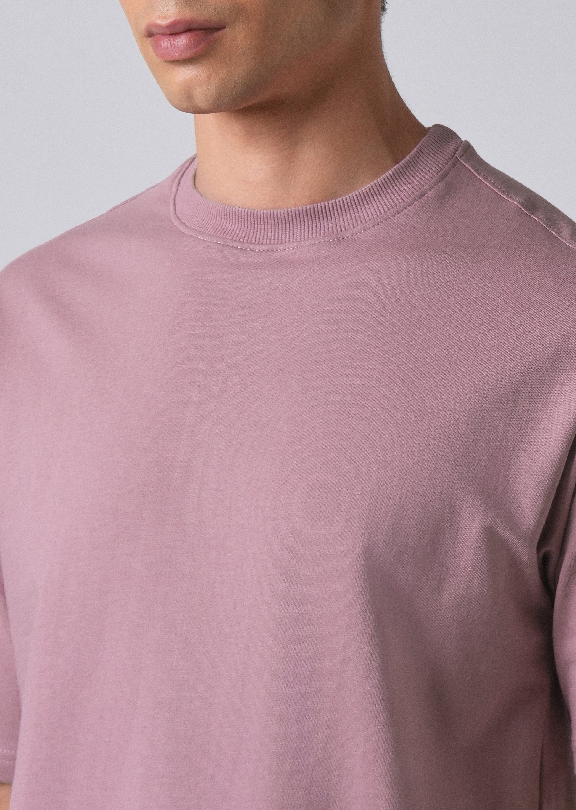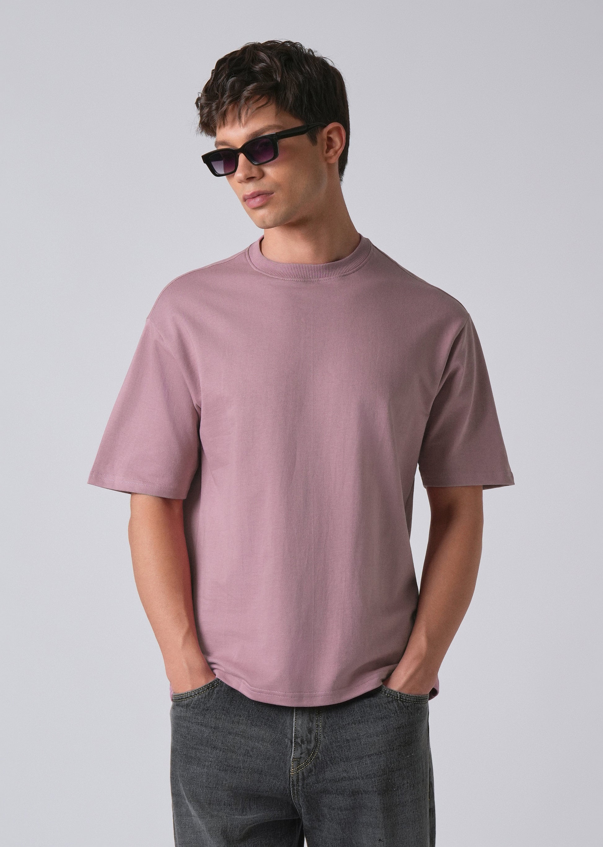This basic t-shirt features a round crew neckline, drop shoulder sleeves, and a straight hemline, creating a clean and relaxed look. The relaxed fit offers everyday comfort, while the cotton fabric with light stretch ensures breathability and easy movement—making it a versatile piece for casual wear.