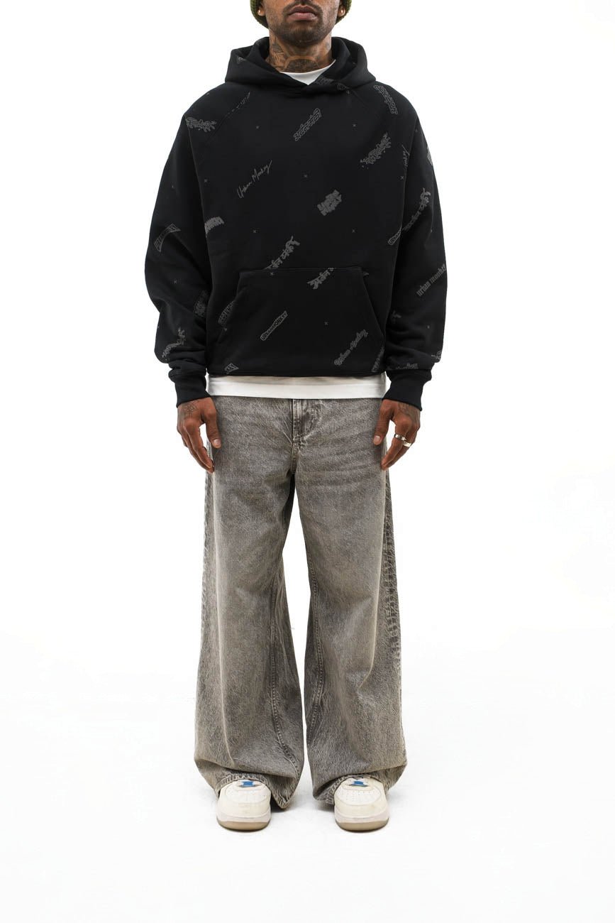 This black oversized hoodie from our Legacy™ collection crafted from a weighty cotton blend is a collector's piece that encapsulates the evolution of the iconic Urban Monkey logo. On this hoodie, witness a tale of Urban Monkey's journey through the concrete jungles to streetwear supremacy. From its inception to the present day.