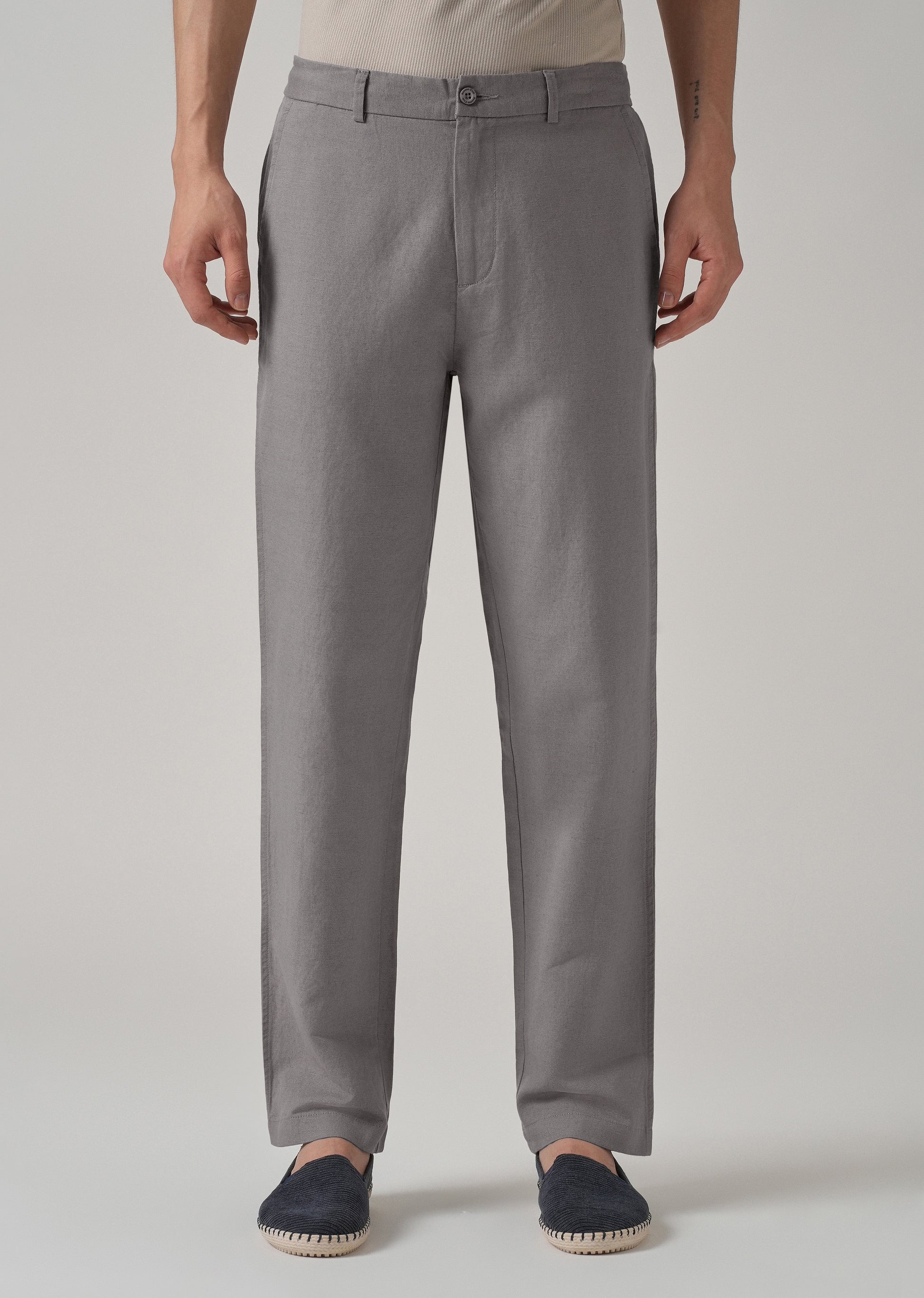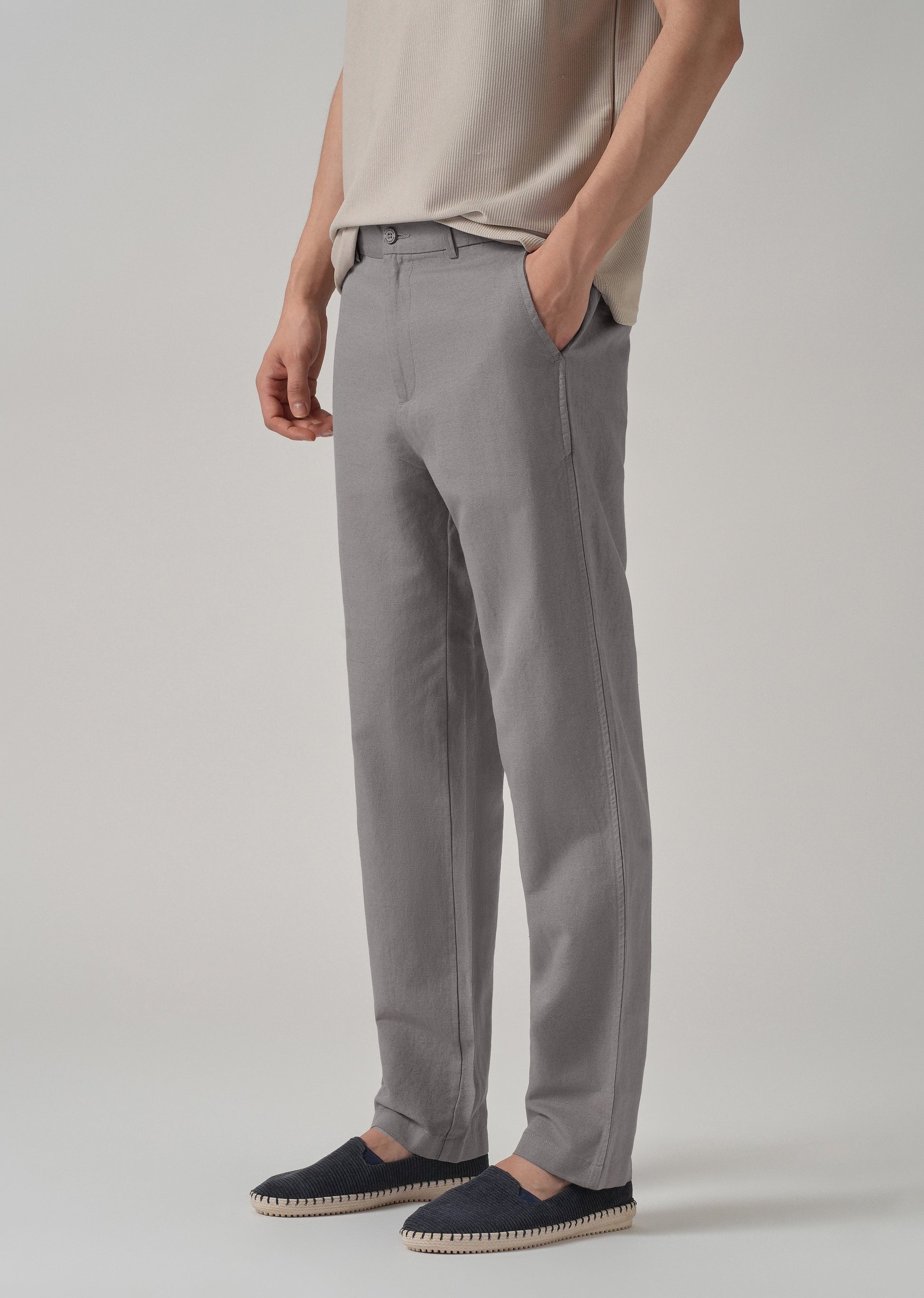 These versatile trousers feature a semi-elasticated waistband for added comfort and a button closure with belt loops for a personalized fit. With two side pockets and two welt pockets at the back. The relaxed fit offers comfortable feel.