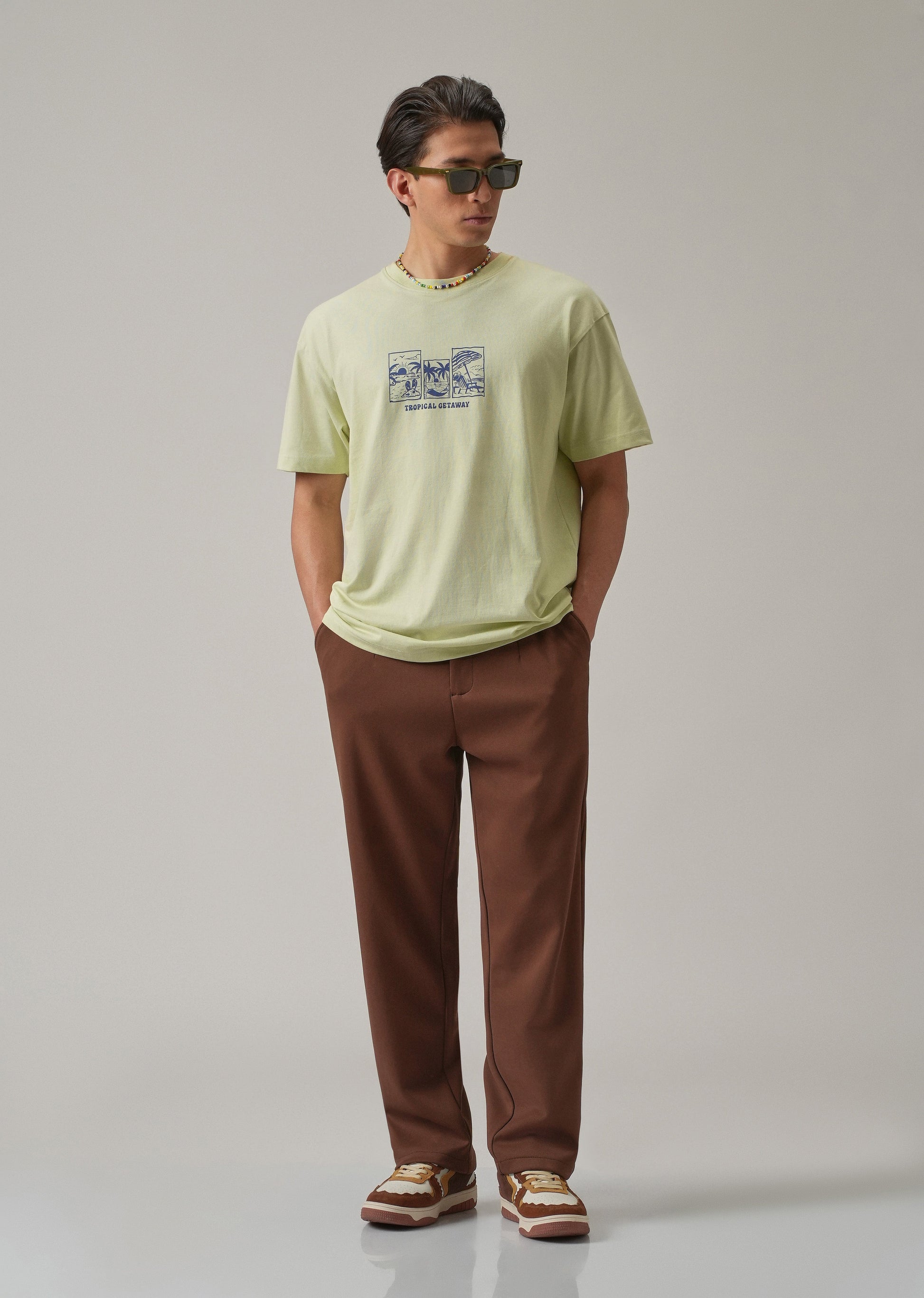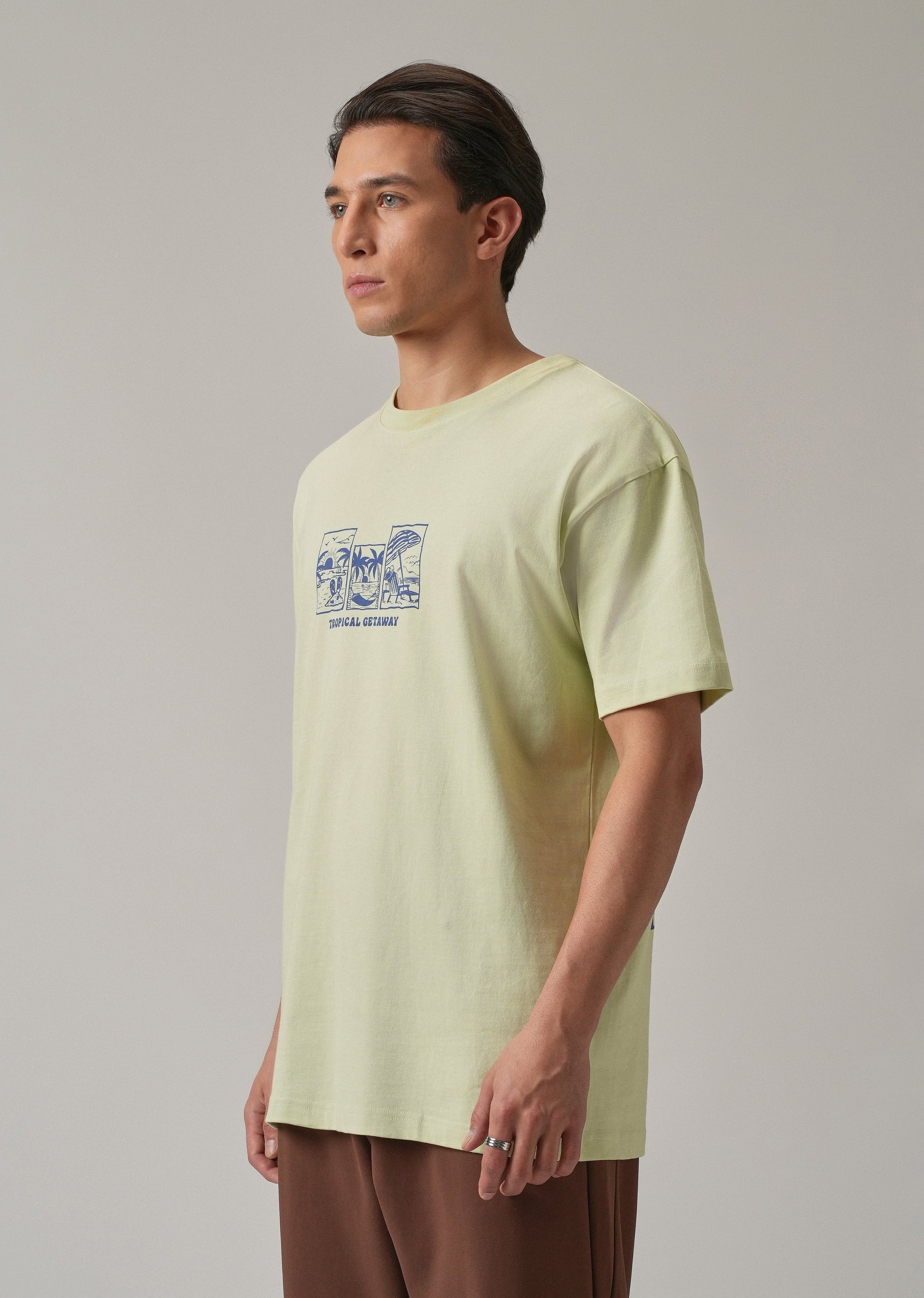 This Printed t-shirt is made for everyday comfort and laid-back style. It has a round neckline, drop shoulders, and a straight hem that give it a relaxed look. Made from soft cotton with a bit of stretch, it feels light and easy to move in. The oversized fit makes it great for casual outfits, whether you're wearing it on its own or layering it.