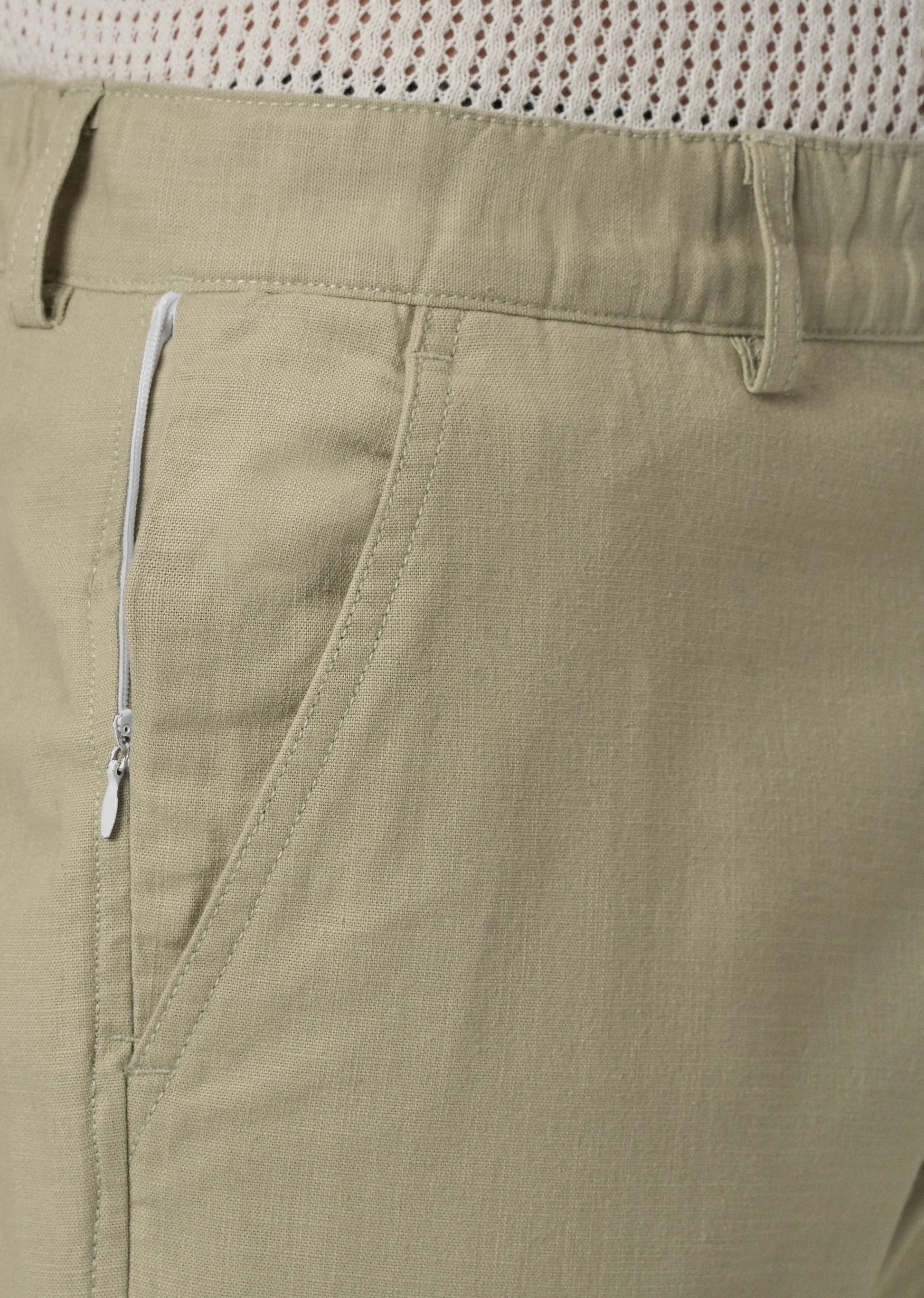 Relaxed, refined, and ready for wherever the day takes you. Designed for everyday comfort with a clean silhouette, these cotton trousers are a versatile wardrobe essential. The concealed zipper adds a seamless touch, while the elasticated waistband ensures ease without sacrificing structure.
