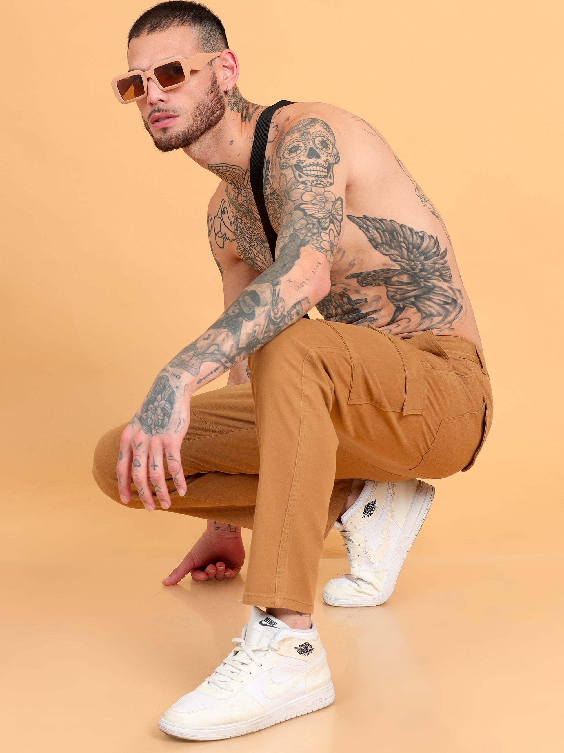 Men 2 Cotton Regular Fit Cargo Trousers, BLACK KHAKHI