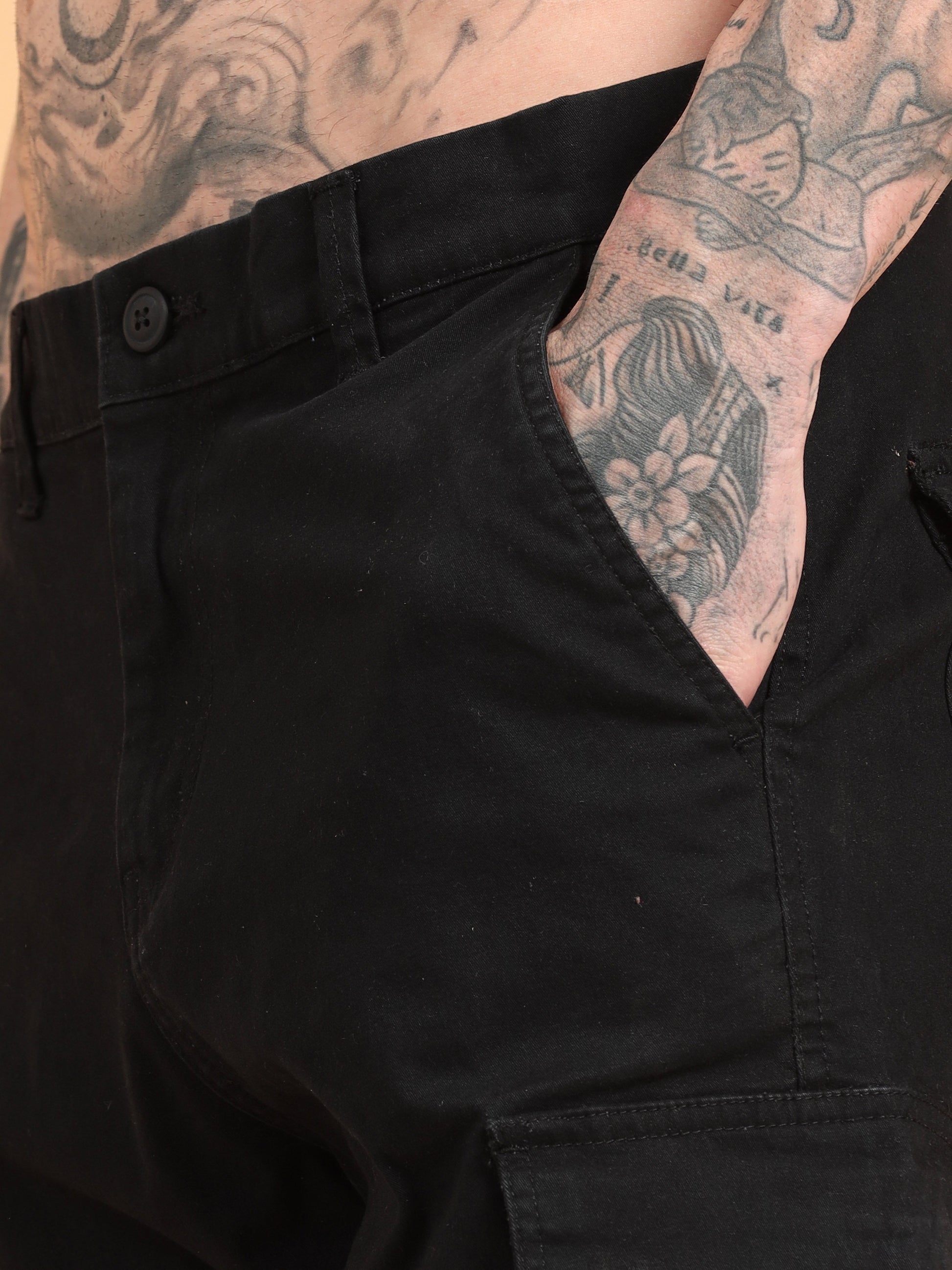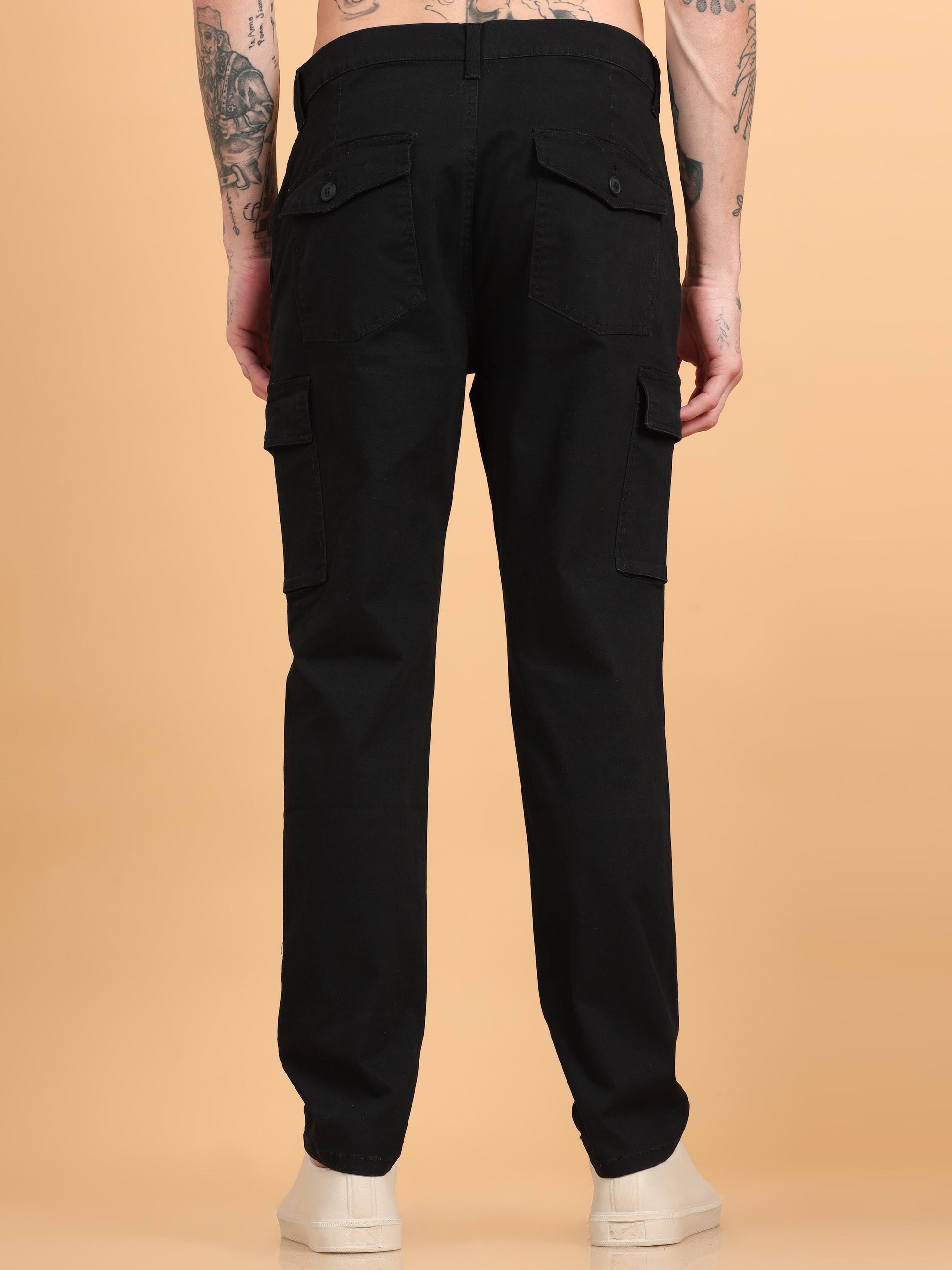 Men 2 Cotton Regular Fit Cargo Trousers, BLACK BROWN