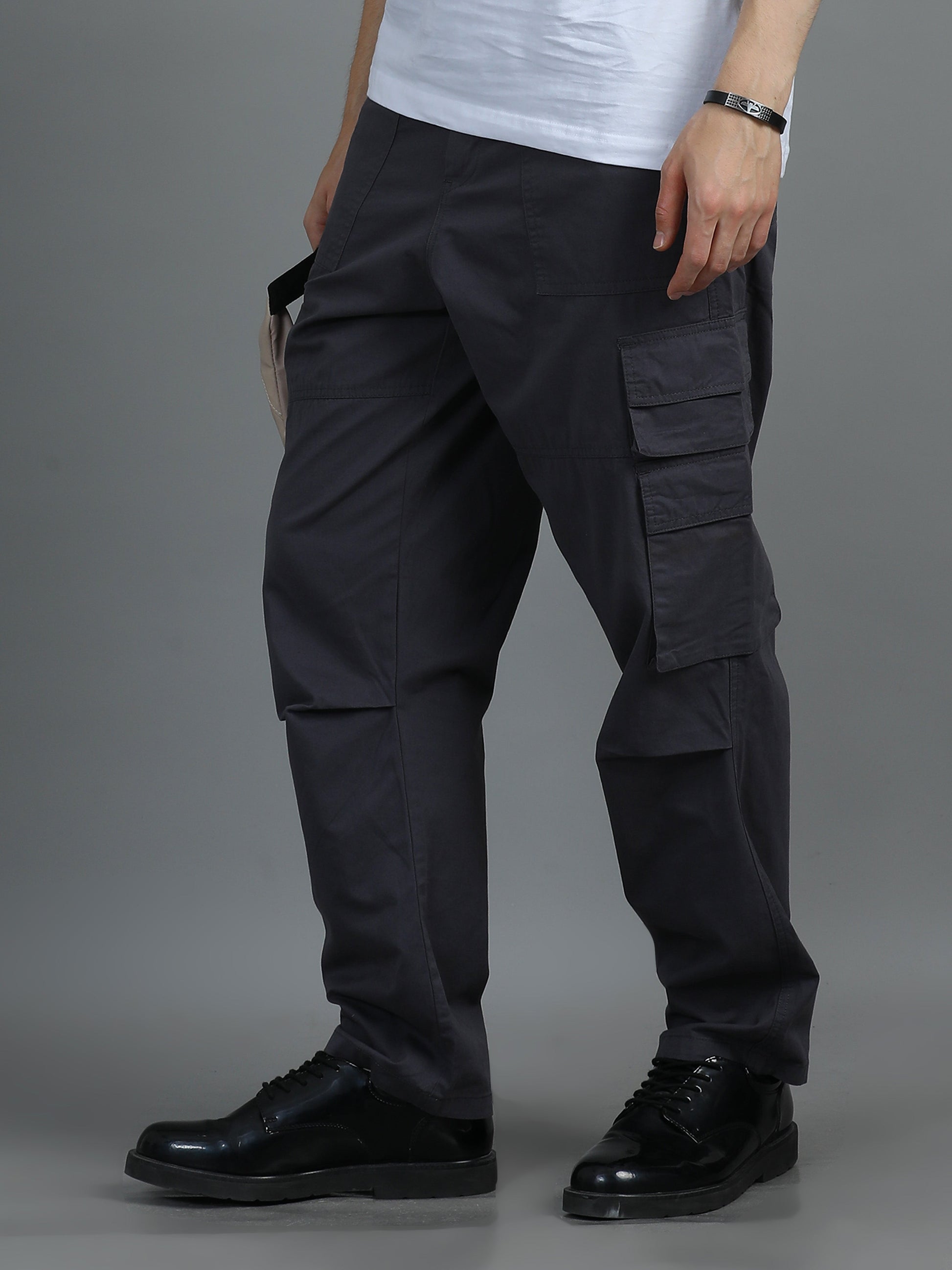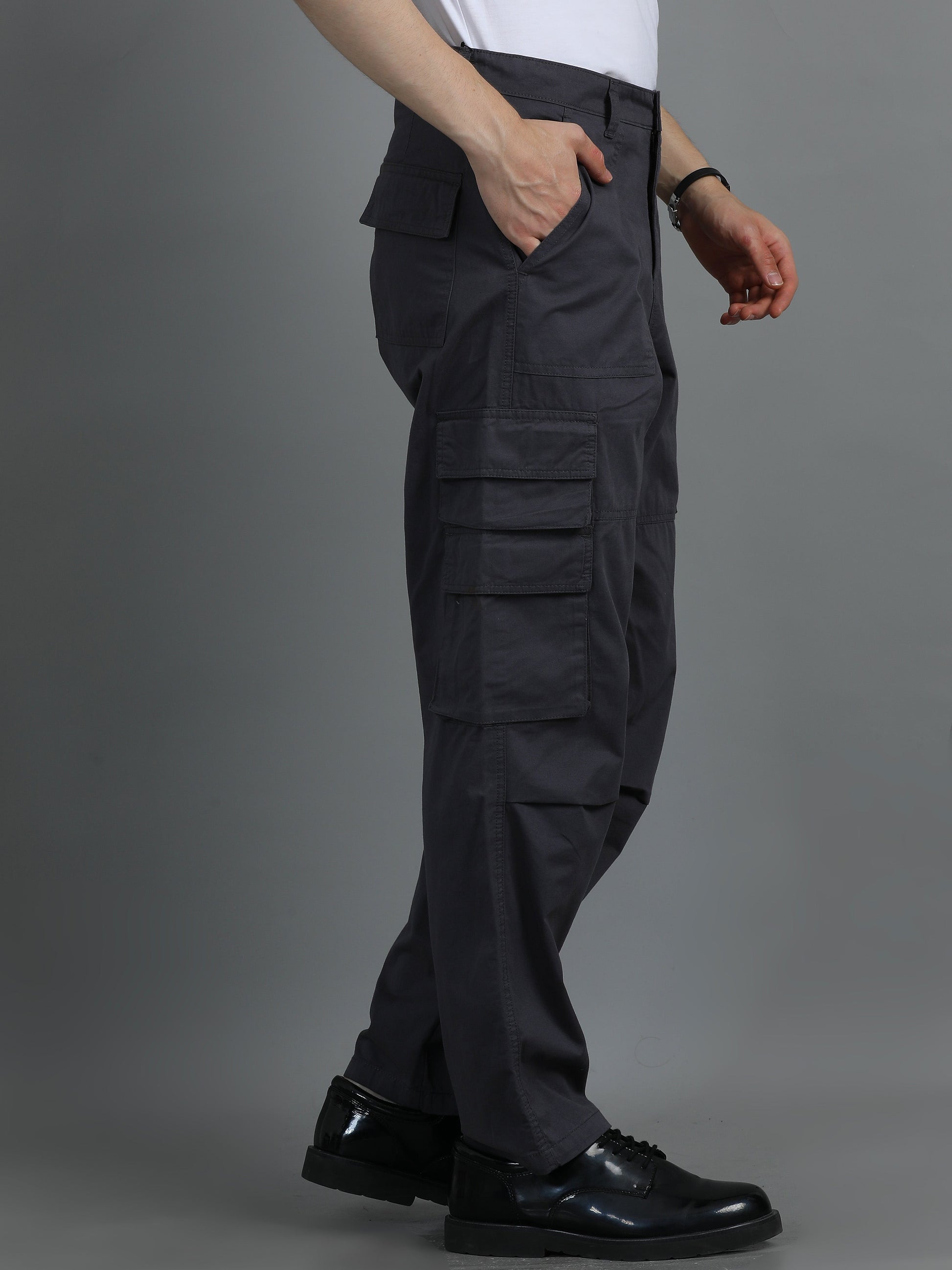 Men 2 Cotton Relaxed Fit Cargo Trousers, Charcoal Grey khakhi