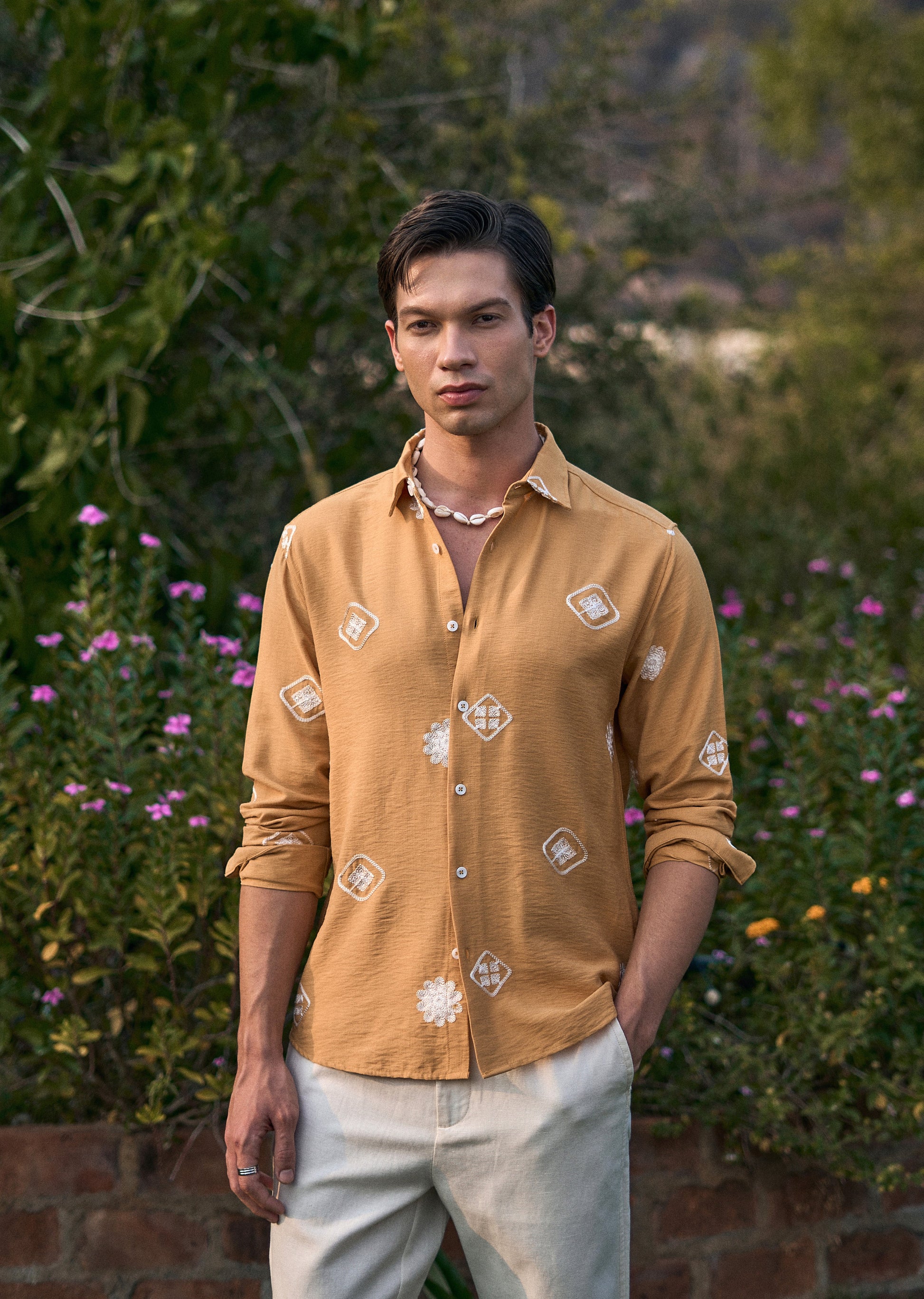 Mustard Motif Embroidery Shirt