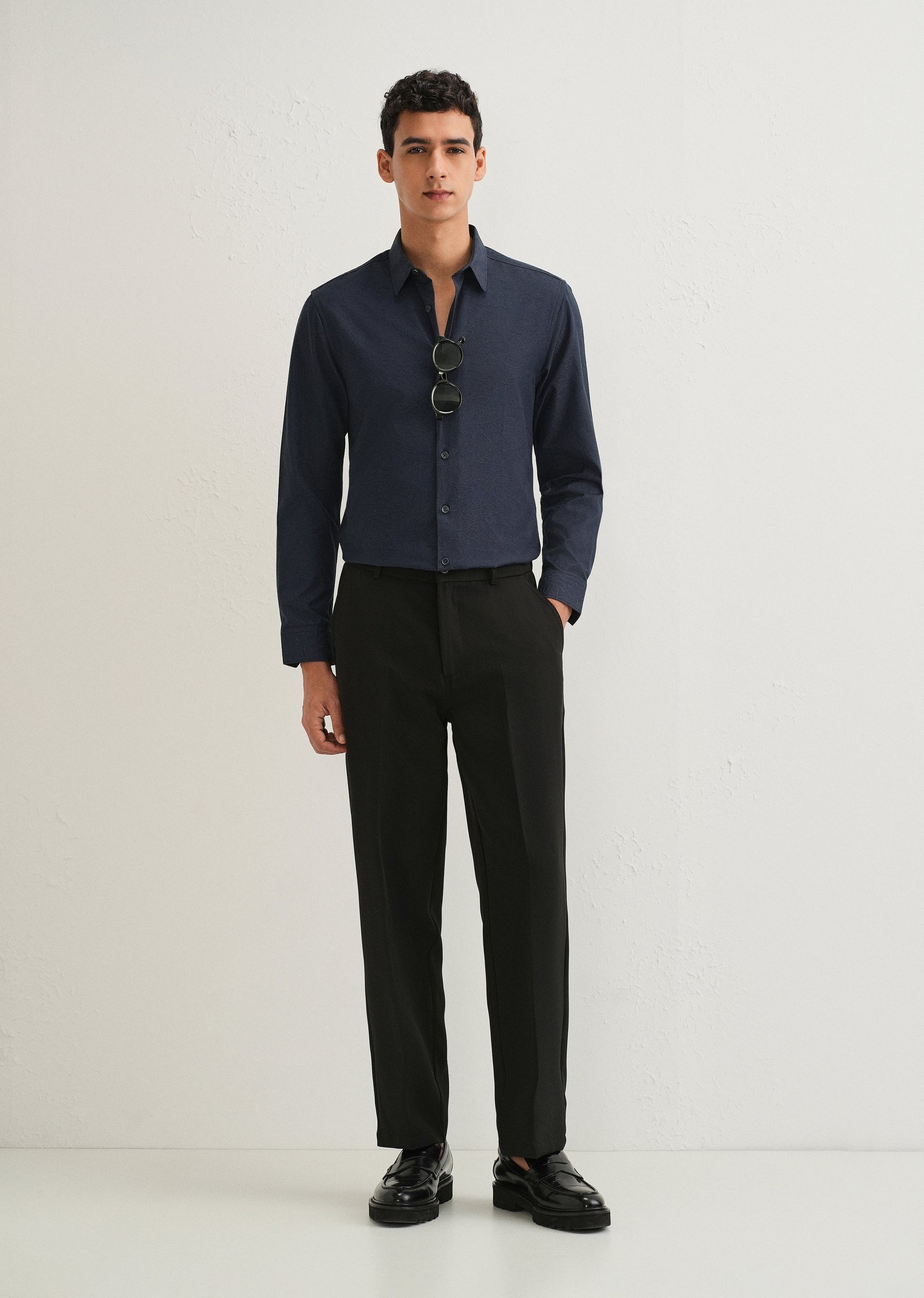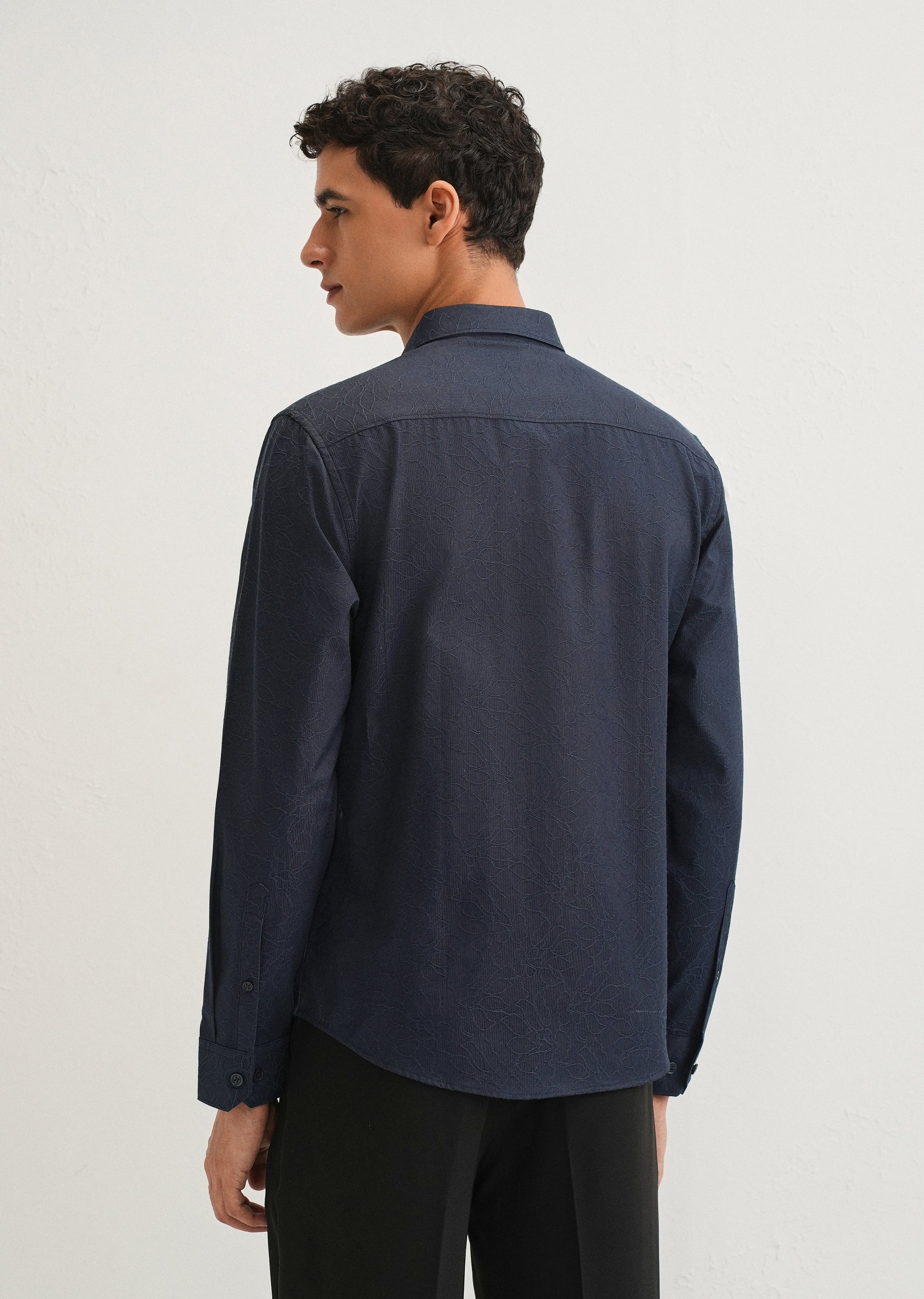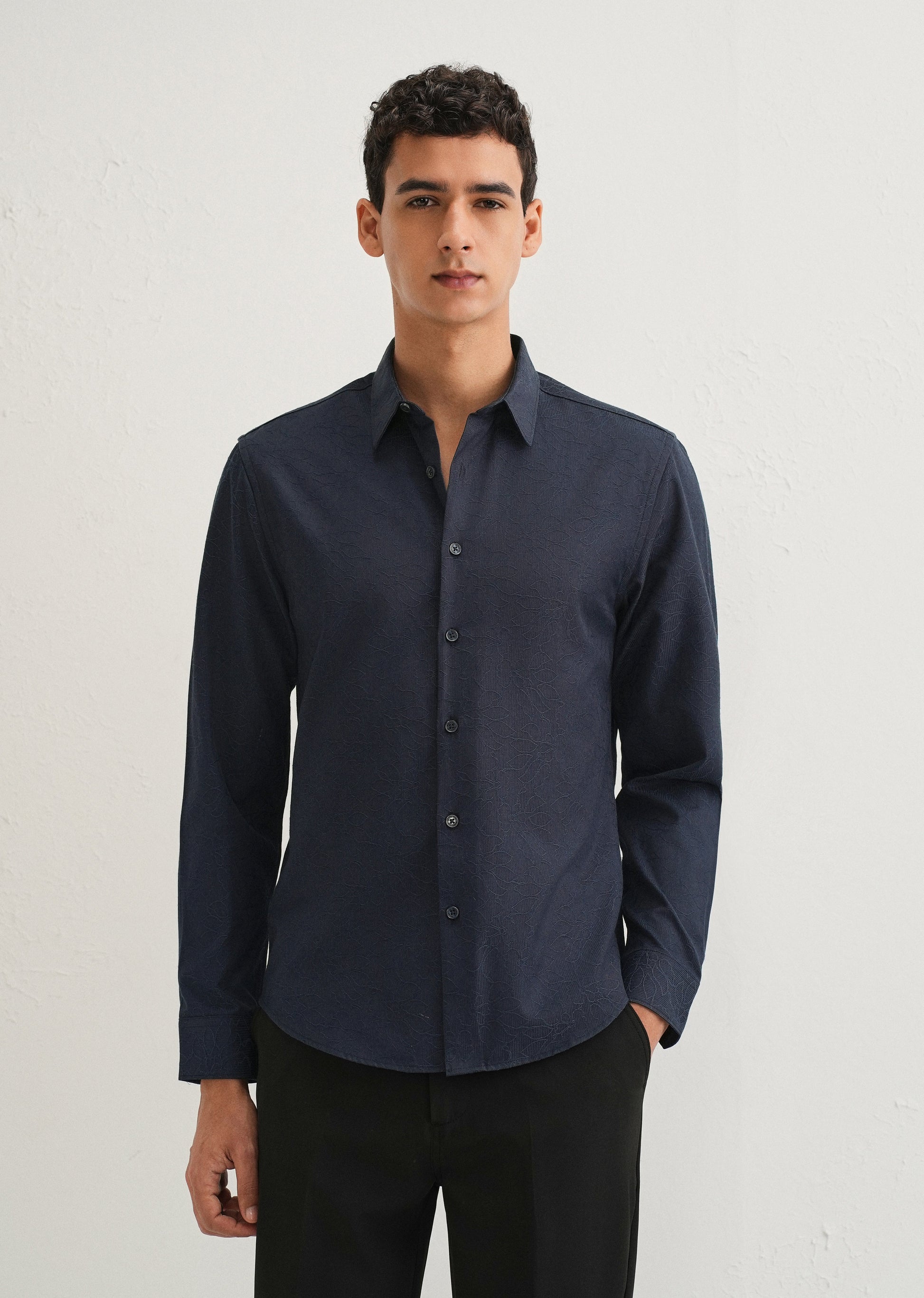 Elevate your casual wardrobe with our jacquard Shirt. This regular fit shirt features a spread collar and full sleeves, perfect for any occasion. The button closure ensures a sleek look, while the fabric adds a touch of elegance. Crafted from high-quality woven fabric which is lightweight and breathable. Ideal for those seeking a unique and fashionable addition to their collection, this shirt is a must-have for any fashion-forward individual.