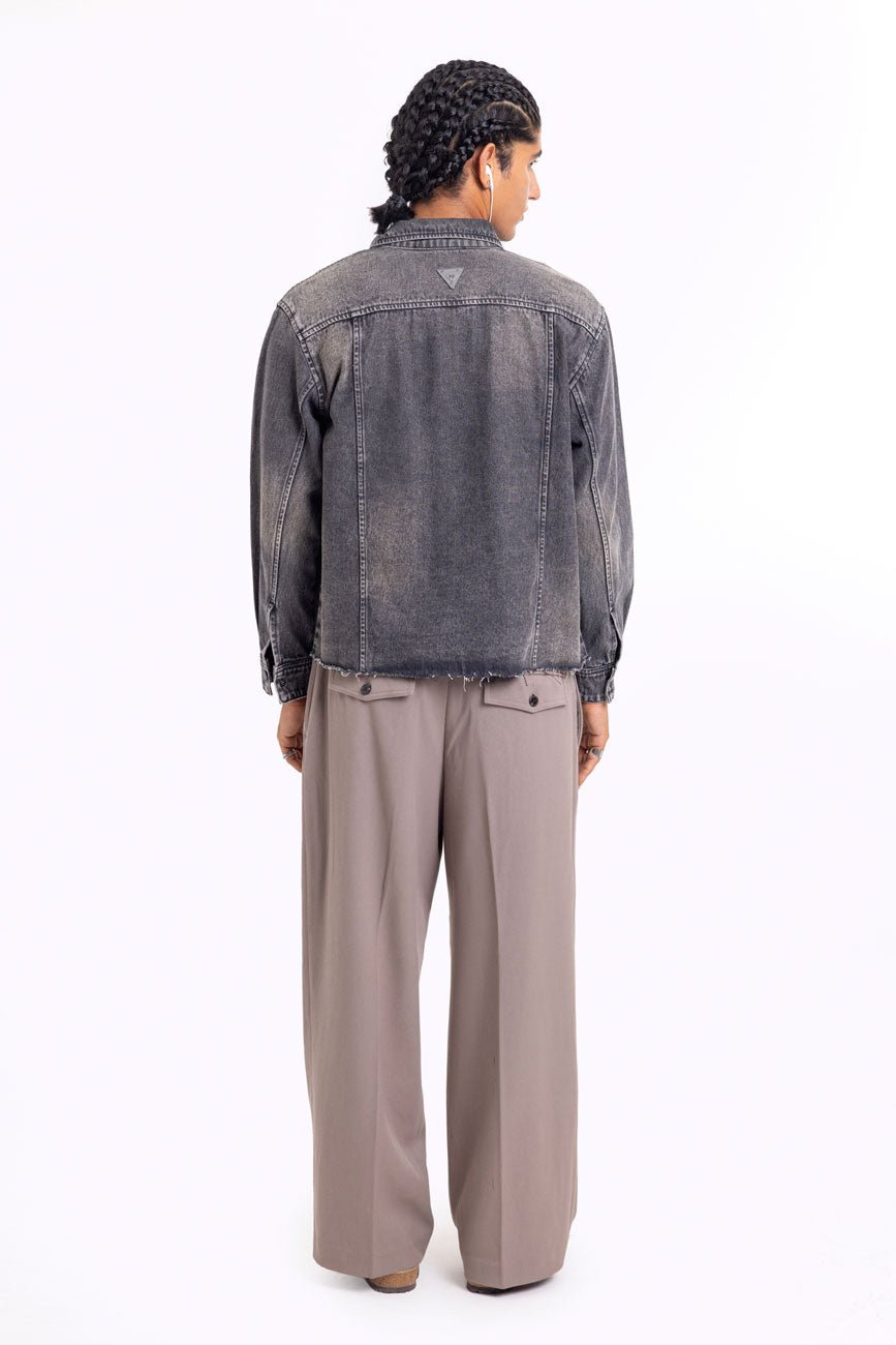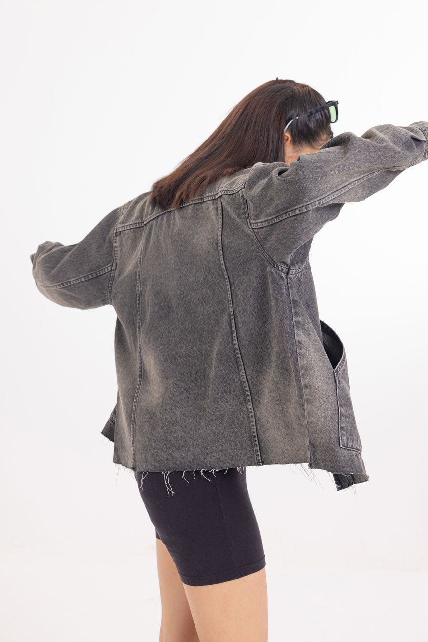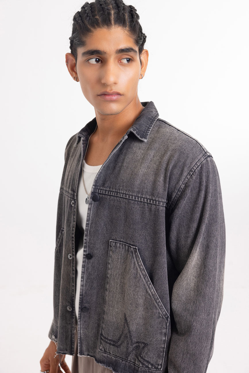 Timeless Rugged Heat. Novocaine is your no brainer, frayed hem denim jacket meant to throw on and uplift any and every outfit. In a Grayish black wash, the nostalgic ultra feel will take you back to a camcorder memory of contemplating interpersonal reflection while driving down a Pink + White sunset. The juxtaposed intricate monkey embroidery detail on the unorthodox larger than life pockets will add that extra sauce to all your fits.