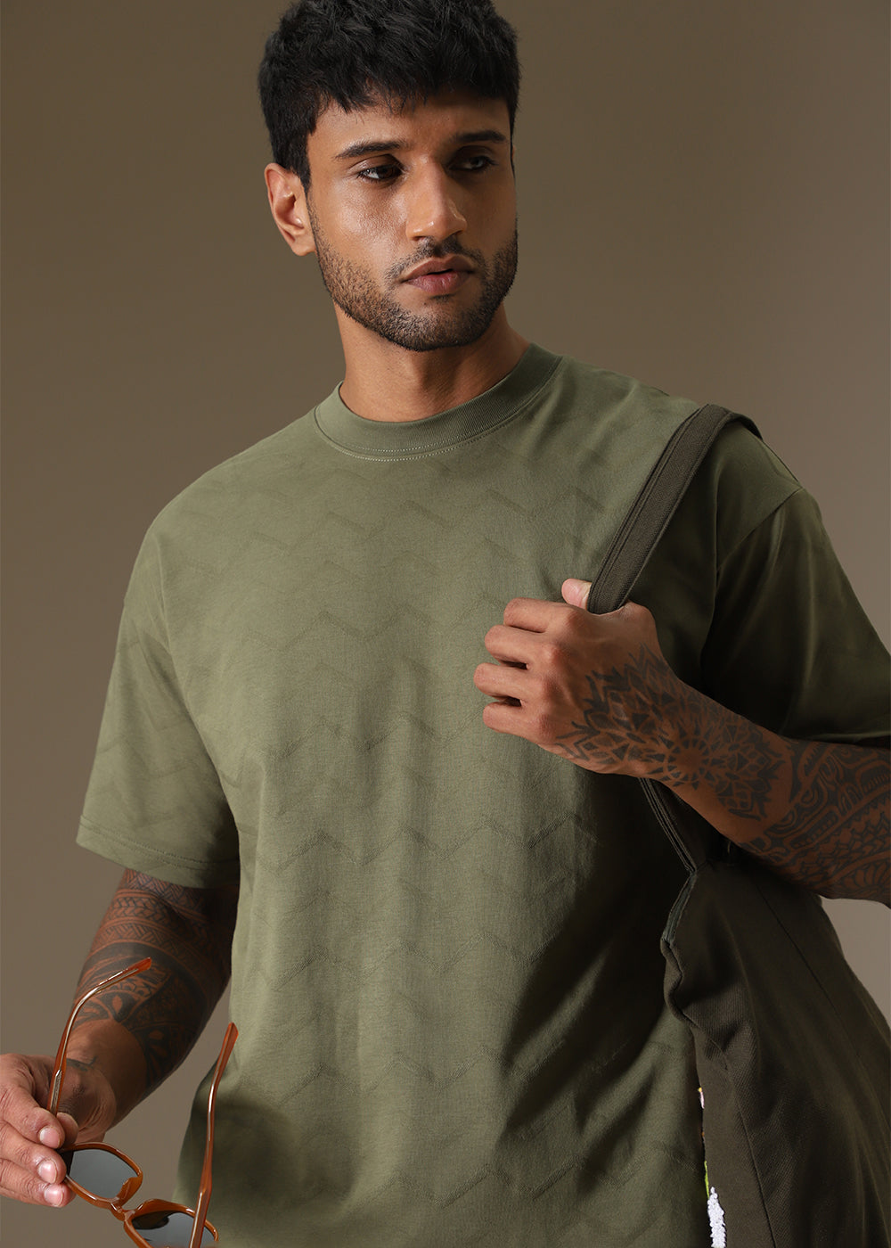 Olive Plain Drop Shoulder Oversized T-shirt