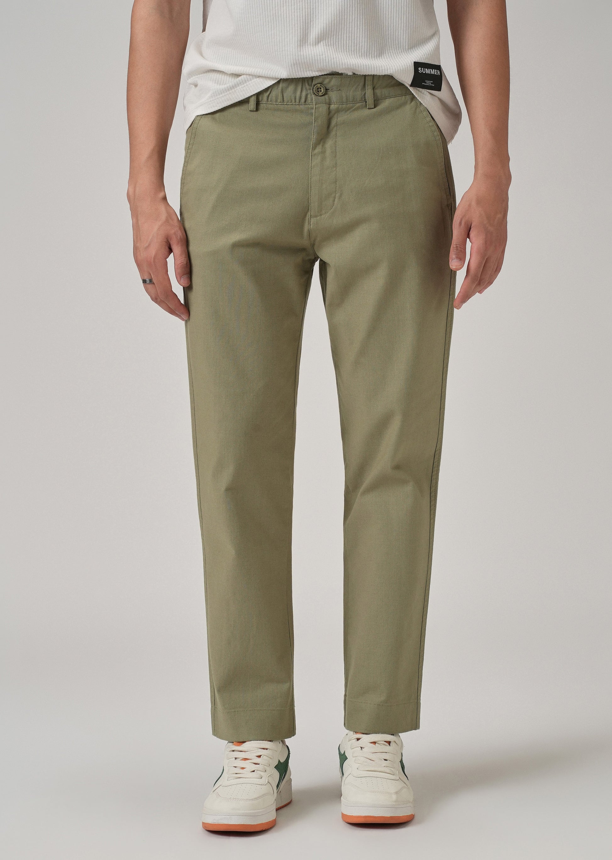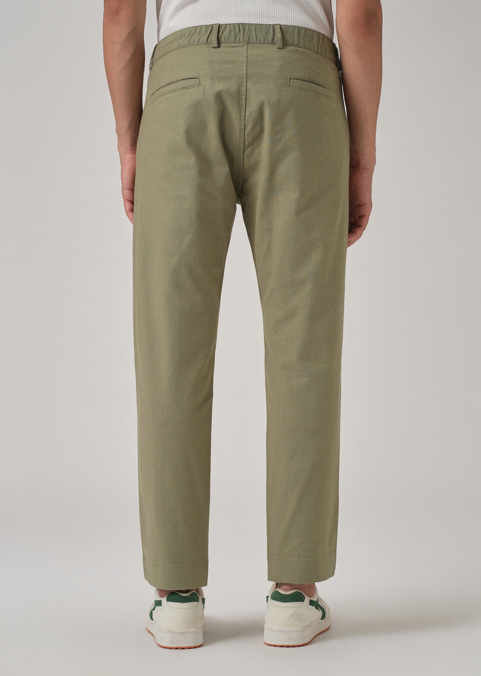 Relaxed, refined, and ready for wherever the day takes you. Designed for everyday comfort with a clean silhouette, these cotton trousers are a versatile wardrobe essential. The concealed zipper adds a seamless touch, while the elasticated waistband ensures ease without sacrificing structure.