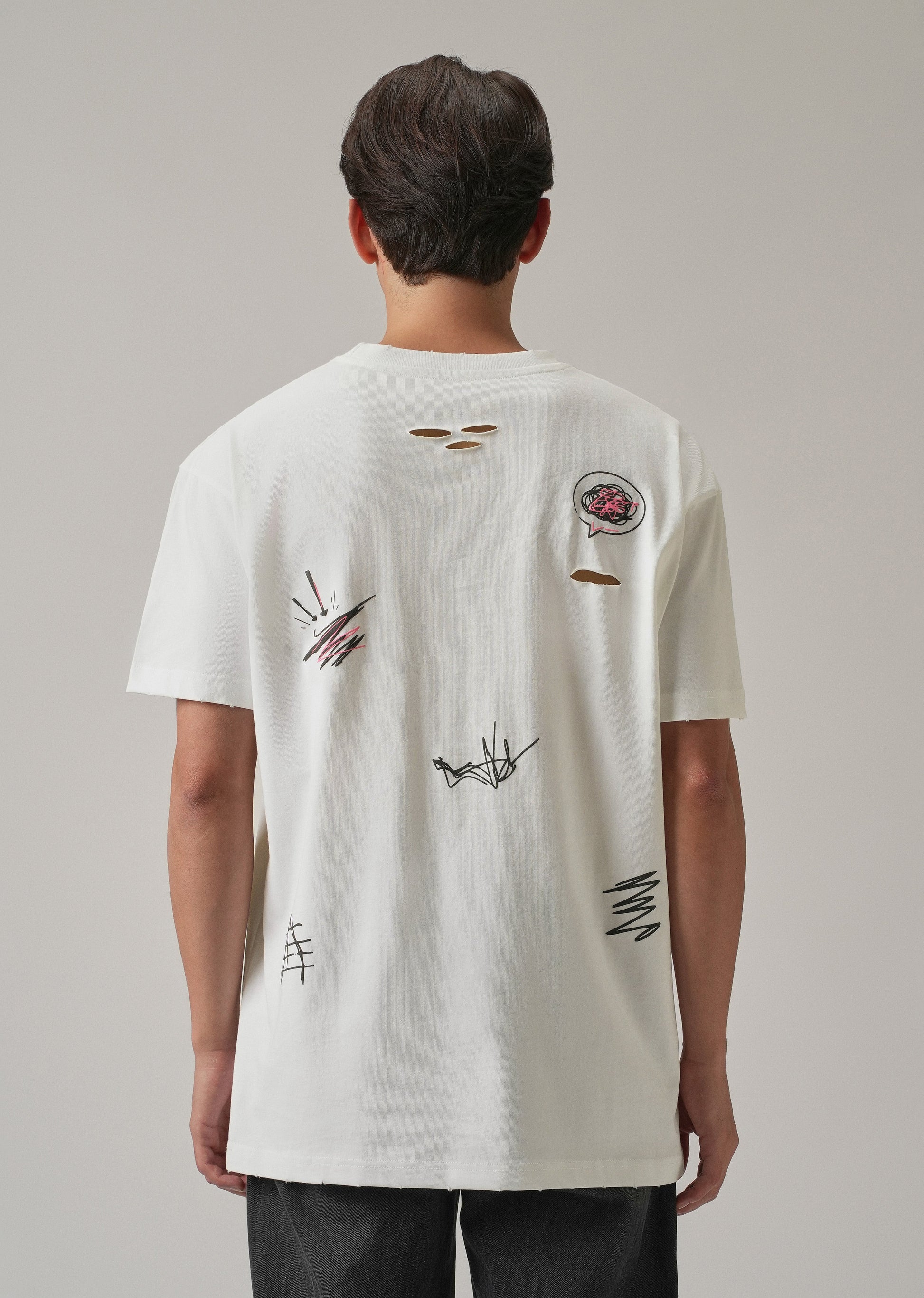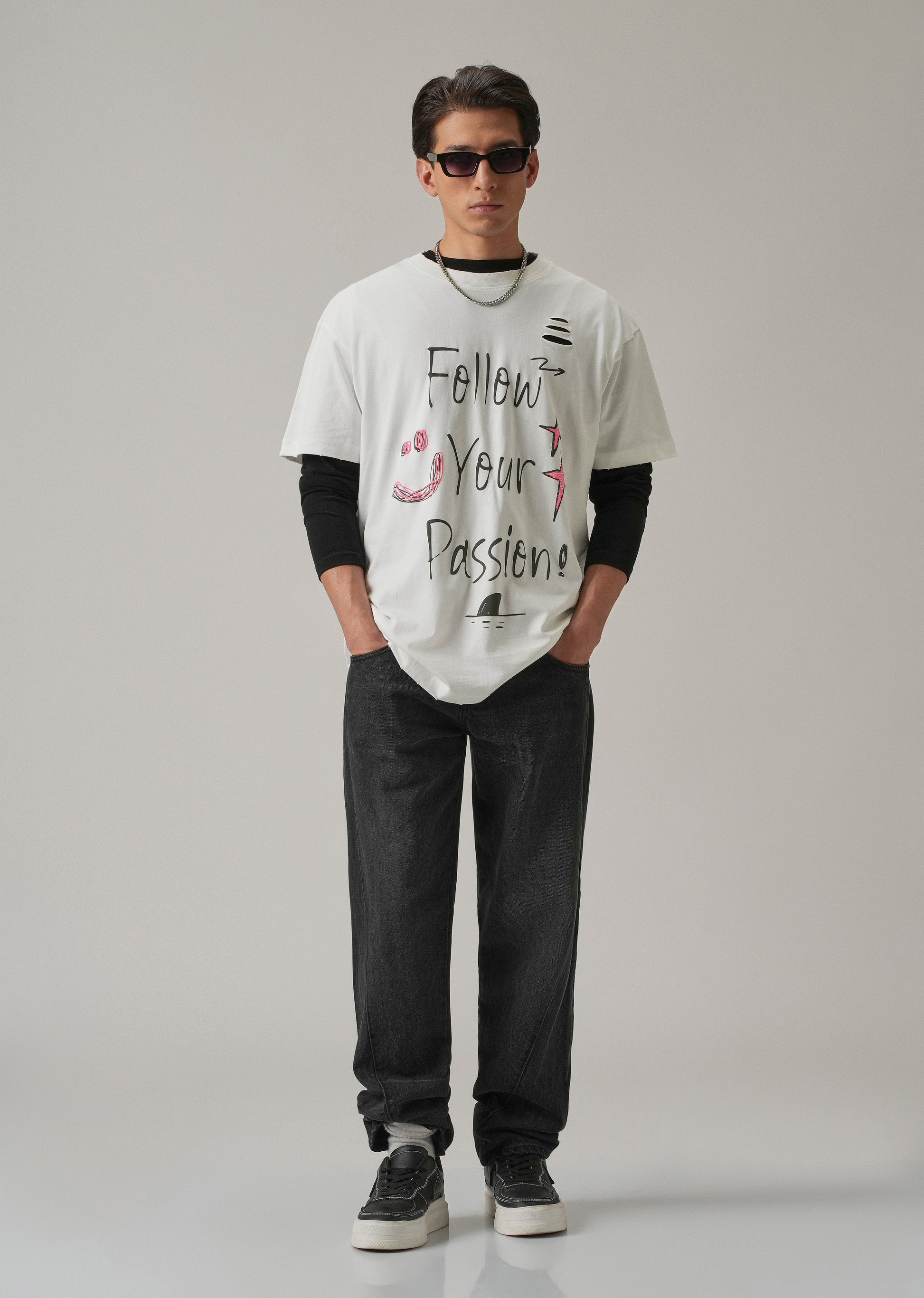 This Printed t-shirt is made for everyday comfort and laid-back style. It has a round neckline, drop shoulders, and a straight hem that give it a relaxed look. Made from soft cotton with a bit of stretch, it feels light and easy to move in. The oversized fit makes it great for casual outfits, whether you're wearing it on its own or layering it.
