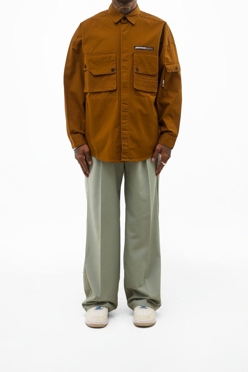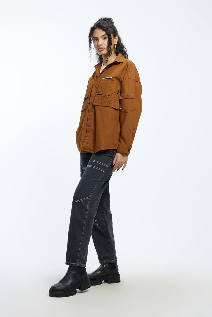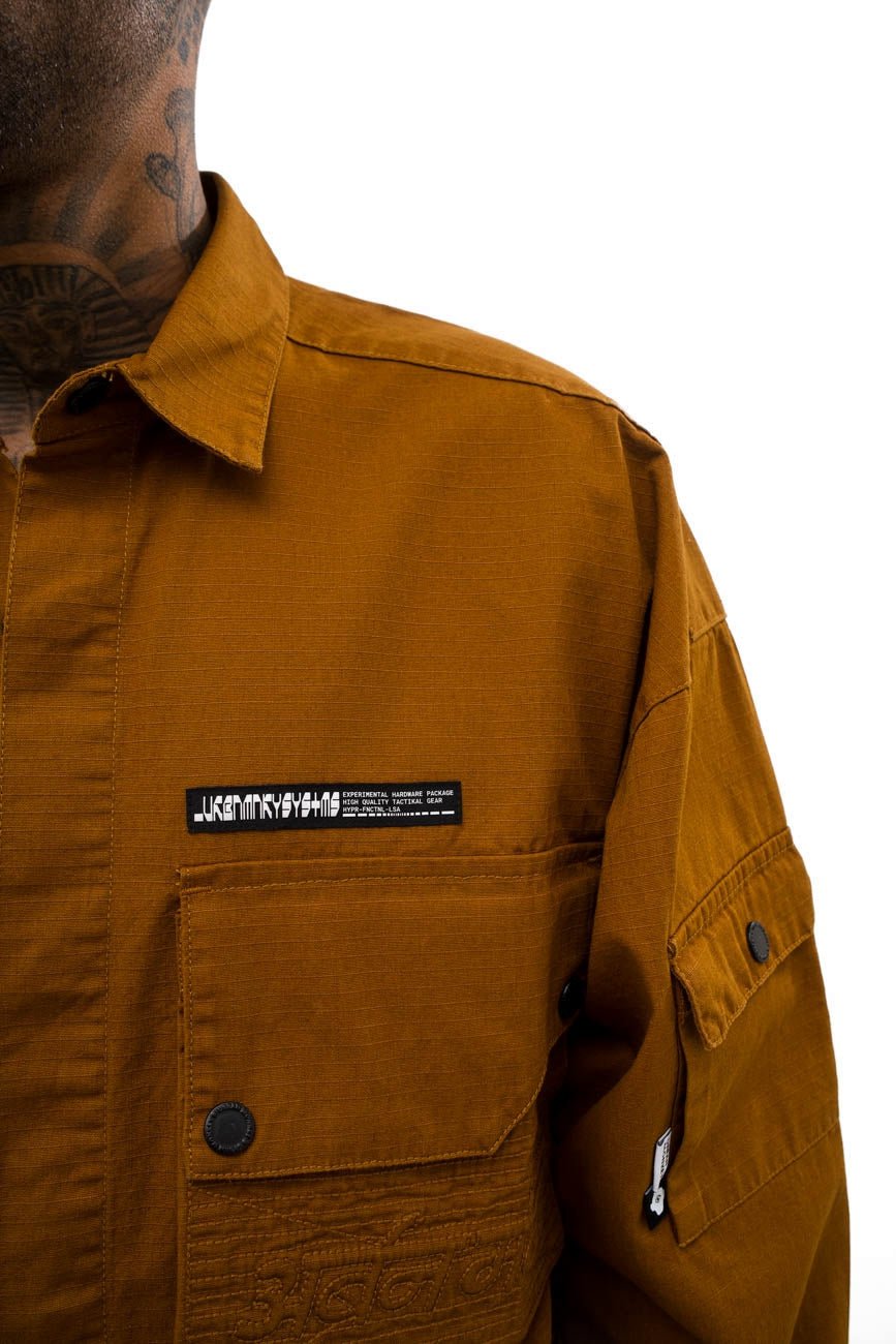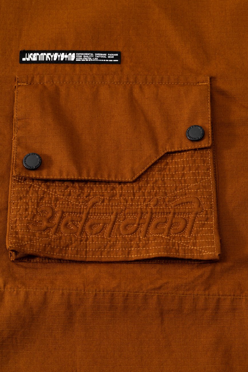Part of our Urbanmnky-Systms™ collection, this multi pocket Tan Brown/Rust over shirt is crafted in lightweight cotton Ripstop fabric that has been reinforced to make it more resistant to tearing or ripping. Featuring two chest pockets, an added pocket on left sleeve, and brand label patches, this versatile shirt is packed with meticulous signature details. Roomy cut for easy layering. Authentic workwear feel.