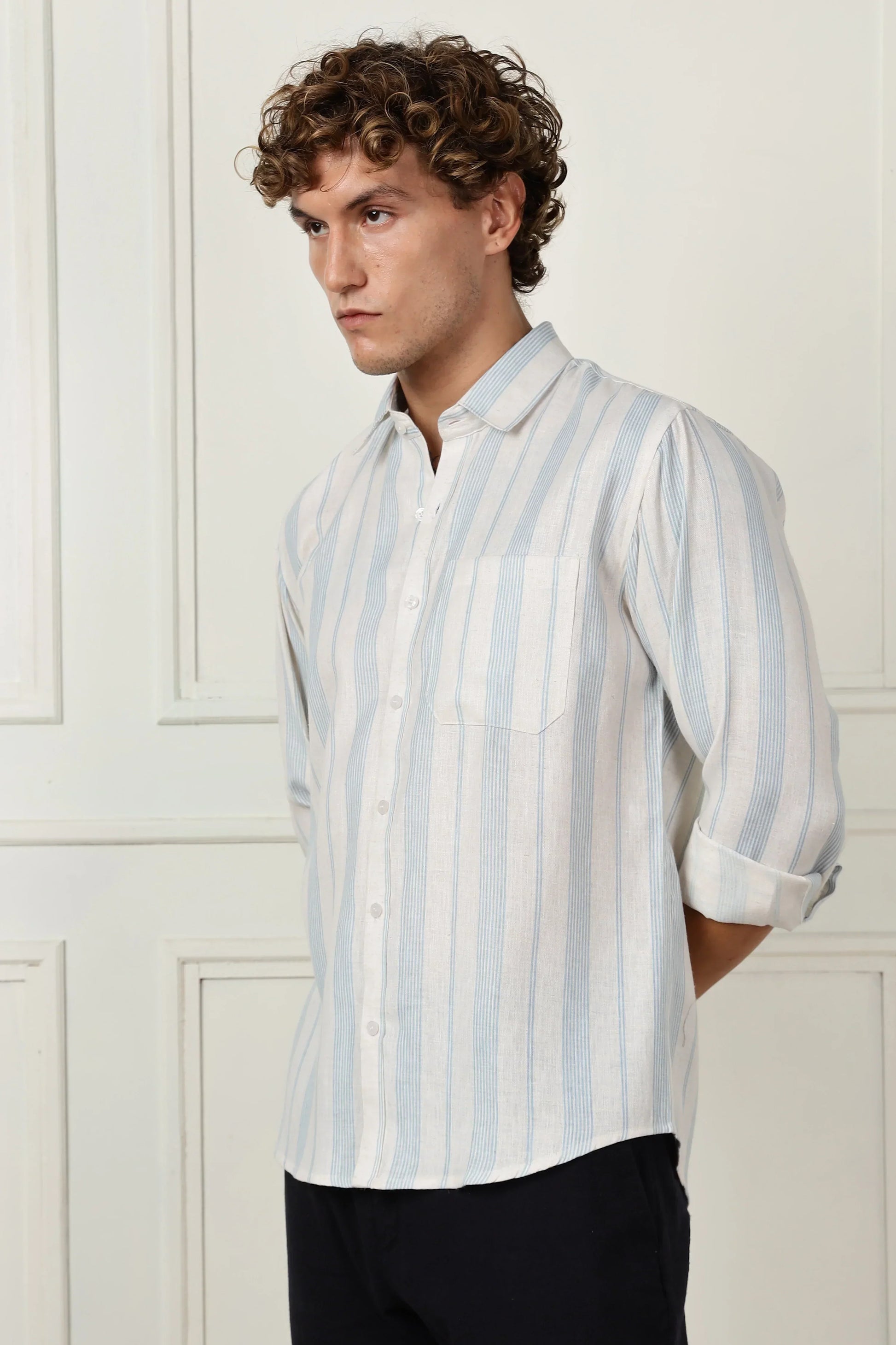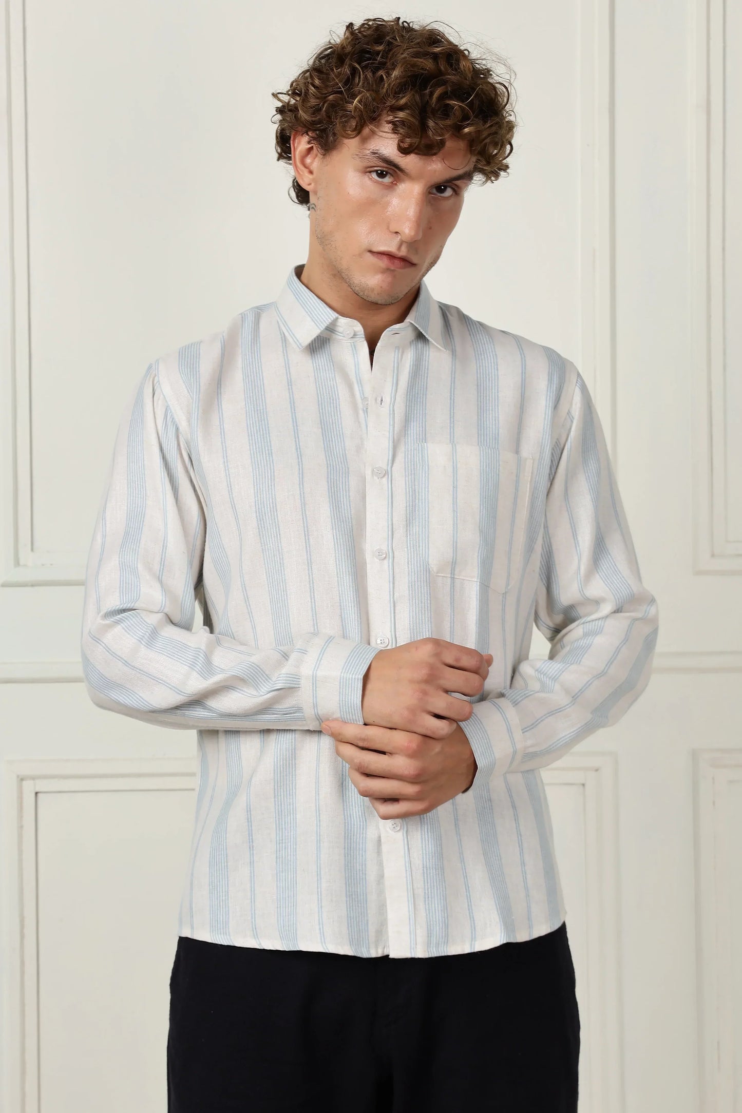 Skyblue stripe printed full sleeve linen shirt