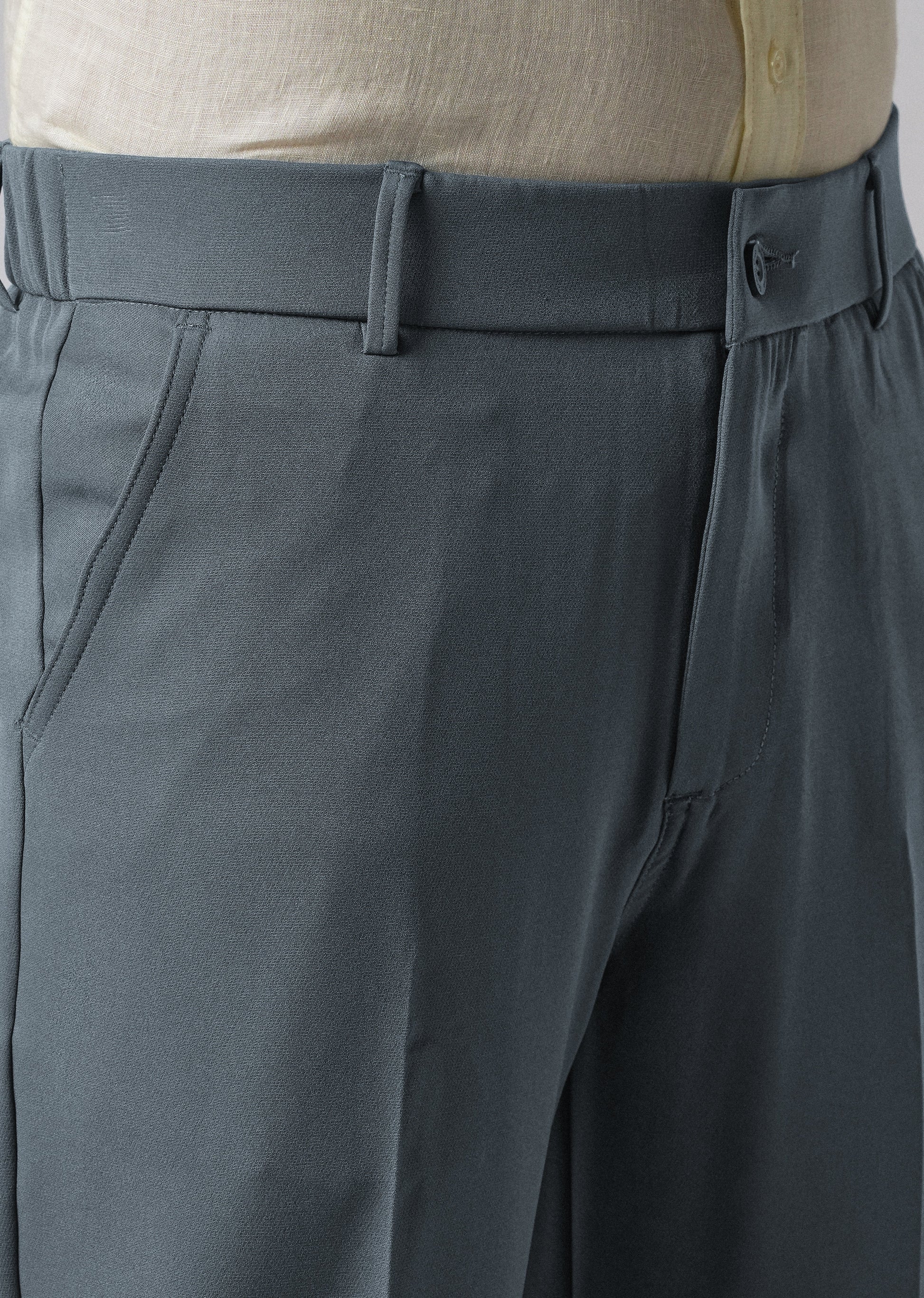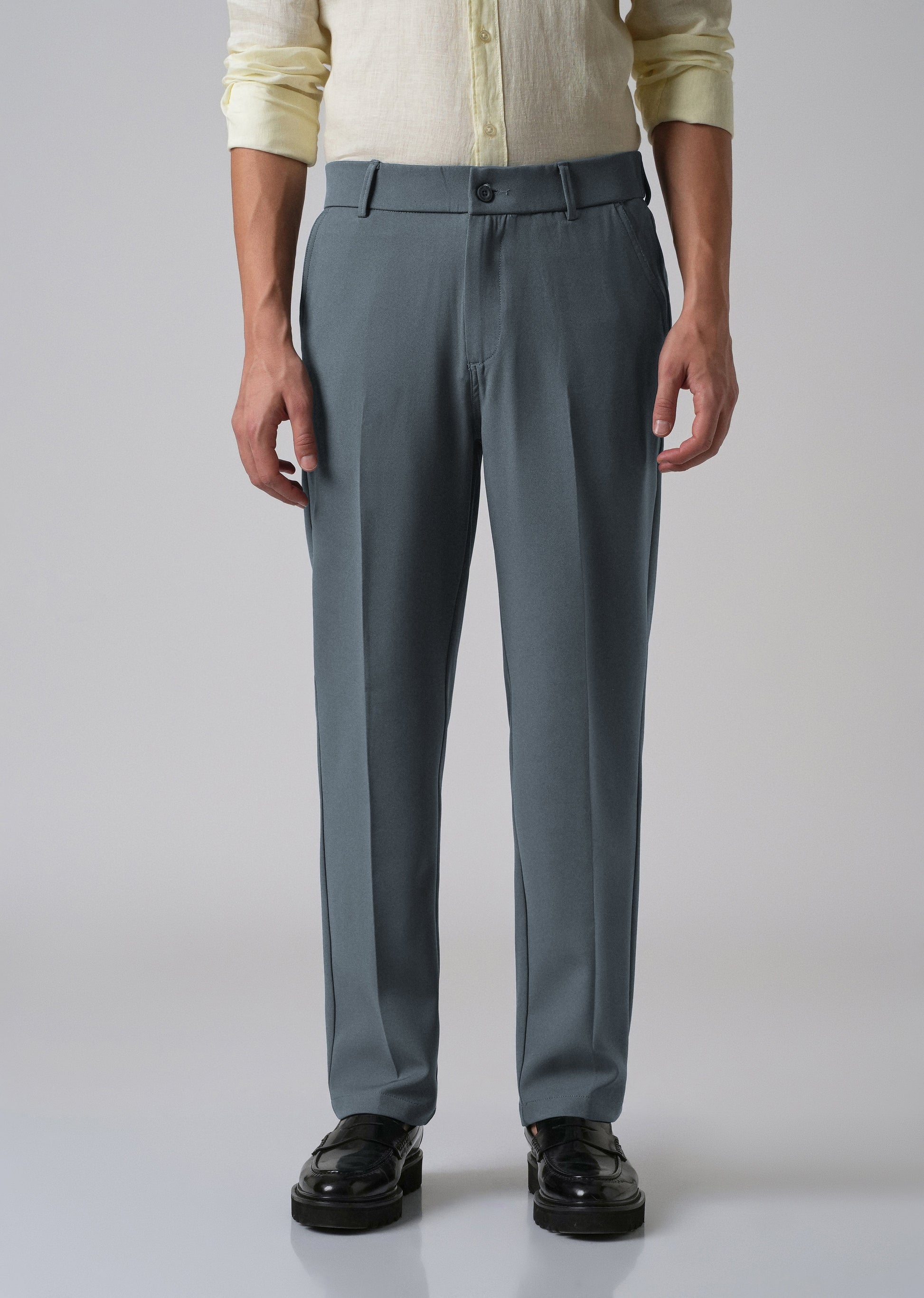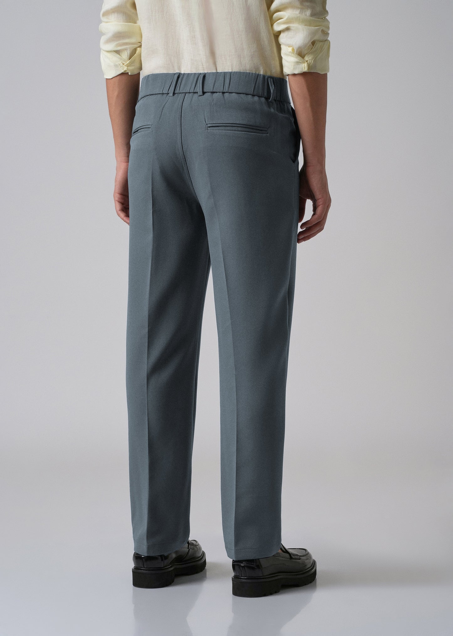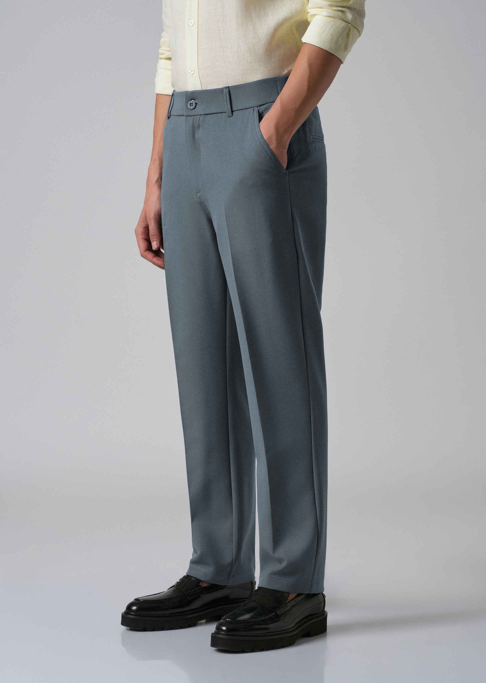 These trousers combine comfort and style with a semi-elasticated waistband and belt loops for a flexible yet polished fit. They feature a button and zipper closure, two side pockets, and two back welt pockets for everyday convenience. Made from a 96% polyester, 4% spandex blend, they offer gentle stretch and hold their shape—perfect for both casual and smart-casual wear.