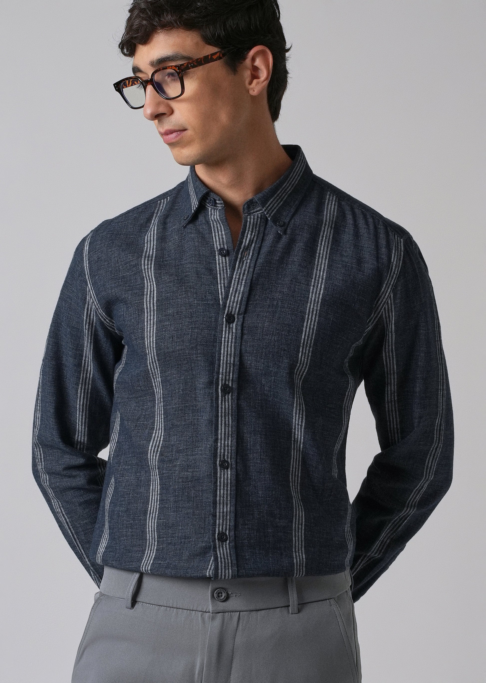 Melange Stick Blue Stripe Shirt
