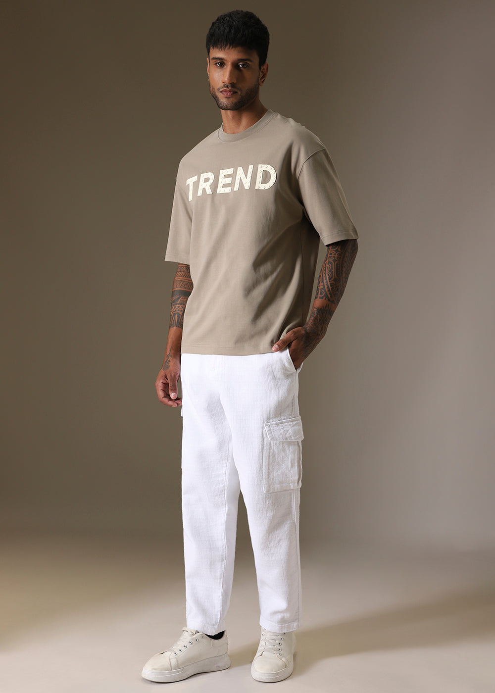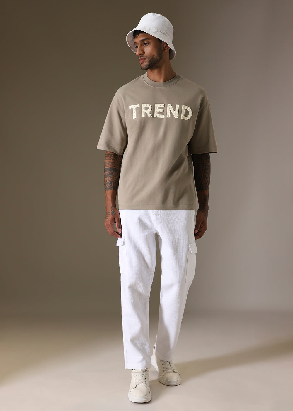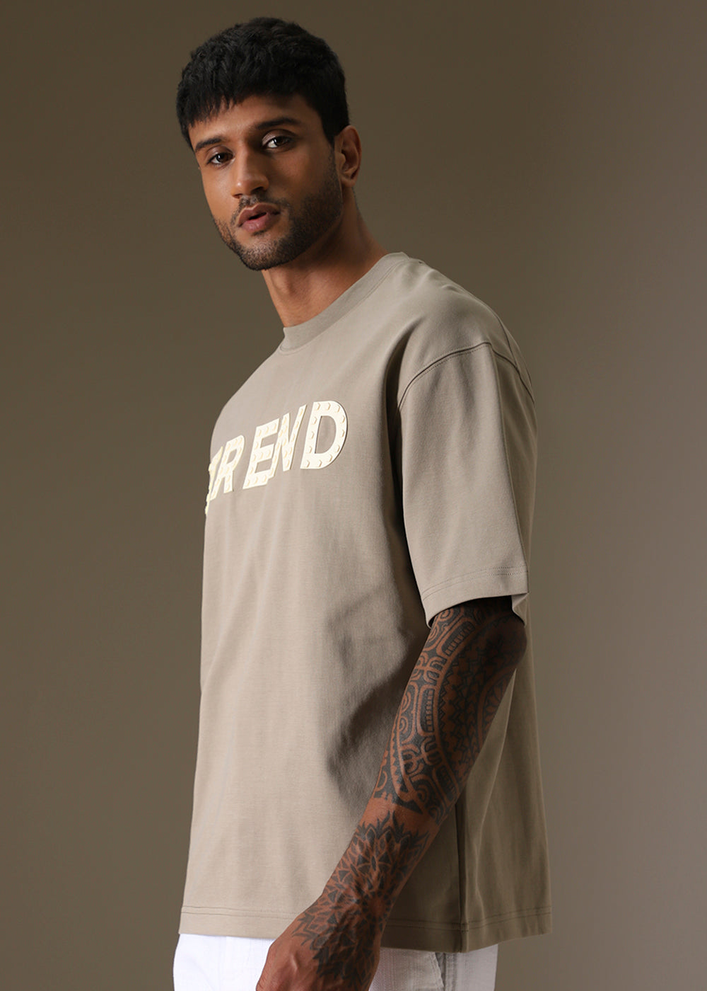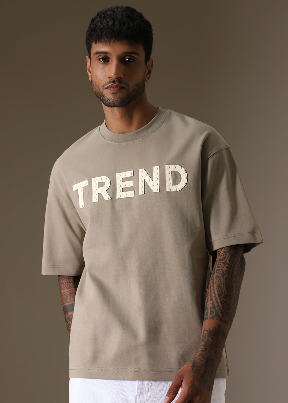 Tan Embossed Oversized T-shirt