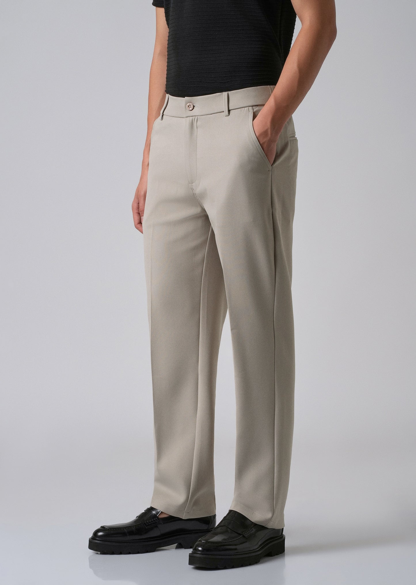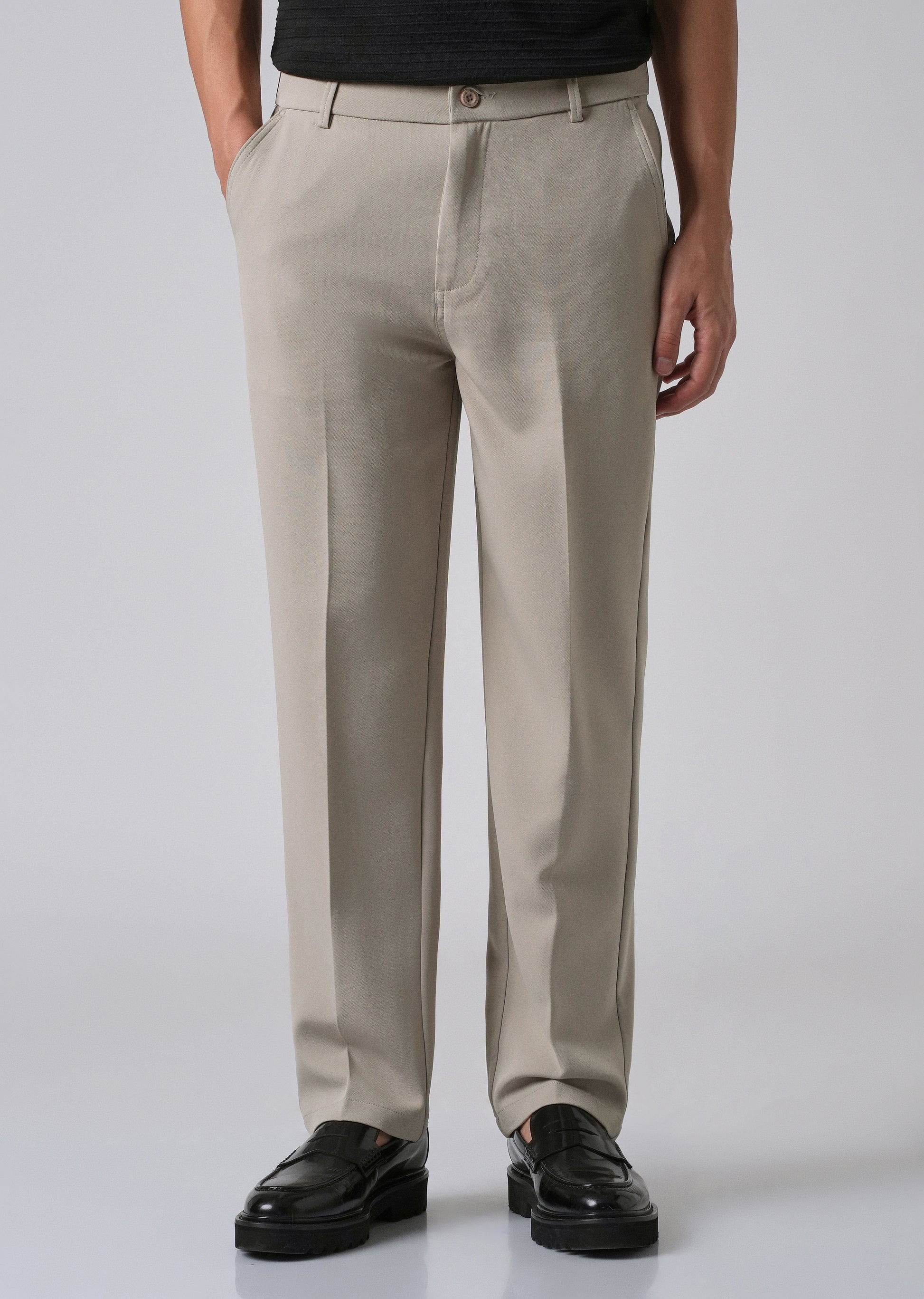 These trousers combine comfort and style with a semi-elasticated waistband and belt loops for a flexible yet polished fit. They feature a button and zipper closure, two side pockets, and two back welt pockets for everyday convenience. Made from a 96% polyester, 4% spandex blend, they offer gentle stretch and hold their shape—perfect for both casual and smart-casual wear.