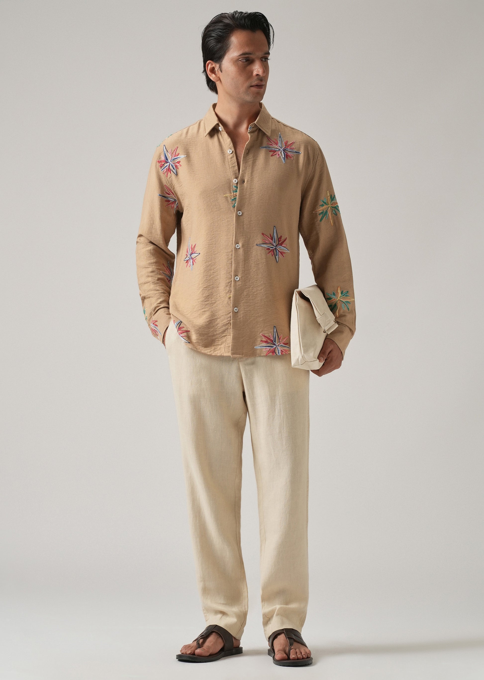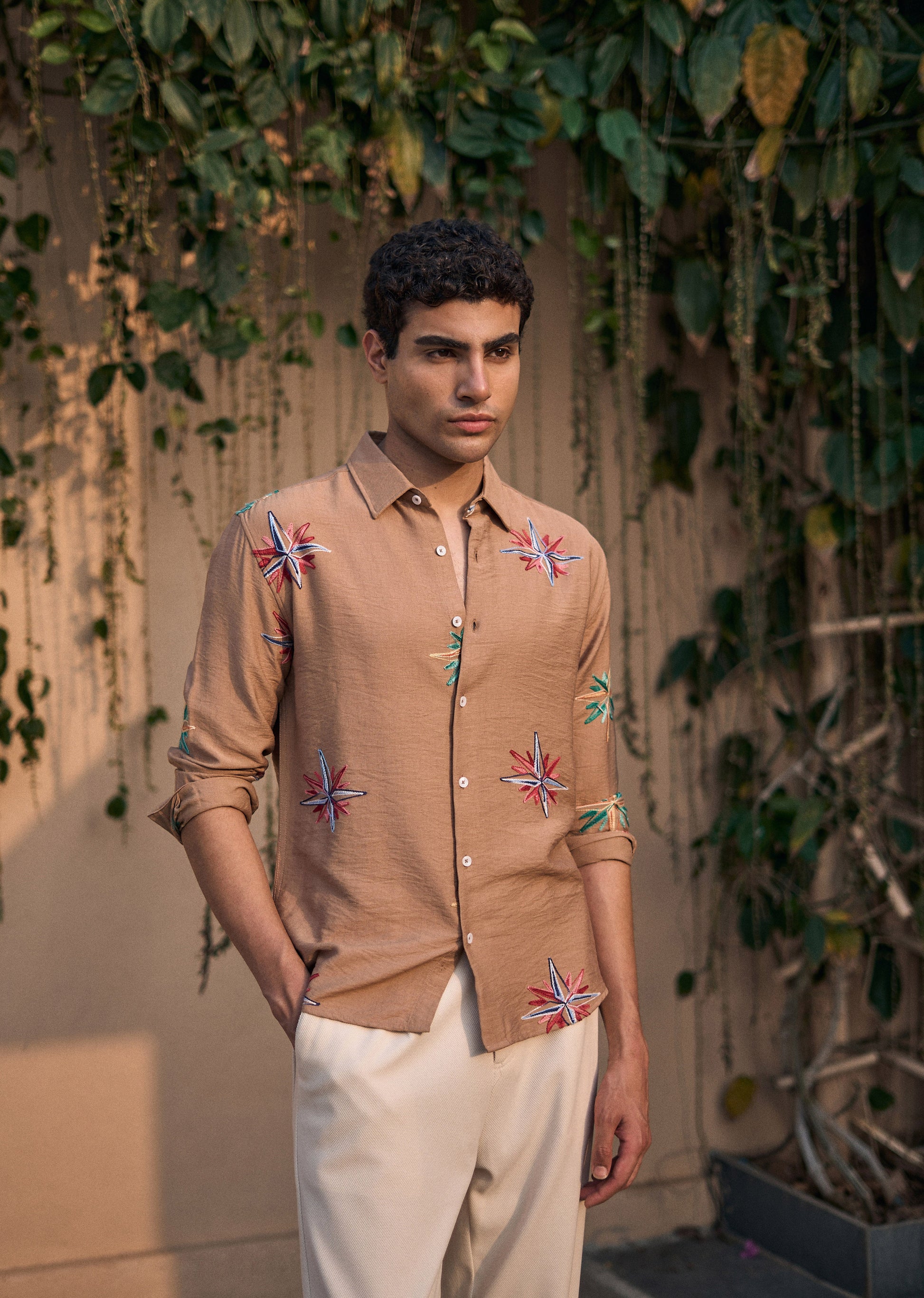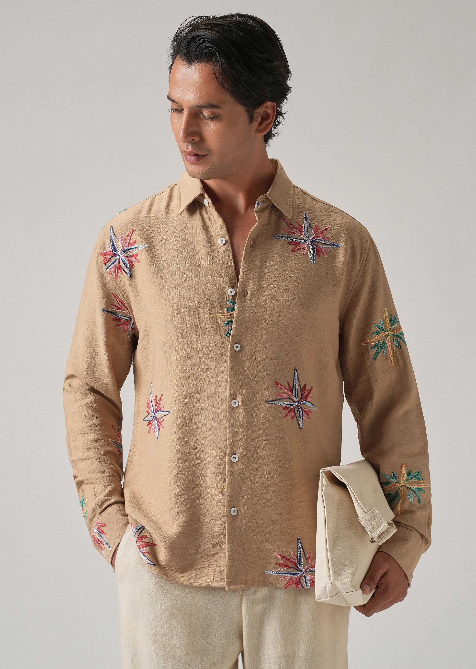 Tan Nautical Star Embroidery Shirt