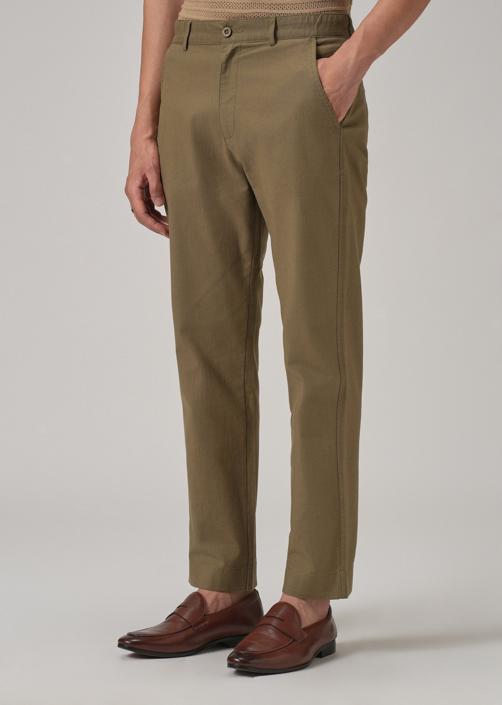 Relaxed, refined, and ready for wherever the day takes you. Designed for everyday comfort with a clean silhouette, these cotton trousers are a versatile wardrobe essential. The concealed zipper adds a seamless touch, while the elasticated waistband ensures ease without sacrificing structure.