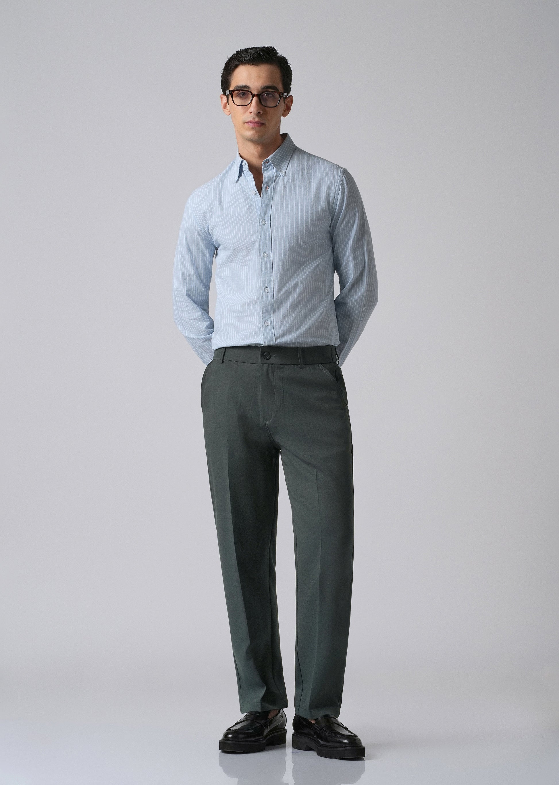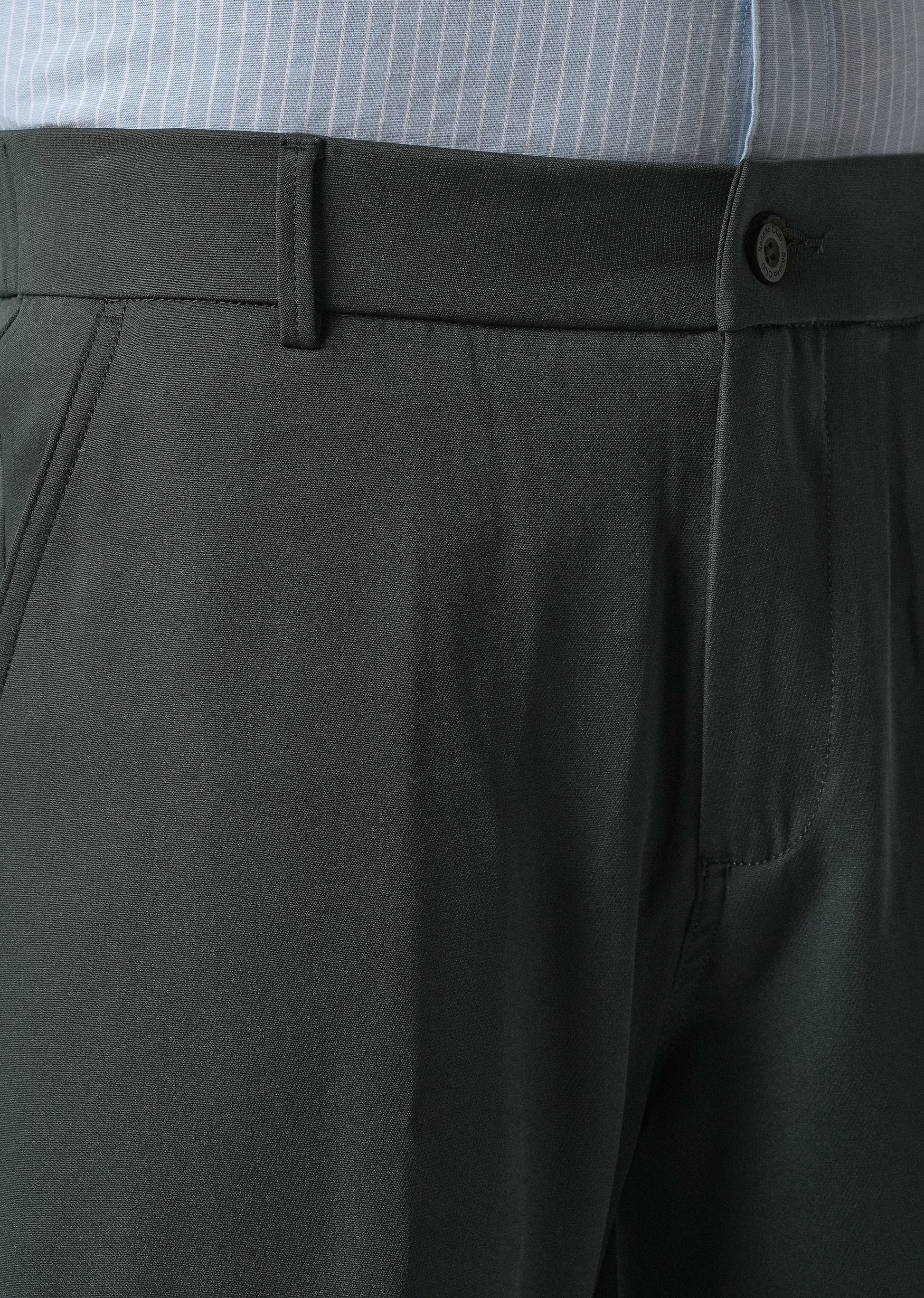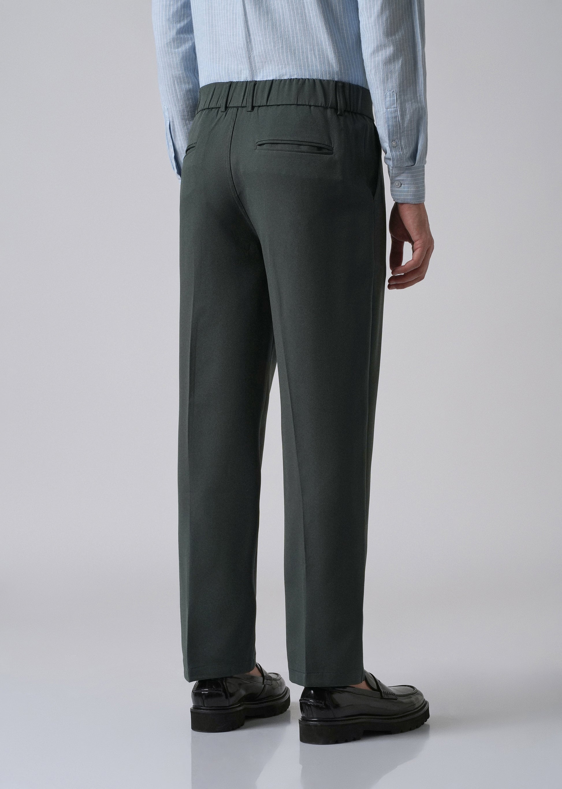 These trousers combine comfort and style with a semi-elasticated waistband and belt loops for a flexible yet polished fit. They feature a button and zipper closure, two side pockets, and two back welt pockets for everyday convenience. Made from a 96% polyester, 4% spandex blend, they offer gentle stretch and hold their shape—perfect for both casual and smart-casual wear.