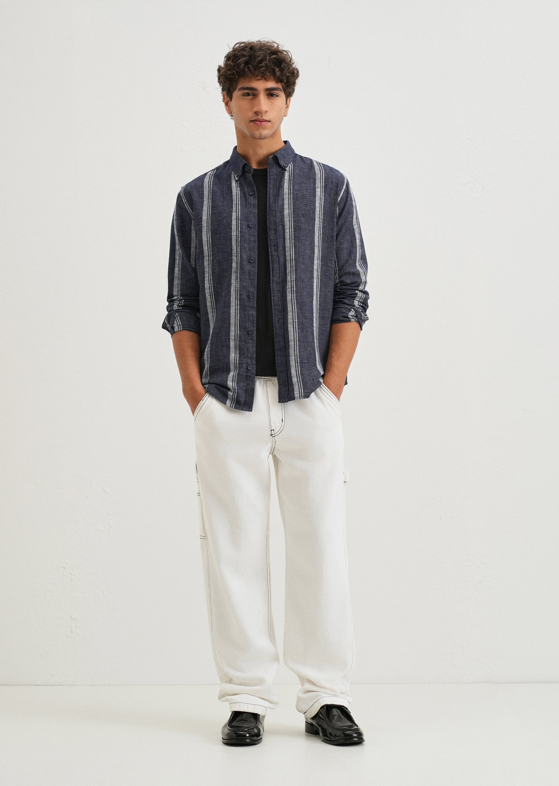 - Full sleeves, spread collar.