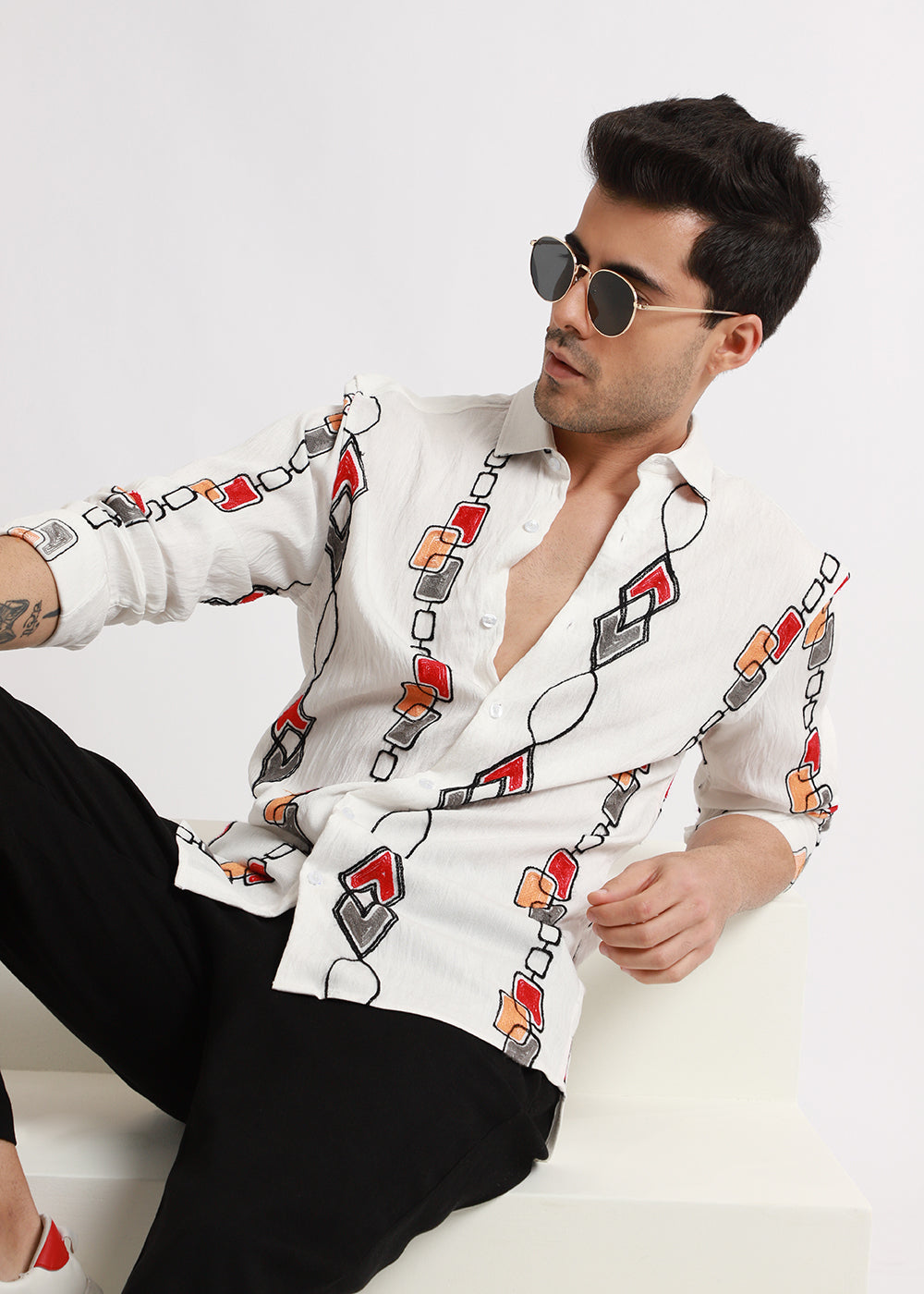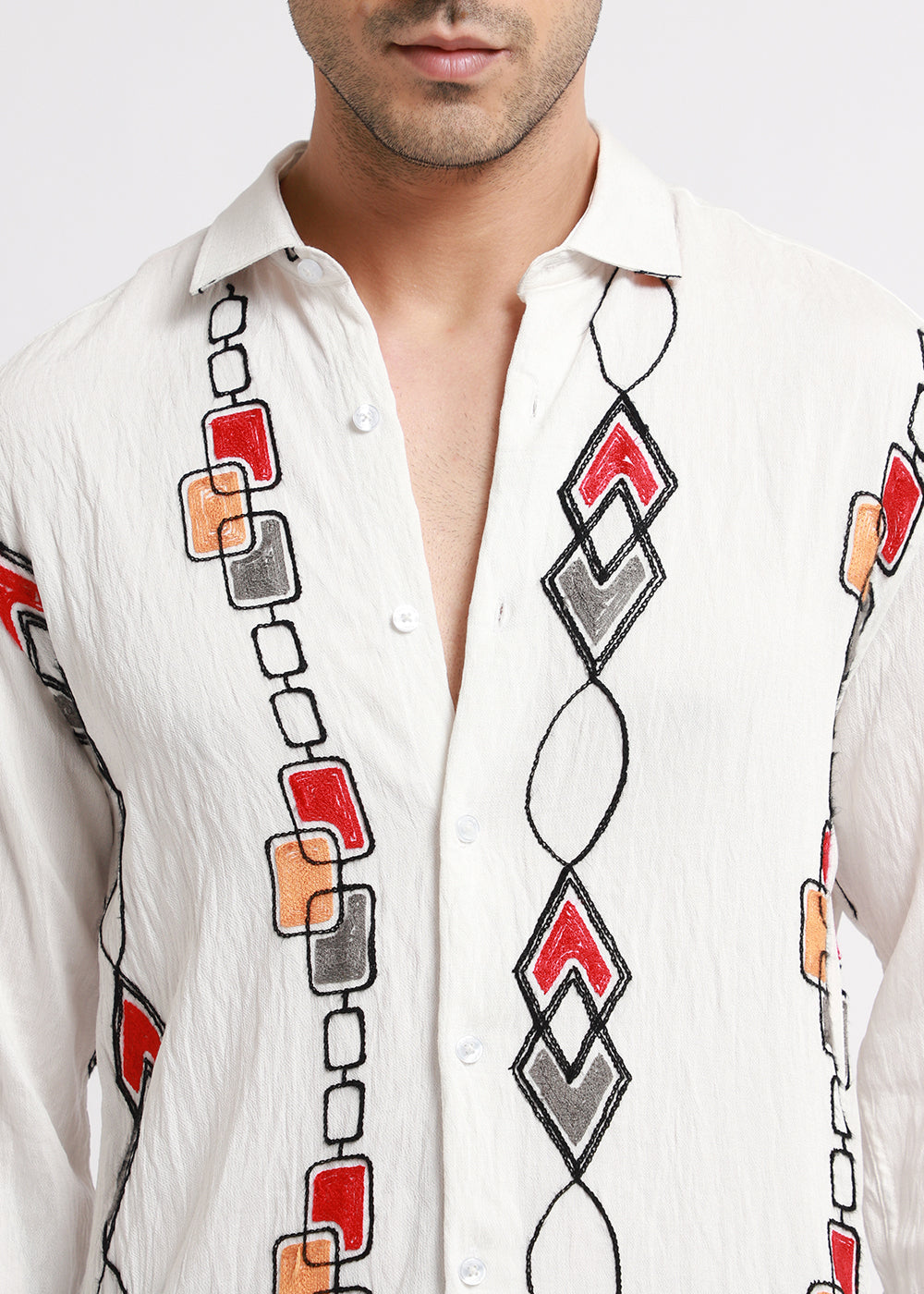Make an impression in this artistically embroidered shirt. Show off your personal style with the custom embroidered accents on this shirt. The soft rayon material keeps you relaxed, while the artistic details give your look a boost of self-expression. Perfect for free spirits who want to showcase their originality.