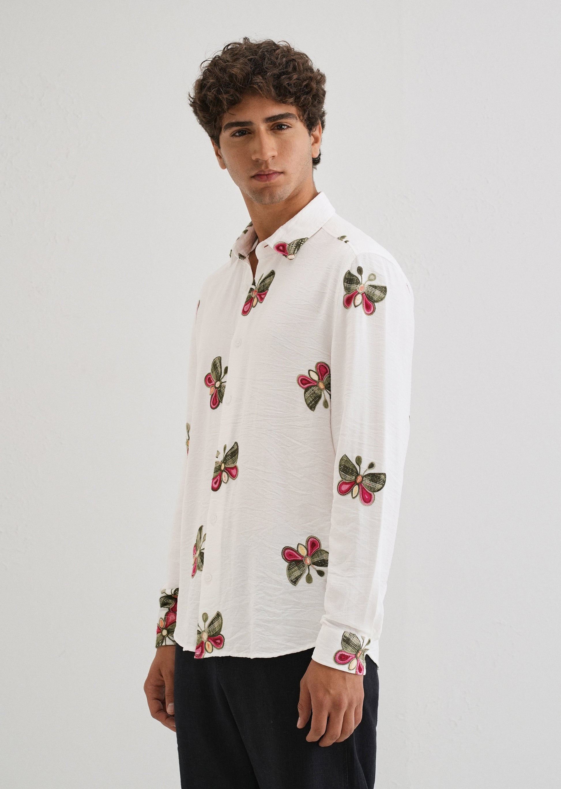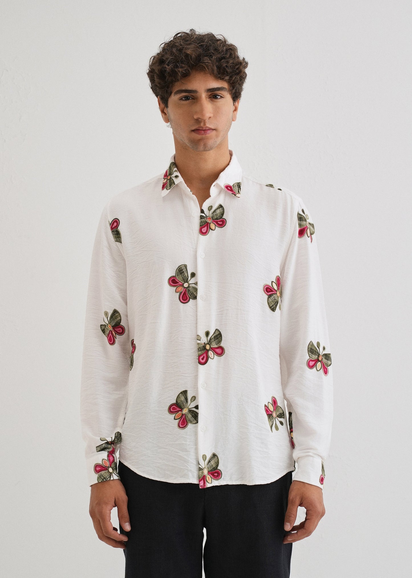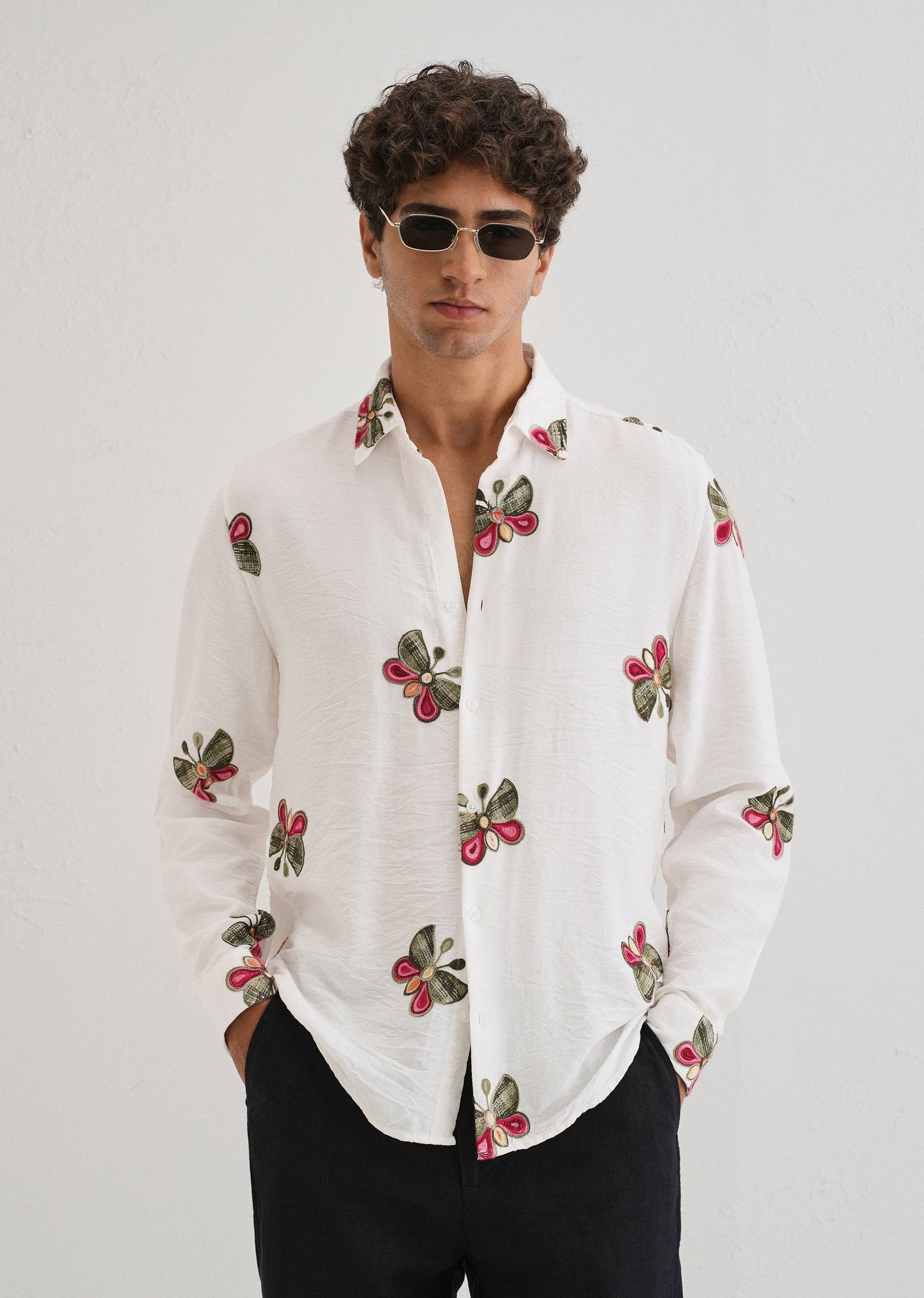 Make an impression in this artistically embroidered shirt. Show off your personal style with the custom embroidered accents on this shirt. The soft rayon material keeps you relaxed, while the artistic details give your look a boost of self-expression. Perfect for free spirits who want to showcase their originality.