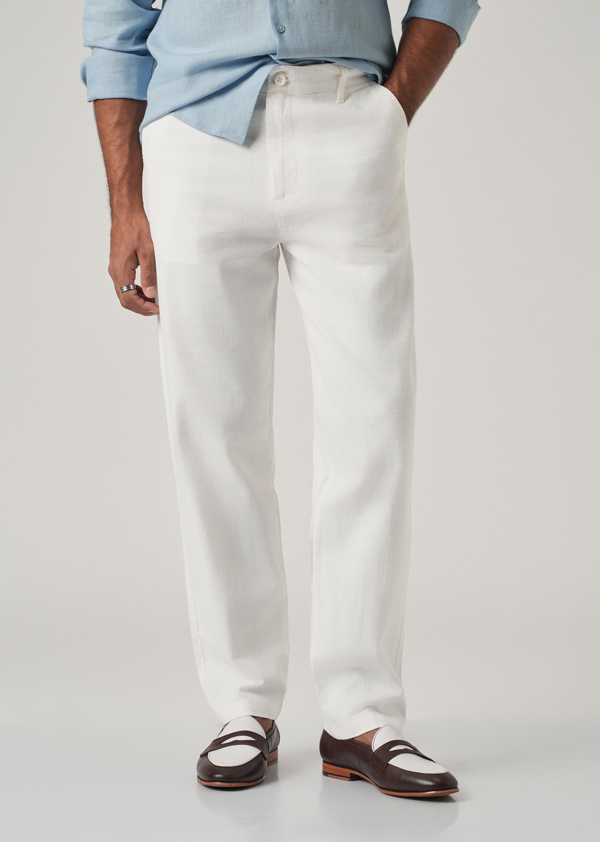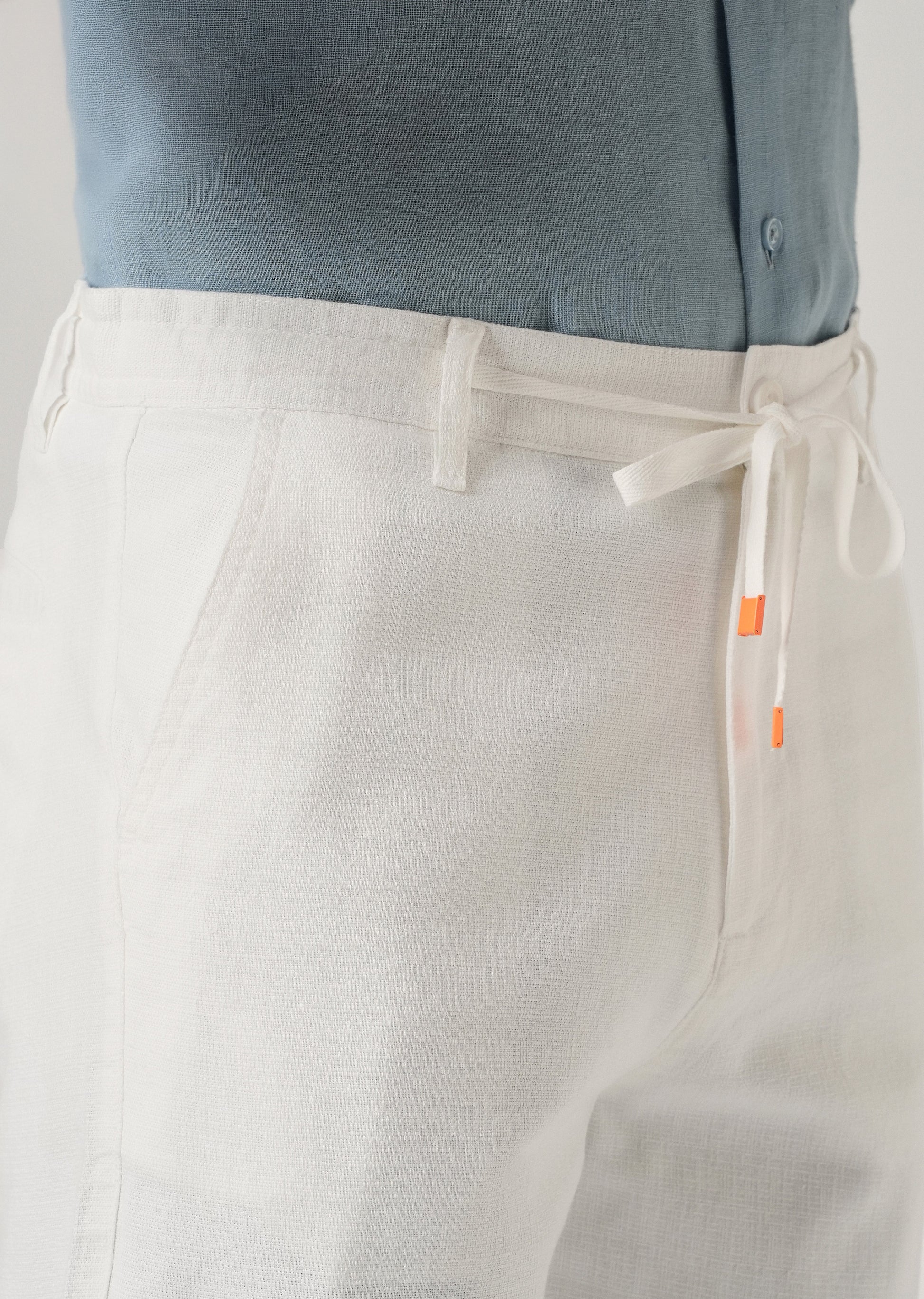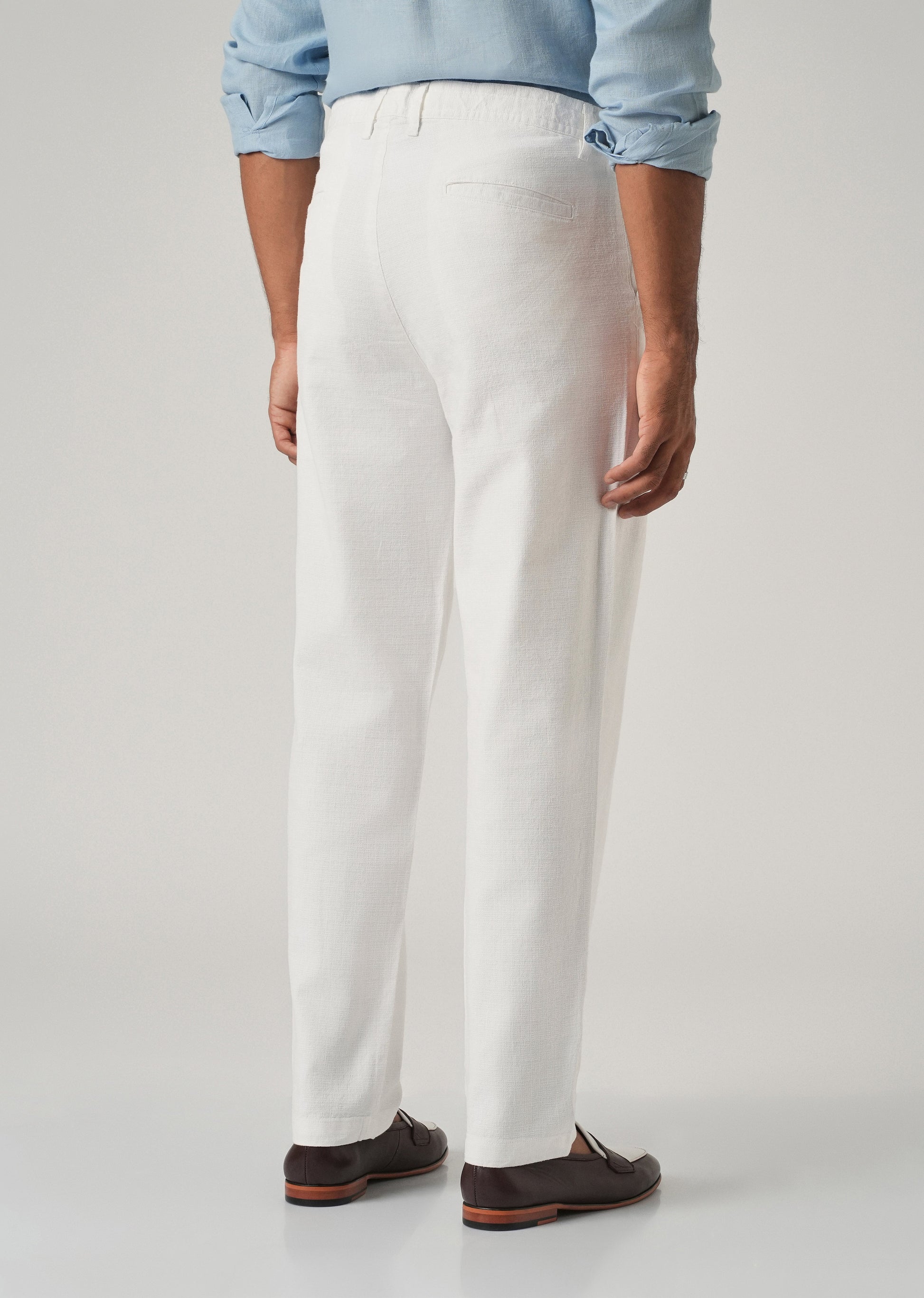 White Linen-Look Cotton Trousers