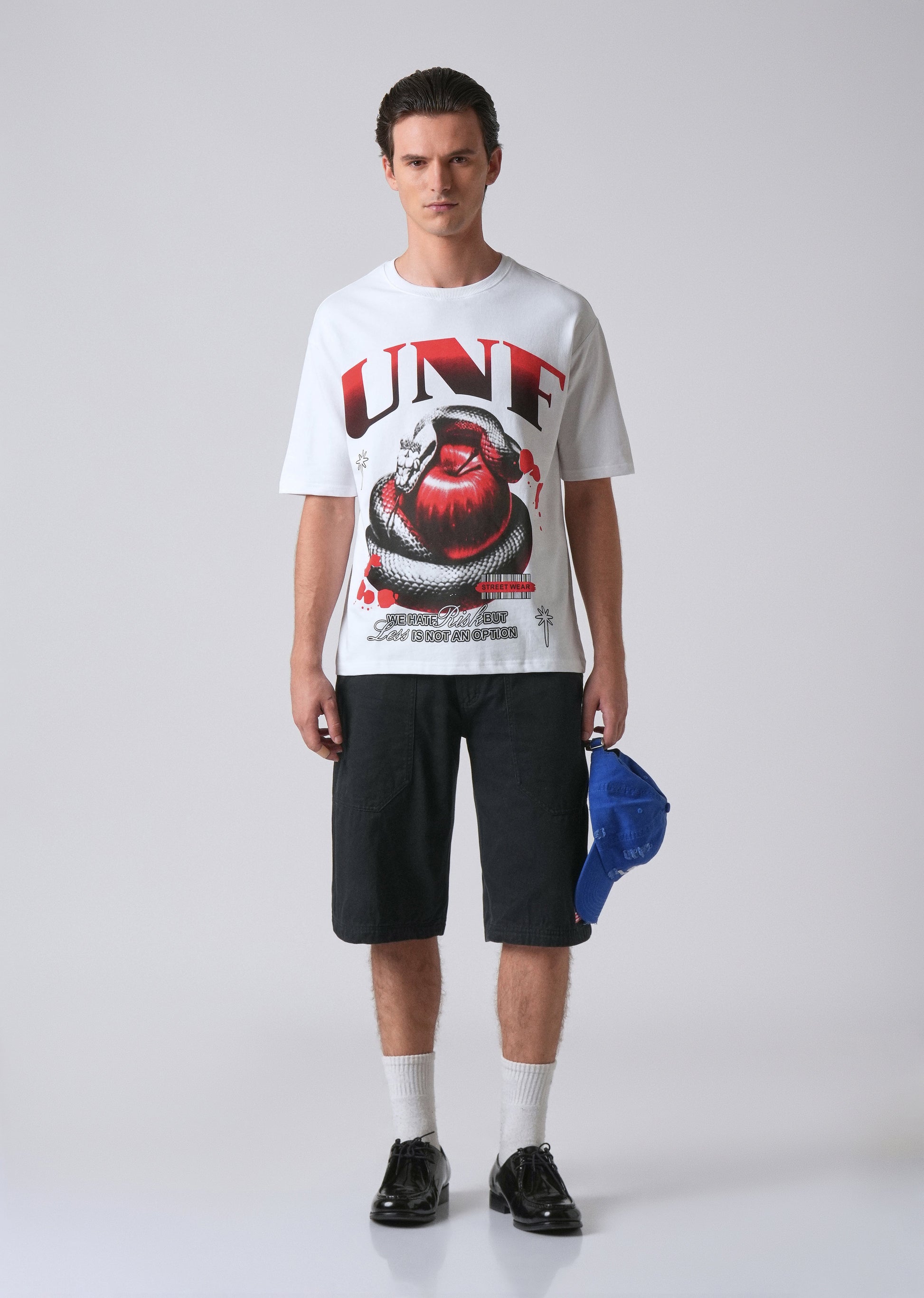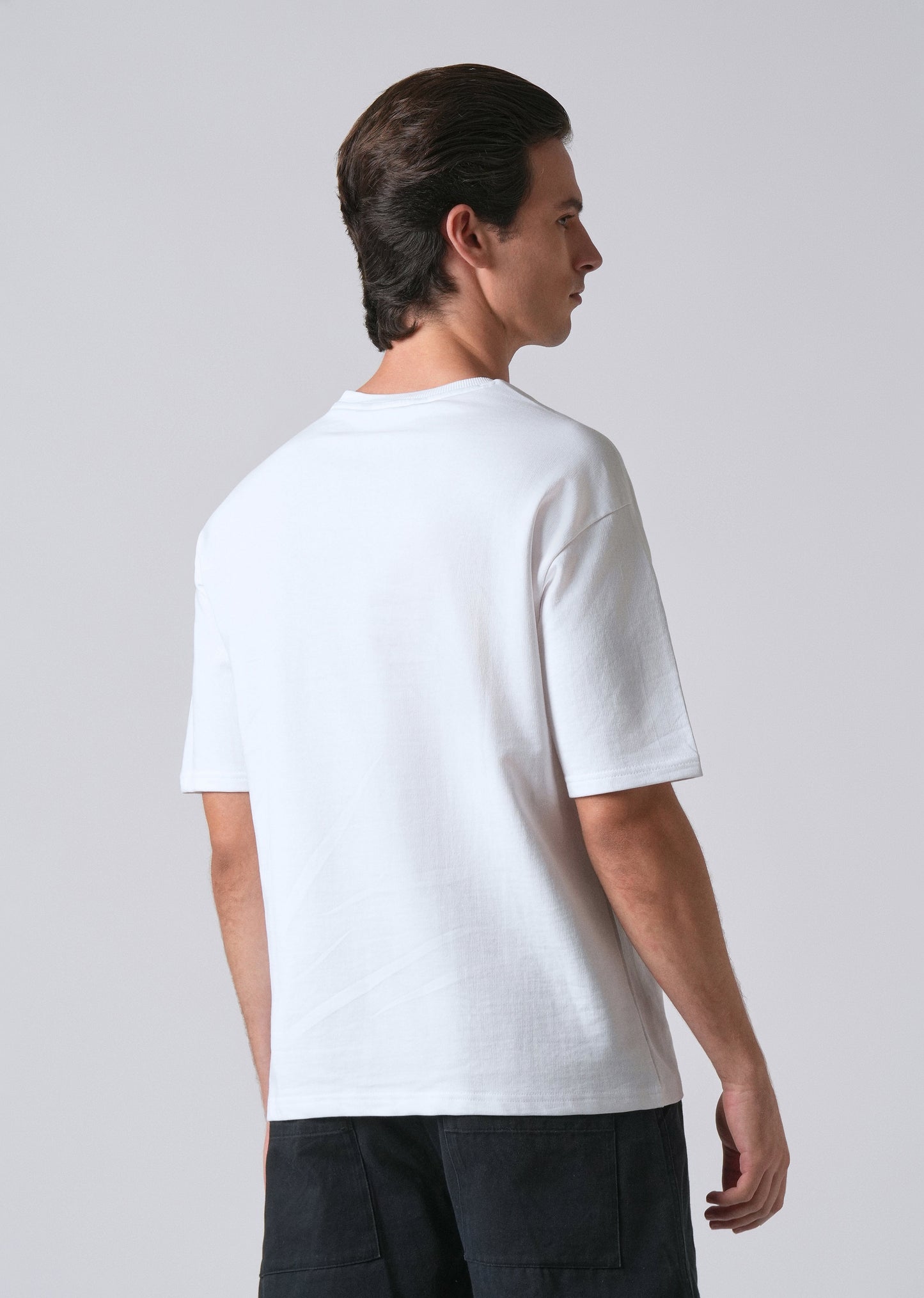 This Printed t-shirt is made for everyday comfort and laid-back style. It has a round neckline, drop shoulders, and a straight hem that give it a relaxed look. Made from soft cotton with a bit of stretch, it feels light and easy to move in. The relaxed fit makes it great for casual outfits, whether you're wearing it on its own or layering it.