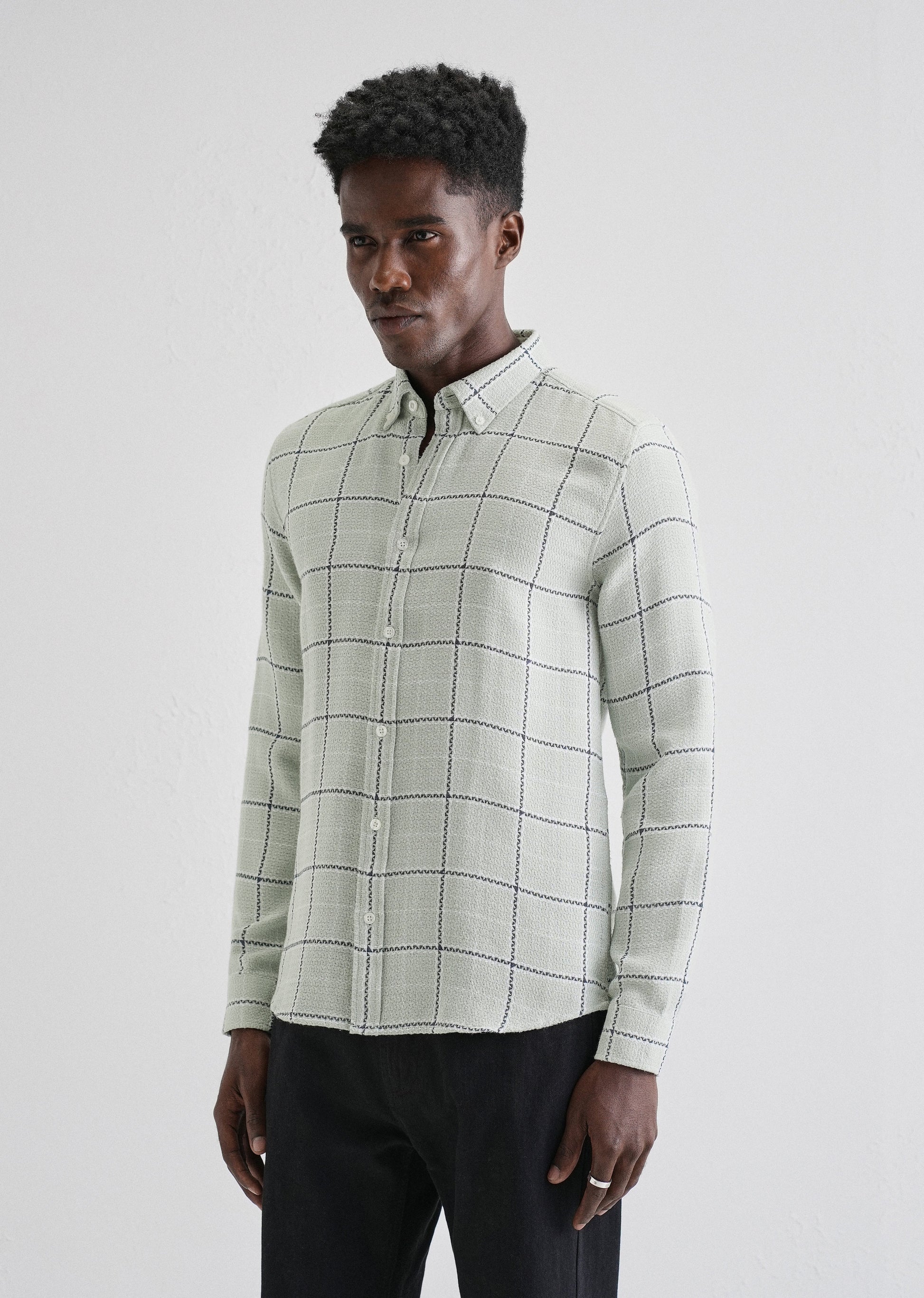 - Mirrored checks pattern in cotton jute fabric shirt.
