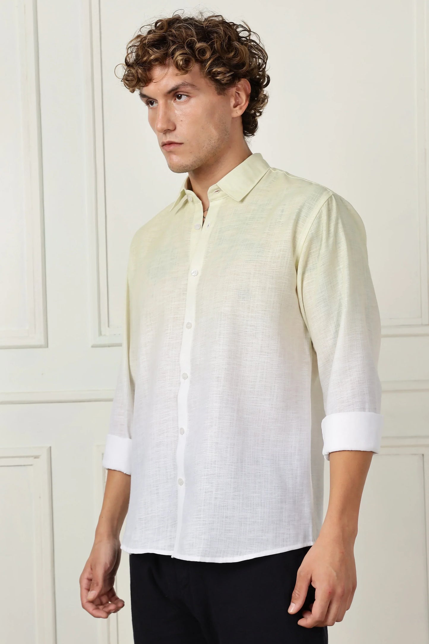 Yellow ombre full sleeve linen shirt